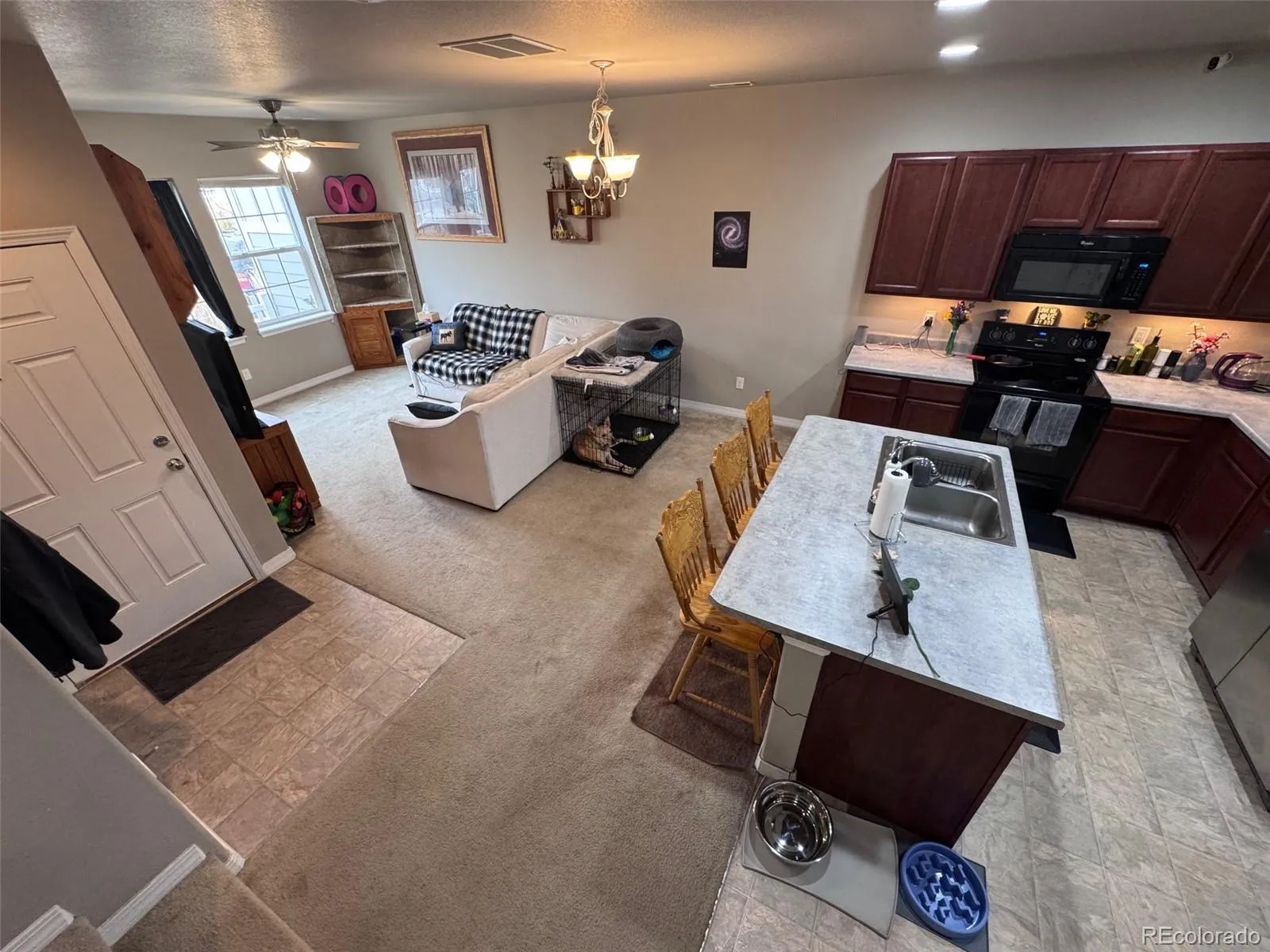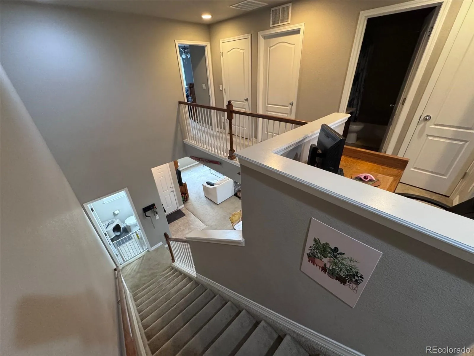 This Charming Townhome is ready for the perfect buyer!! Located in the Highly Sought-After Wolf Ranch Neighborhood, it is Close to Schools, Shopping, Trails, Parks, and offers Easy Access to the Woodmen and Powers Blvd corridors. The Entryway features a Spacious and Private Covered Courtyard Patio as well as a Landscaped fenced BBQ Patio area. Inside, the Open-Concept Floor Plan boasts High Ceilings, Abundant Natural Light, and Plenty of Windows. The Large Kitchen includes a Center Island with Eating Bar/Counter, a Double Sink, Appliances, and Very Ample Recessed and Under-Cabinet Lighting. The Primary Bedroom offers a Generous Walk-in Closet as well as an Ensuite Bathroom with a Private Toilet, Double Vanity, and a Large Enclosed Glass Shower. A Convenient Upper Level Laundry Room comes with Cabinets, Shelving, and Clothes-hanging rod. The Bright Second Full Bathroom sits adjacent to the Second Bedroom and Loft/Study Areas. The Large Insulated Garage has Extra Shelving for Tons of Storage. This Property Offers some of The Best Parking in the area, including a Large Rear Outdoor Concrete Driveway for Extra Cars or Guests as well as Community Open Parking in the Front. Built in 2016, this home Stands Out with its Newer Construction and More Open Floorplan Layout compared to others nearby. DON’T MISS OUT ON THIS GEM — schedule your appointment today!