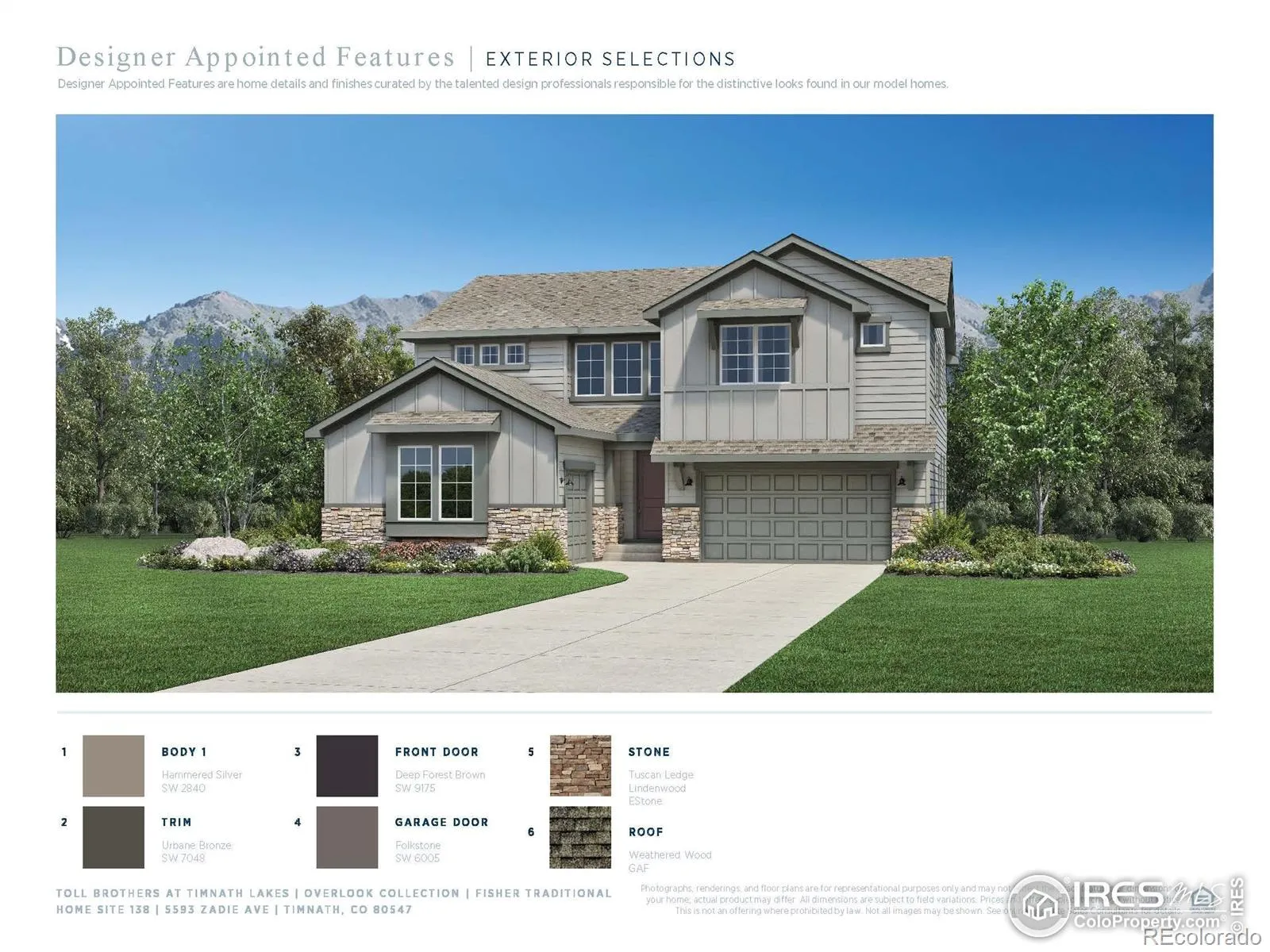 Brand New Toll Brothers Home – Fisher Traditional – Ready February 2026! The popular Fisher floorplan has a grand two-story foyer with a gorgeous staircase. The main level is open concept, but still offers space for private dining and entertaining, including a convenient butler pantry. The 19′ tall great room is the focal point of the home, offering a plethora of natural light with large windows overlooking the rear covered patio. The second level showcases a generous primary suite connecting to a resort-style bath with a luxury shower and a free-standing tub, plus a 14′ x 8′ walk-in closet. The unfinished basement with 9′ ceilings, rough-in plumbing, and two daylight windows is perfect for storage or future finishing. The home also offers plenty of storage for cars and toys with a 4-car split garage. Front landscaping is included. Located just blocks from the lake, a 7-mile trail system, future clubhouse and outdoor pool, and walkable to downtown Timnath shops, brewery, post office and Timnath Elementary School. Timnath Lakes sits within Larimer County and the Poudre School district, just north of the Harmony Rd. corridor, 15 minutes southeast of Downtown Fort Collins, and less than two miles east of I-25. Come see it today before it’s gone!