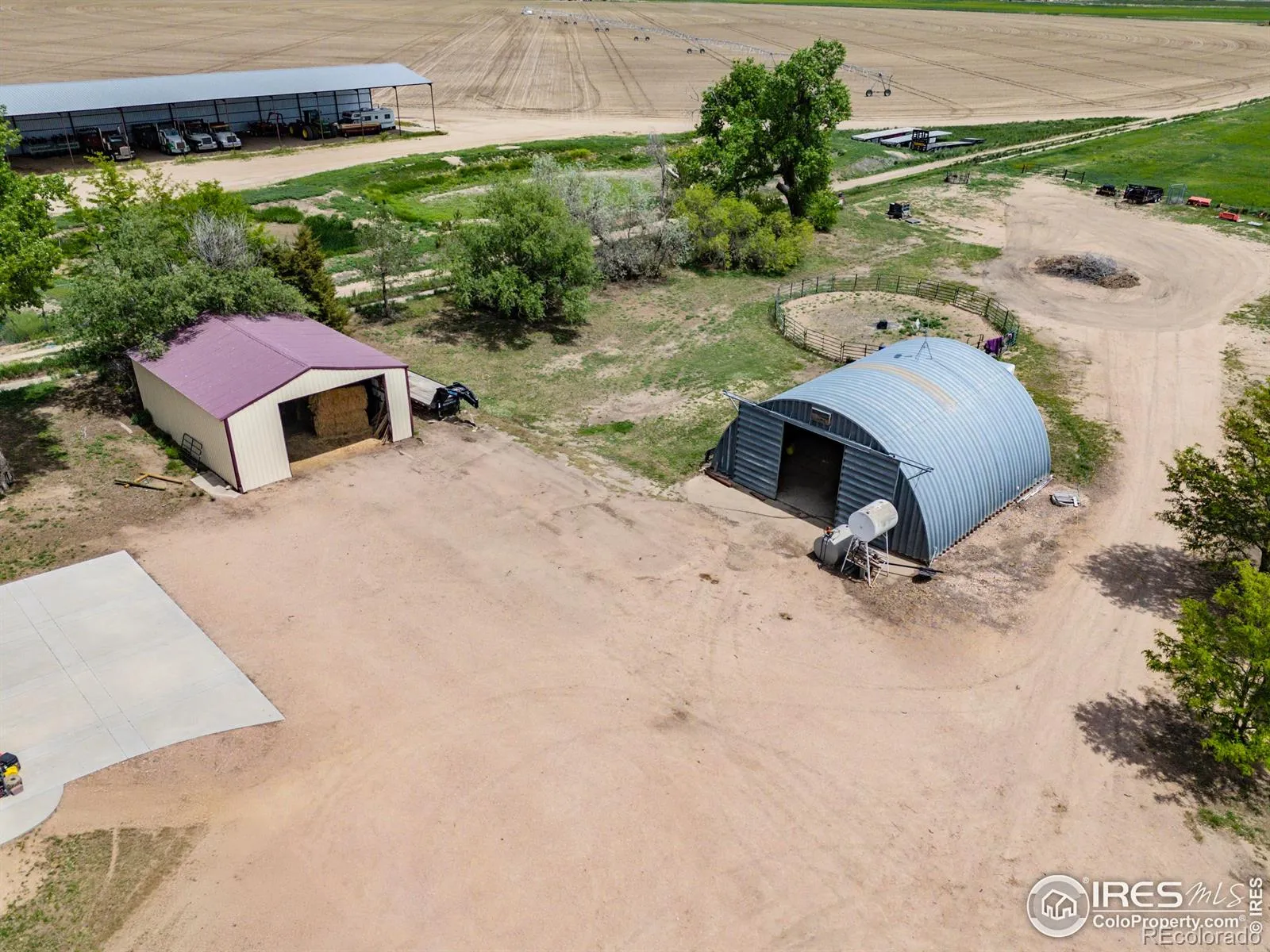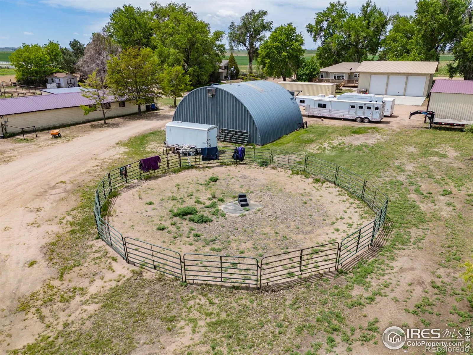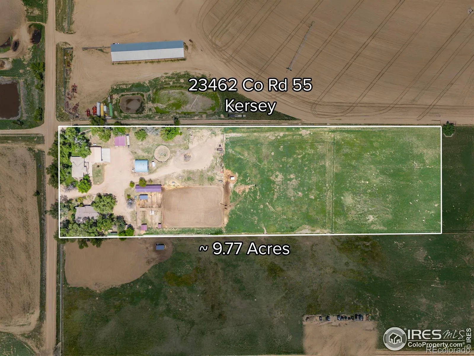 Something for the entire family to enjoy! Incredible 9.77-acre horse property with lush mature landscaping just minutes from Kersey, located in the highly desirable Platte Valley School District. Fully fenced and ideal for multi-generational living or income potential, this unique property offers two move-in-ready homes. The Larger home is 2672 square feet, a split level with 4 bedroom, 3 1/2 Baths, house has been freshly painted and new carpet has been installed. The secondary home is a 2,048 sq ft ranch-style with 3 beds, 3 baths, updated chefs kitchen with stainless steel appliances, and a private hot tub. Equestrian amenities include a 6-acre pasture, outdoor riding arena, horse runs with shelters and automatic waterers, and a converted dairy barn that serves as a tack room and additional shelter. The dedicated hay barn provides ample covered storage. The property includes Milton Reservoir irrigation rights and Bailey Ditch carrying rights, with potential to irrigate the pasture with some improvements. Additional features: a 1200 sqft oversized 3-bay garage, 1520 sqft Quonset hut shop, and multiple outbuildings-ideal for horses, livestock, or hobby farming. Just a short drive to Kersey, Greeley, Denver and DIA, this is true Colorado country living with space, comfort, and versatility.