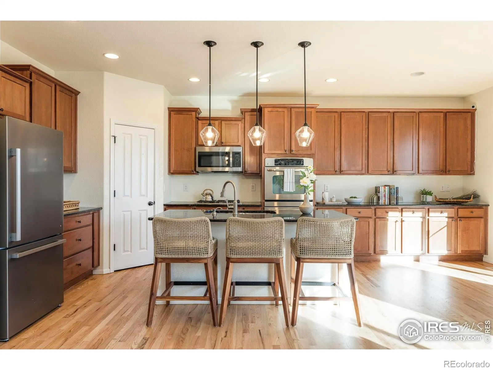 Featuring over 100K in thoughtful renovations and a highly functional layout, this distinguished residence in The Villages at Riverdale offers expansive living framed by mountain-views and refined comfort. A west-facing front porch invites entry into the open-concept main level adorned with red oak flooring and nine-foot ceilings. The living area flows effortlessly from a first-floor dedicated office with French doors to a sun-drenched dining room and into an open concept living room, breakfast nook and kitchen, where new fixtures and a new refrigerator elevate everyday living. Four upper-level bedrooms include a dual-entry bath, a full en-suite secondary bedroom and a serene primary suite with a five-piece bath and a generously oversized walk-in closet. Recently finished in 2020, the walkout basement extends the living space with a guest bedroom, 3/4 bath, rec room with a wet bar and room for a pool table, ample storage and direct access to the fully fenced yard backing to a greenbelt and trails. New carpeting throughout, a radon mitigation system, French drain, two sump pumps, four-year-old roof, an efficiency furnace, data wiring and a rare attached three-car garage complete this move-in ready home. Conveniently located down the street from Brantner Elementary School, and walking distance to Roger Quist Middle School and Riverdale Ridge High School. Enjoy convenient access to parks, trails, groceries, shopping, restaurants, golf course, and E470 all within a few miles. 13420 Spruce Street is centrally located just 20 minutes to DIA, 25 minutes to Denver, and 30 minutes to Boulder. Turnkey with a low monthly HOA and no Metro District tax.