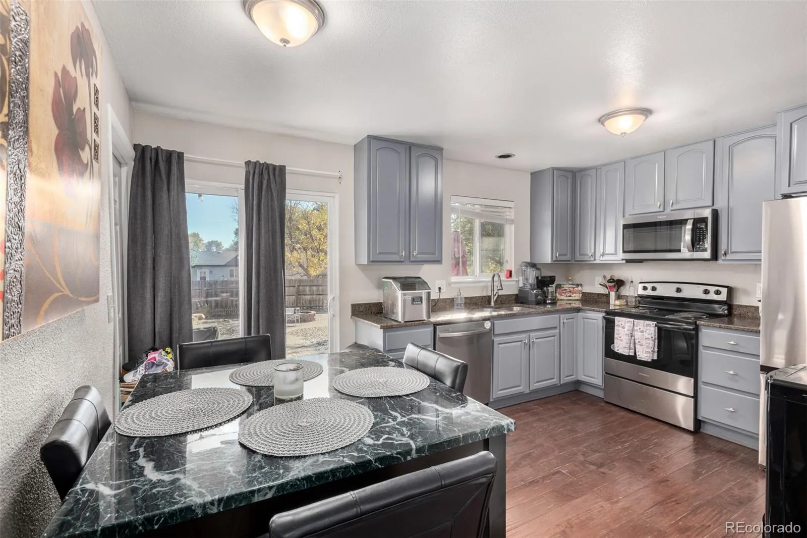 Start creating lasting memories in this beautifully designed 5-bedroom haven where comfort meets charm, without the burden of HOA fees! From the moment you walk in, the inviting wood floors and cozy living room create a warm, welcoming vibe perfect for relaxing or entertaining. The dining area sets the scene for delightful gatherings and gourmet meals, while the kitchen inspires your inner chef with its stainless steel appliances, gleaming granite counters, and rich wood cabinetry. Retreat to the main bedroom, featuring plush carpet flooring, a mirrored door closet, and a private ensuite boasting a shower-and-tub combo with tile finishes, your own sanctuary after a long day. Finished basement opens up endless possibilities! Enjoy a spacious family room and dining area perfect for movie nights or casual get-togethers. The second kitchen equipped with quartz counters, sleek white cabinets, stainless steel appliances, and a convenient pantry which adds both function and flexibility. Two additional bedrooms and a full bath provide ample space for guests, extended family, or even a home office setup. Check outside and unwind in the expansive backyard oasis, complete with a patio for al fresco dining, a cozy firepit for starlit evenings, and a handy shed for all your storage needs. Whether you’re hosting weekend barbecues or simply savoring quiet moments under the night sky, this outdoor retreat is ready for it all. Perfectly situated just minutes from parks, shopping, freeways, and everyday conveniences, this property offers the ideal blend of privacy, practicality, and proximity. This home isn’t just a place to live, it’s where memories are made, laughter is shared, and new chapters begin. Wether your looking for a dream home or investment opportunity this home is perfect with its separate entrance. Don’t miss the chance to make it yours!