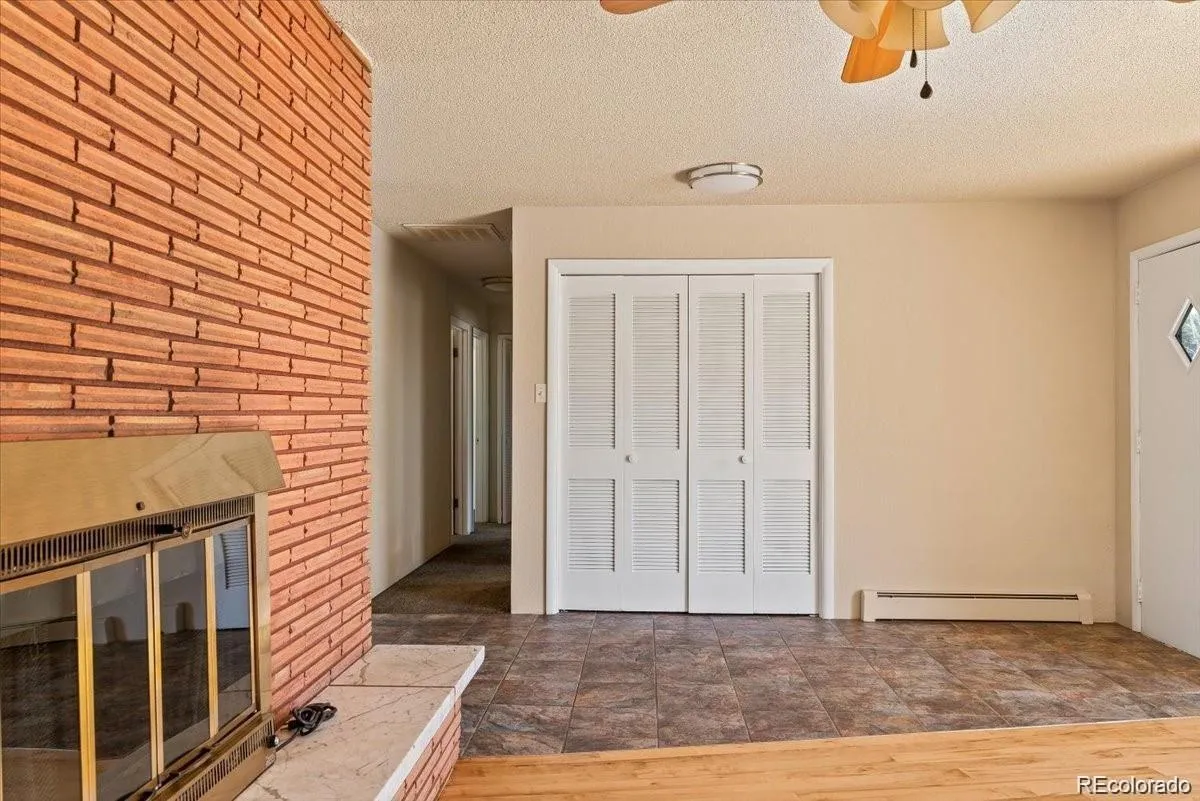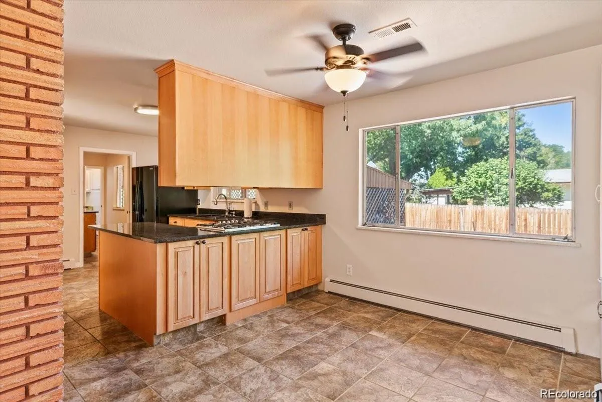 Corner lot with circle drive and Xeriscape front yard. 4 bedrooms with one non-conforming in the basement. 3 baths with two on the main level and one in the basement. Home has been gone through and made sure everything is safe and ready to move in! NEW Roof and new vinyl windows, the Boiler has been serviced, the property has been inspected, and any major concerns have been repaired. The home has hardwood floors in the living room and Stone tile flooring from entry through the dining room and Kitchen. The family room in the basement has a stone wall with a fireplace and plenty of room for relaxation. The unfinished area is well-lit and great for adding more Bedrooms if needed or for a workout area, including a big Flex area for growth. Covered back patio with built in grill for entertaining and enjoying the water feature with small pond. The backyard is ready for Sod with another area for garden or dog run. Just 2-3 blocks from sunset elementary. Make this your home with your personal touch.
