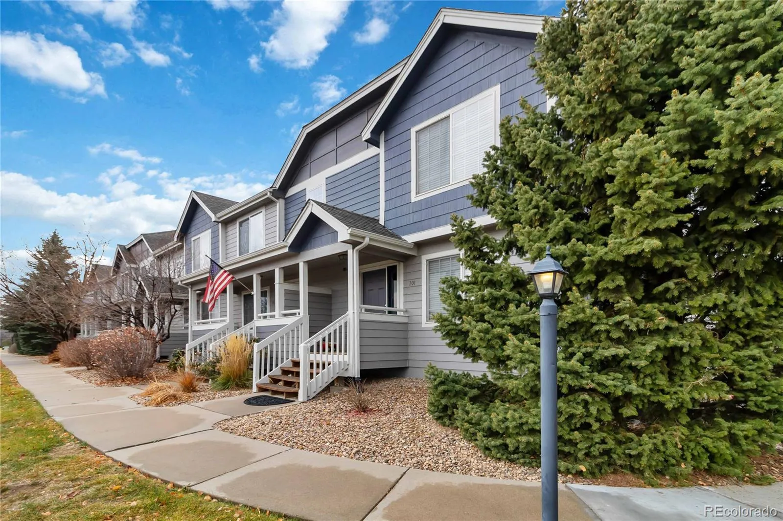 Welcome to this inviting Aurora townhome. You will appreciate the value in the the multiple updates to include all new windows, new AC, New Furnace, and a new water heater. The home features a spacious covered front porch. Inside you will find warm wood flooring throughout most of the main level, a bright living room with a cozy fireplace and an easy flow into the dining area. The kitchen opens seamlessly to the dining space, which offers access to a private balcony — perfect for fresh air or outdoor dining. Upstairs, both bedrooms include their own ensuite/private baths, providing comfort, convenience, and flexible living options.