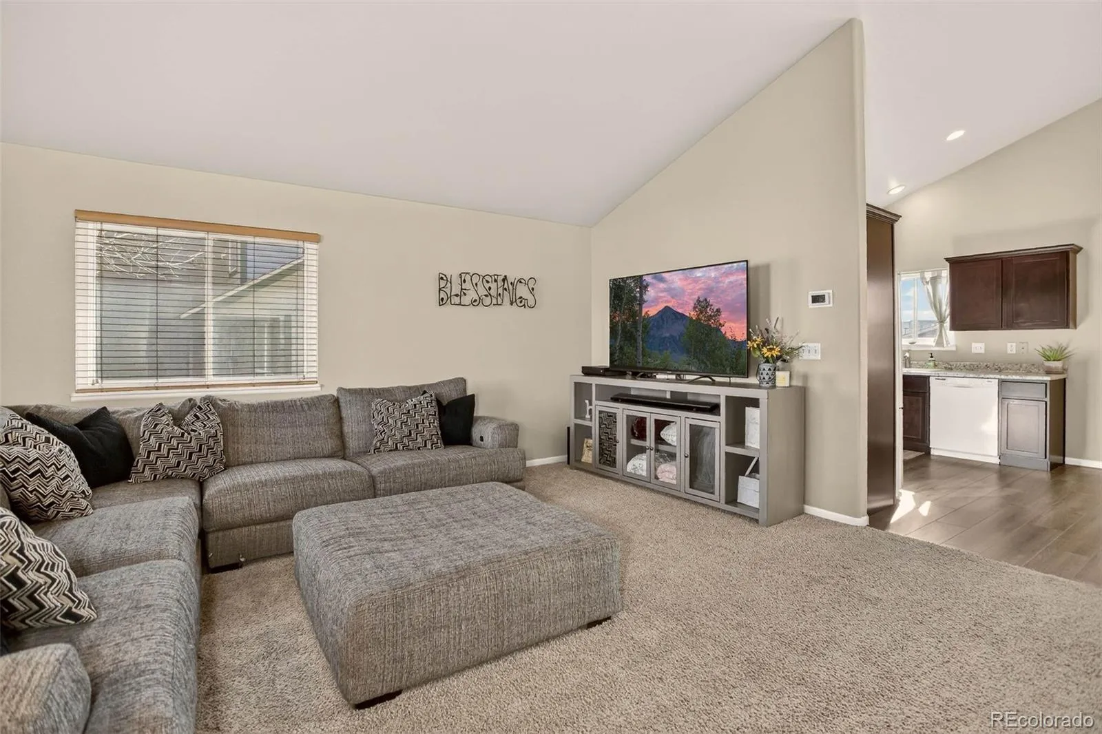 Feel free to take note of all the great features of this home — four bedrooms, two living spaces, open-concept floor plan, a large backyard, a 3-car garage, and more — but be sure to also envision yourself stepping out onto your covered front porch in the early morning, breathing in Colorado’s crisp mountain air, coffee in hand, the gentle hum of life echoing in the distance. Inside, sunlight pours through vaulted ceilings into a welcoming open-plan living area that invites good conversation, game nights, new family memories, and quiet Sunday afternoons.
