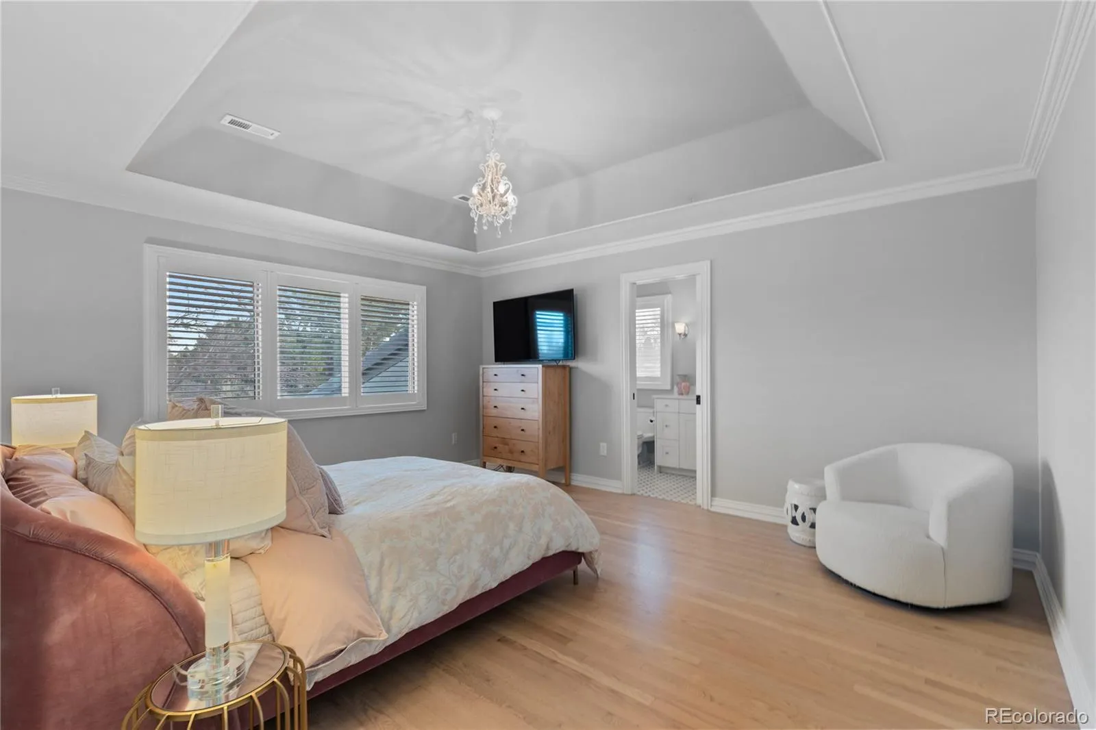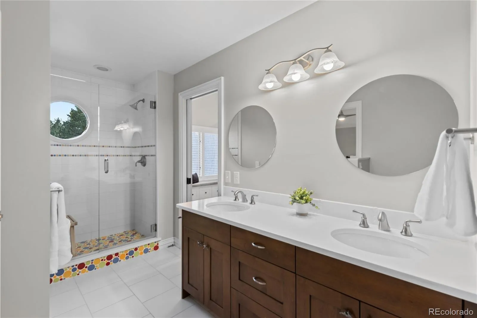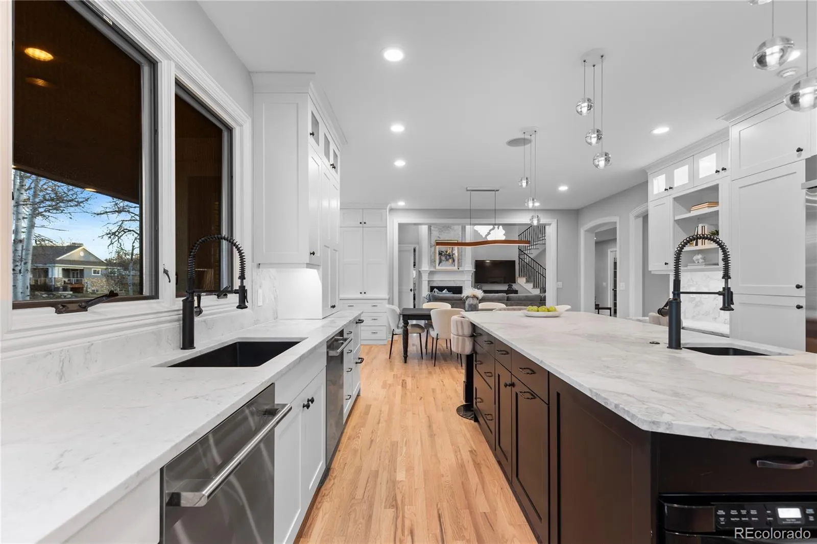 Upstairs, the serene primary suite is a true retreat with a fireplace, spa-like bath with freestanding tub and dual vanities, and a boutique-style walk-in closet. An additional ensuite bedroom and secondary bedrooms with walk-in closets complete the level. The lower level invites fun with an open recreation area, a cozy zone for movie nights, a convenient kitchenette, and a private guest suite. Walk out to the backyard where the setting lives like a resort, featuring a sparkling pool with waterfall features, broad patios for al fresco dining, and a level lawn for play. A three-car garage and easy guest parking complete the picture. Steps from the High Line Canal Trail and minutes from Cherry Creek and DTC, this exceptional home offers privacy, convenience, and resort style amenities in one of Greenwood Village’s most desirable neighborhoods.