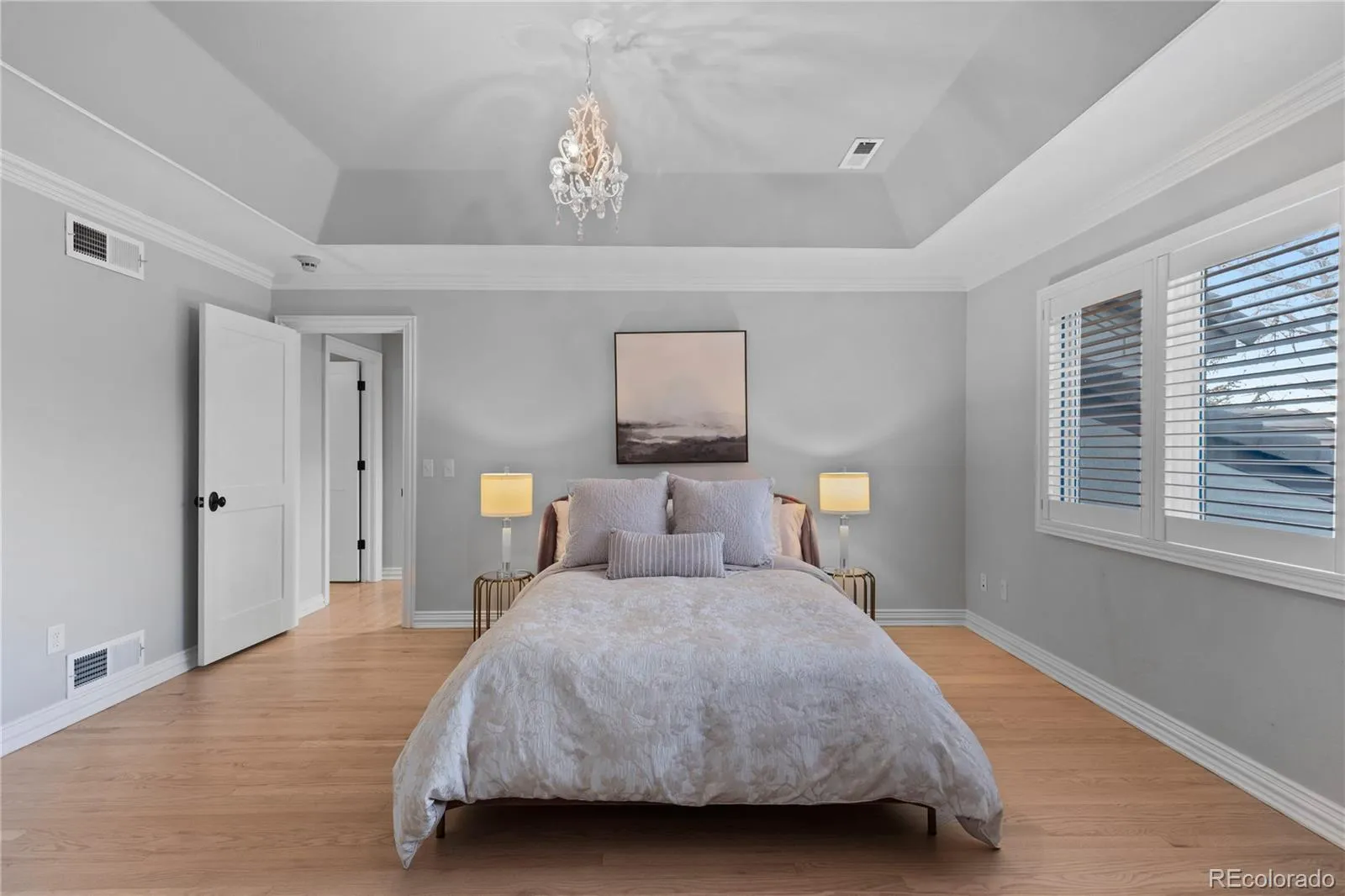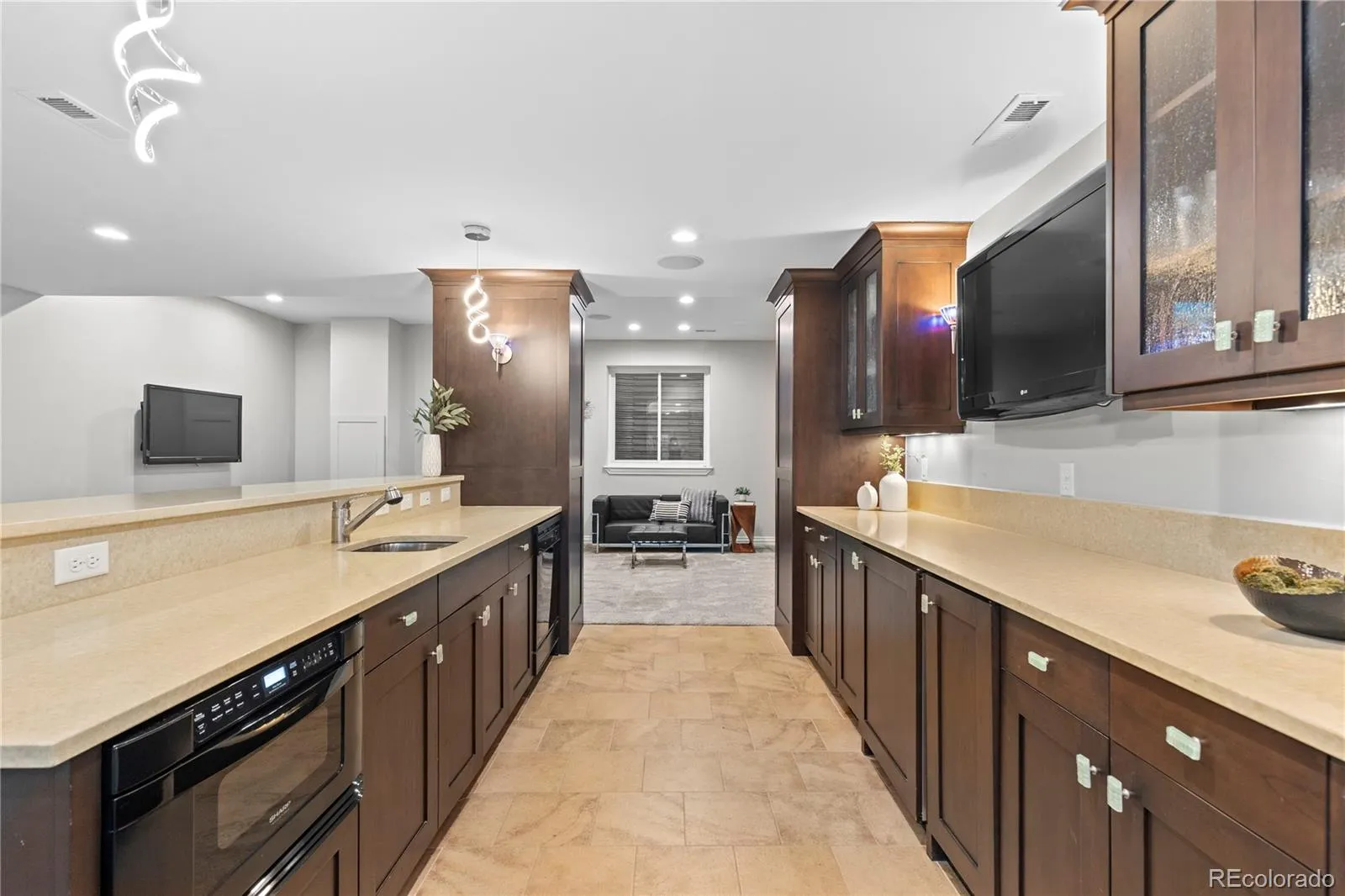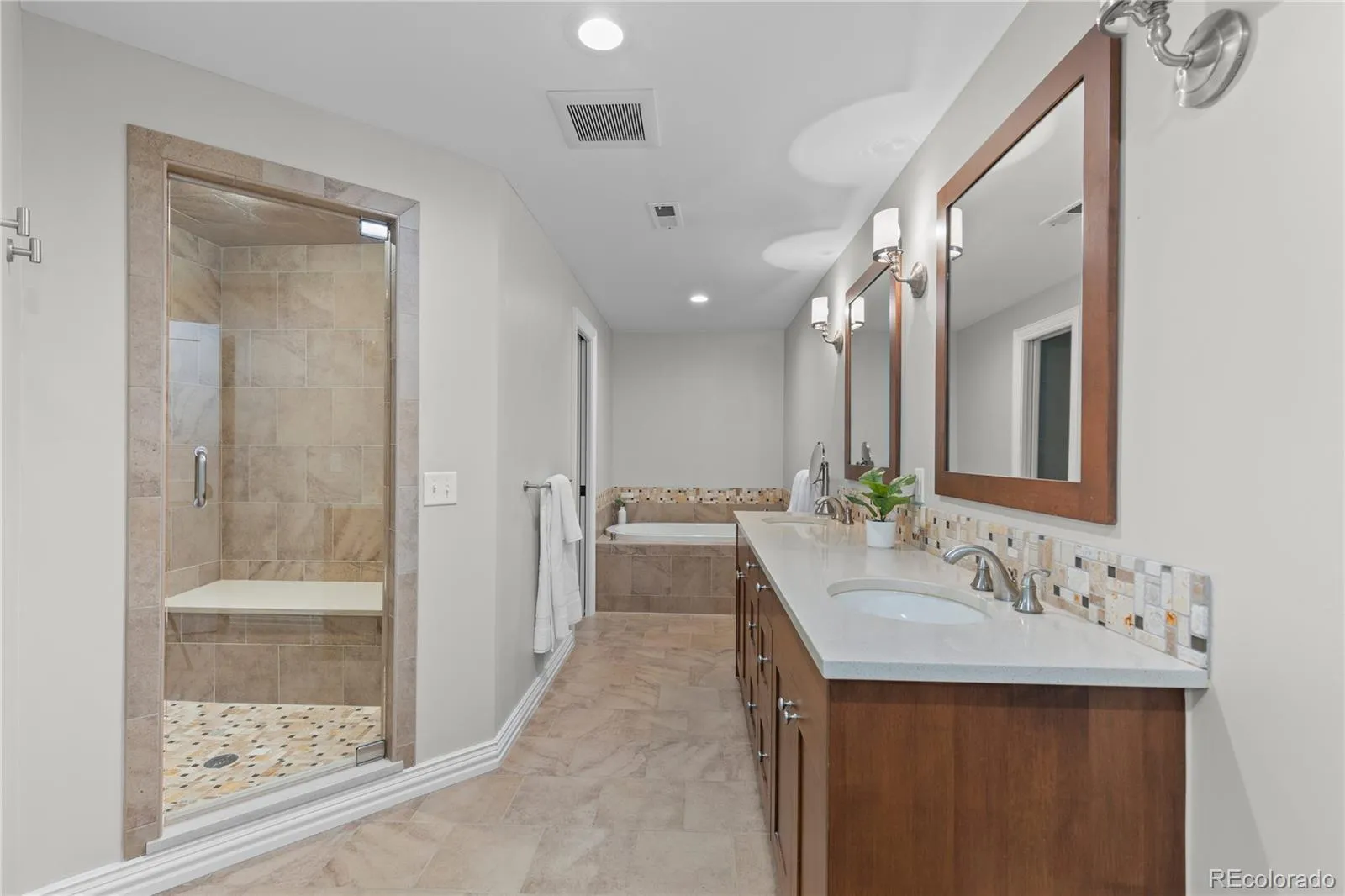Upstairs, the serene primary suite is a true retreat with a fireplace, spa-like bath with freestanding tub and dual vanities, and a boutique-style walk-in closet. An additional ensuite bedroom and secondary bedrooms with walk-in closets complete the level. The lower level invites fun with an open recreation area, a cozy zone for movie nights, a convenient kitchenette, and a private guest suite. Walk out to the backyard where the setting lives like a resort, featuring a sparkling pool with waterfall features, broad patios for al fresco dining, and a level lawn for play. A three-car garage and easy guest parking complete the picture. Steps from the High Line Canal Trail and minutes from Cherry Creek and DTC, this exceptional home offers privacy, convenience, and resort style amenities in one of Greenwood Village’s most desirable neighborhoods.