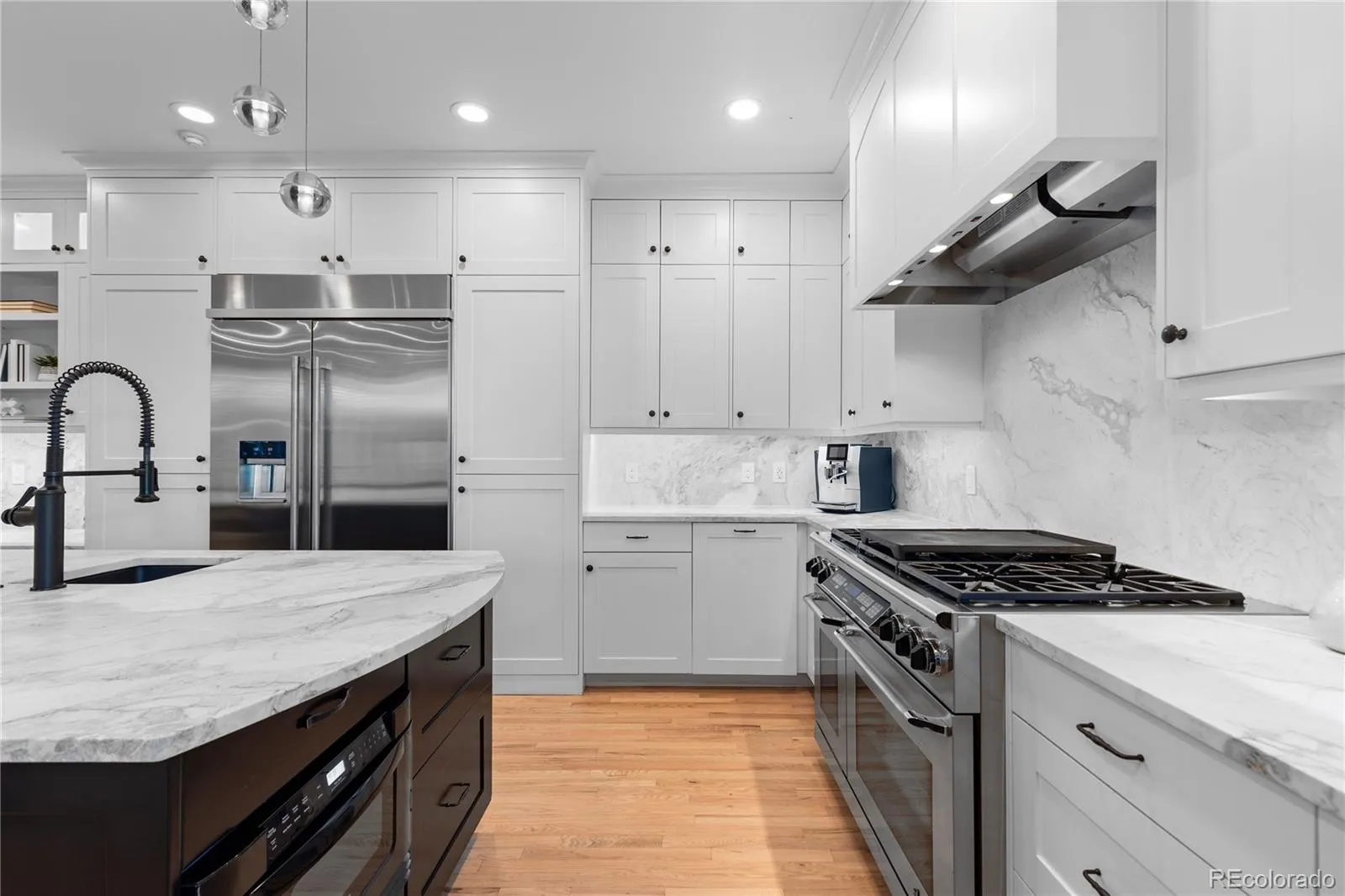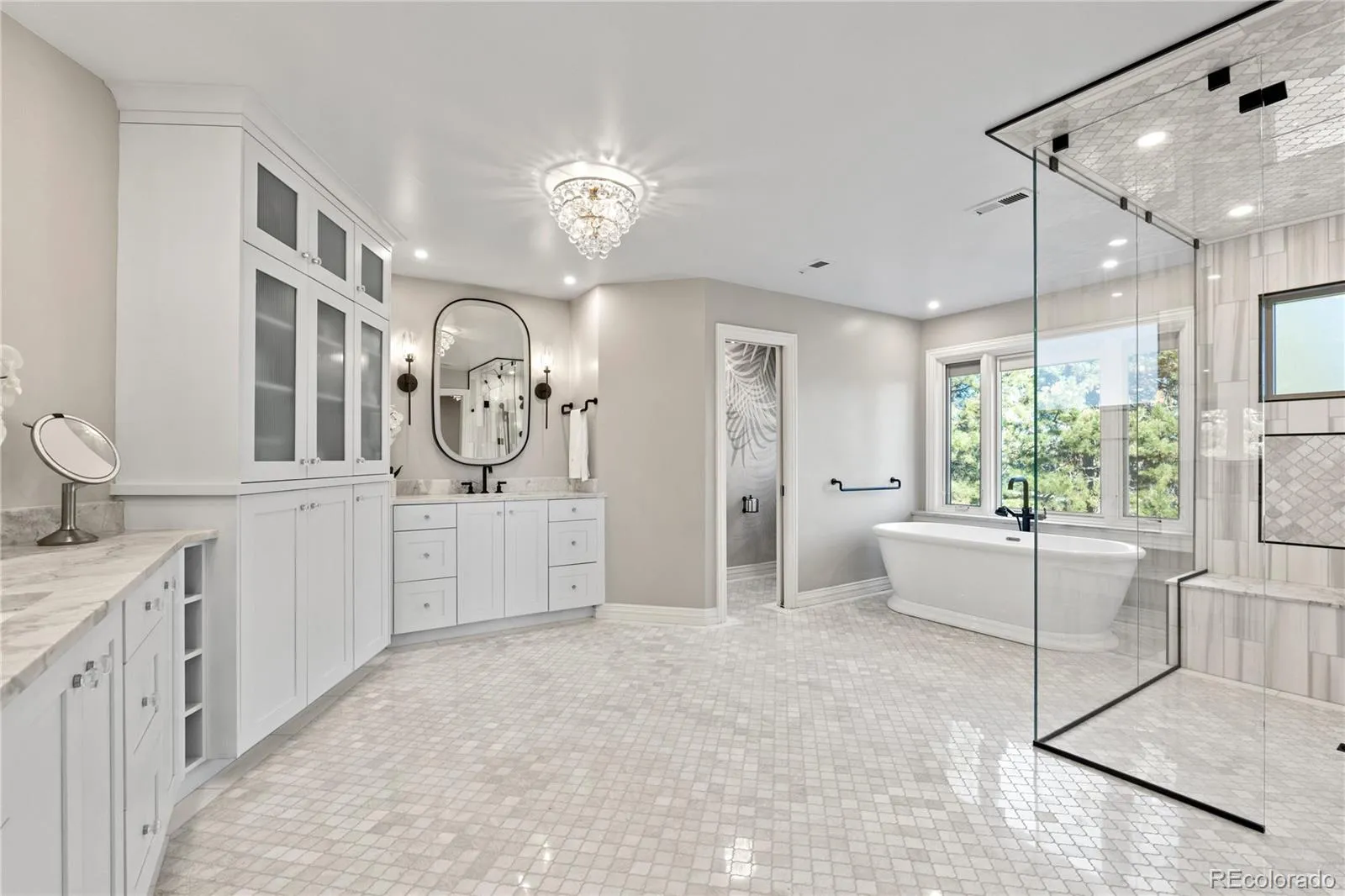 Upstairs, the serene primary suite is a true retreat with a fireplace, spa-like bath with freestanding tub and dual vanities, and a boutique-style walk-in closet. An additional ensuite bedroom and secondary bedrooms with walk-in closets complete the level. The lower level invites fun with an open recreation area, a cozy zone for movie nights, a convenient kitchenette, and a private guest suite. Walk out to the backyard where the setting lives like a resort, featuring a sparkling pool with waterfall features, broad patios for al fresco dining, and a level lawn for play. A three-car garage and easy guest parking complete the picture. Steps from the High Line Canal Trail and minutes from Cherry Creek and DTC, this exceptional home offers privacy, convenience, and resort style amenities in one of Greenwood Village’s most desirable neighborhoods.