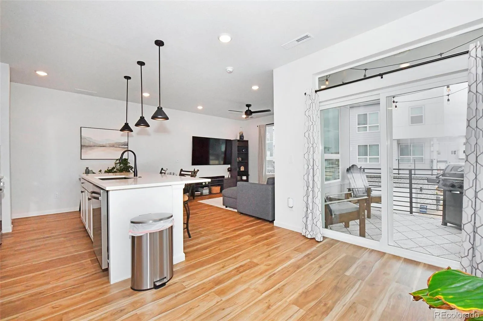 Welcome to this thoughtfully upgraded and exceptionally maintained home that combines comfort, style, and added practical value throughout. This 2-bedroom, 3-bathroom property stands out with a series of well-planned improvements designed to enhance both daily living & long-term durability. The home features a finished garage with expoxy finish, and offering a clean, insulated, and functional space ideal for storage, hobbies, or year-round vehicle protection. A whole-house humidifier, has been installed to improve air quality and maintain consistent comfort throughout all seasons. Additional interior enhancements include blinds and curtains and modern ceiling fans , bringing improved light control, airflow, and energy efficiency to multiple rooms. The kitchen and living areas feature stylish upgrades such as a living room, backsplash accent, and refined iron railing, adding visual interest and character to the home’s main level. A custom barn door leading into the primary bathroom provides both functionality and a contemporary design touch, enhancing privacy while complementing the home’s modern aesthetic. This property also includes a washer, dryer, and refrigerator package, offering move-in convenience and reducing the need for immediate appliance purchases. Outdoor living is equally impressive, with a durable concrete deck perfect for relaxing, dining, or entertaining. The attached 2-car garage provides ample parking and storage. With its blend of structural upgrades, interior enhancements, included appliances, and thoughtful finishes, this home offers significantly more value than comparable properties in the area. Every improvement has been selected to increase comfort, efficiency, and visual appeal, creating a truly move-in-ready home that stands out in today’s market. This great location offers easy access to shopping, entertainment, restaurants and Hwy25.