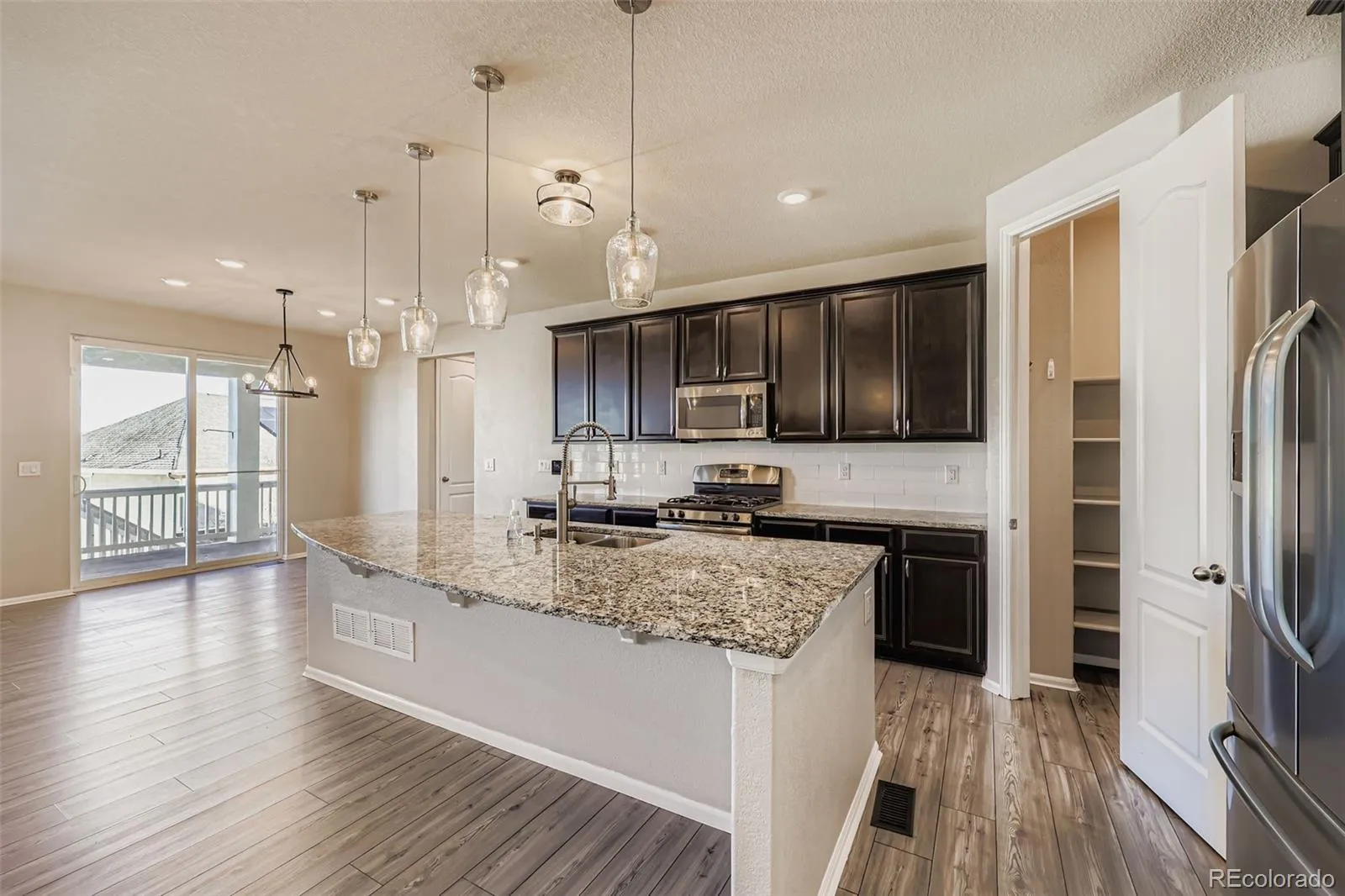 This beautiful 5-bedroom home truly has it all. From the moment you walk in, you’ll notice the attention to detail and all the high-end finishes. The main floor is designed with both comfort and entertaining in mind. The gourmet kitchen features a large center island with plenty of seating, a gas stove, stainless steel appliances, upgraded cabinets, granite countertops, and a roomy pantry. The dining area is perfect for hosting gatherings, and it opens seamlessly into the spacious great room—ideal for spending time with family and friends.