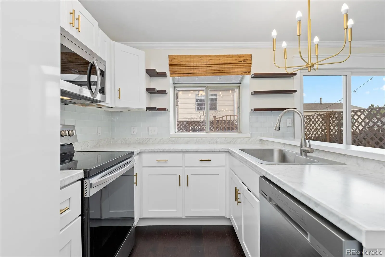 *Sellers offering a $3000 carpet credit* Discover your perfect townhome sanctuary in Littleton’s coveted Dakota Station community. This sun-filled retreat welcomes you with a charming covered entry and an inviting open-concept layout designed for comfort and style. Rich engineered hardwood floors span the main level, where the living room sets the stage for both cozy nights in and lively gatherings. The modern kitchen features stainless steel appliances, crisp white cabinetry, and a bright dining nook. Sliding doors open to a private, fenced patio—ideal for morning coffee, evening conversations, and year-round enjoyment. A convenient laundry area with side-by-side washer and dryer plus countertop space adds everyday ease. Upstairs, the primary suite shines with vaulted ceilings and skylights that fill the space with natural light. The ensuite bathroom offers a quiet, spa-like escape, while the second bedroom with vaulted ceilings is perfect for guests or a home office. Thoughtful upgrades include brand-new Pella windows (2023, lifetime transferable warranty), no popcorn ceilings (rare in Dakota Station), custom-trimmed windows and doors, crown molding, updated lighting, and nearly 500 square feet of accessible crawl space storage. A newly finished pantry adds extra functionality. Additional perks include a designated parking space, ample guest parking, and a storage shed on the back patio. Garden lovers will appreciate the perennial garden blooming spring to fall, a fruit tree, and a lush, plant-filled yard—an uncommon outdoor retreat. Dakota Station’s amenities complete the package with a community pool, tennis courts, playground, and scenic walking paths. All this in a fantastic location near parks, shopping, dining, and major roadways—welcome home