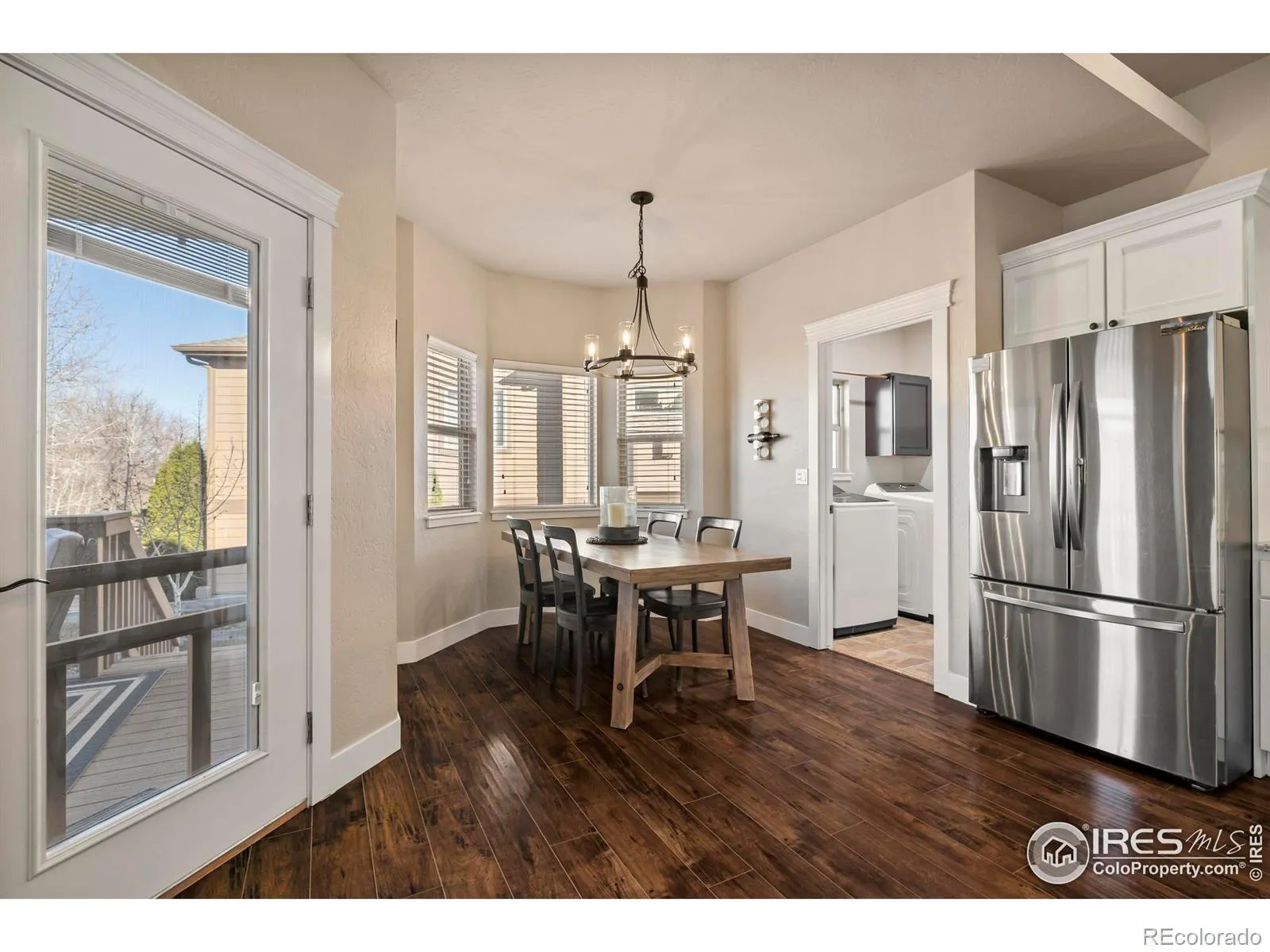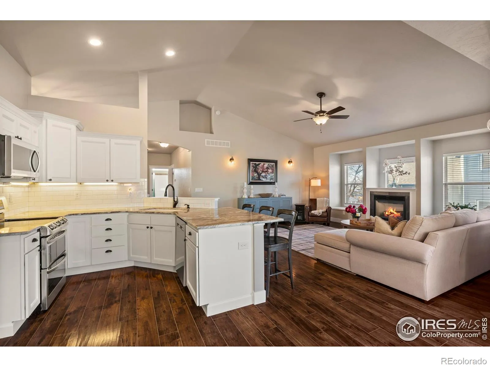 Welcome to this beautifully maintained 5-bedroom, 3-bathroom home, packed with upgrades and designed for comfortable living. The bright, open layout features vaulted ceilings, updated paint, new carpet and pad, modern can lighting, and a cozy gas fireplace that anchors the main living space. The kitchen impresses with granite countertops, stainless steel appliances and a generous walk-in pantry. The spacious primary suite offers a relaxing retreat with a tray ceiling, dual vanities, and a stunning 9′ tiled shower. Downstairs, the garden-level basement provides an airy, light-filled second living area perfect for entertaining or extra space to spread out. Enjoy outdoor living year-round with covered front and back patios and upgraded exterior lighting. Additional highlights include a biometric fingerprint front door lock, light dimmers in main living areas, a convenient laundry/mudroom off the garage, a tankless water heater, and a full sprinkler system. All of this is conveniently located near the Poudre River Trail, the FunPlex, schools, shopping, and neighborhood paths!