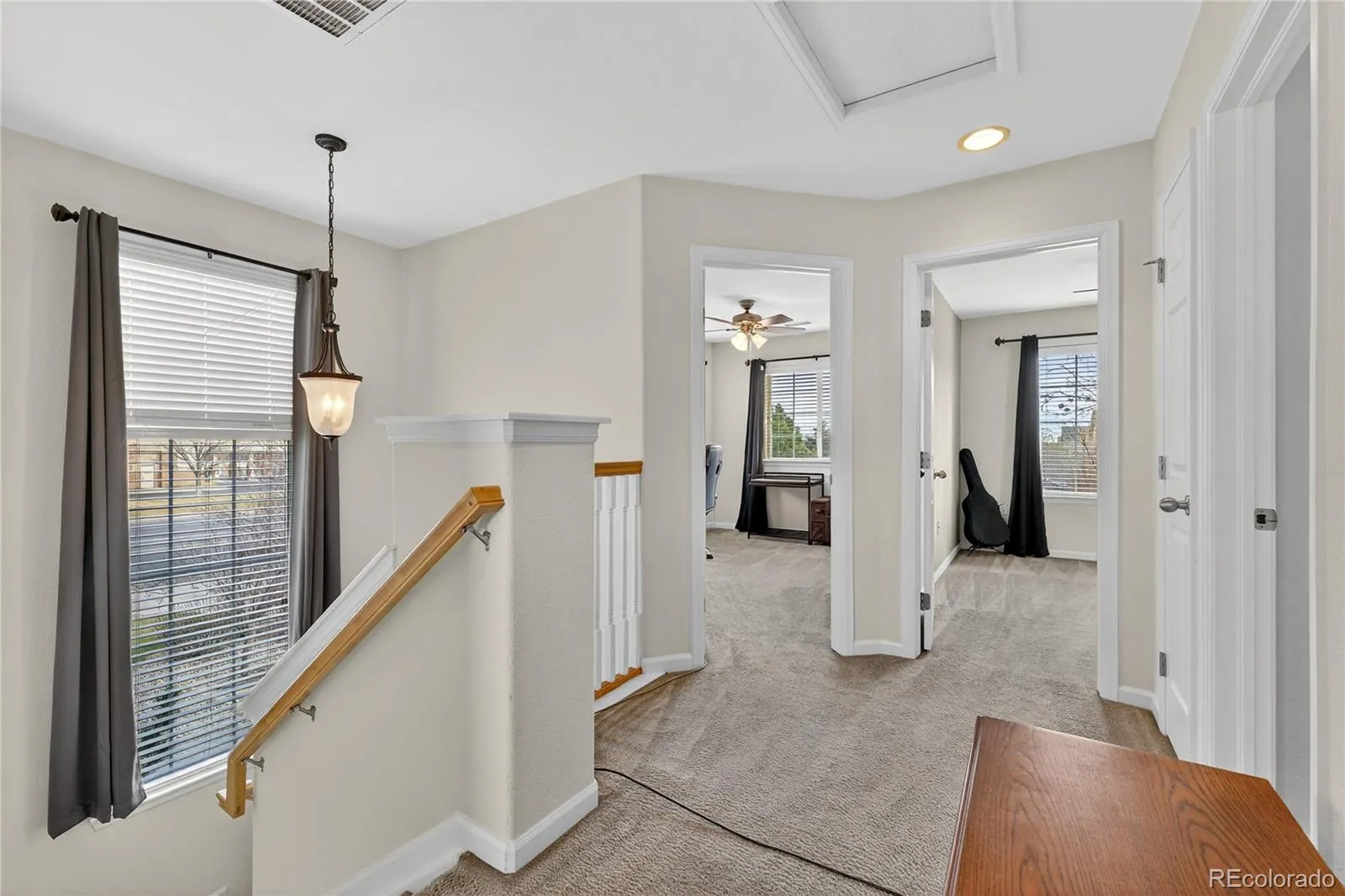 Welcome to this desirable end-unit townhome in the sought-after Sage Creek Townhomes community of Thornton. Step inside to a spacious front living room featuring a cozy gas fireplace—an inviting space to relax or gather. The open layout flows into the kitchen and dining area, complete with Corian countertops, stainless steel appliances, and an island with breakfast bar seating for casual meals or entertaining.
