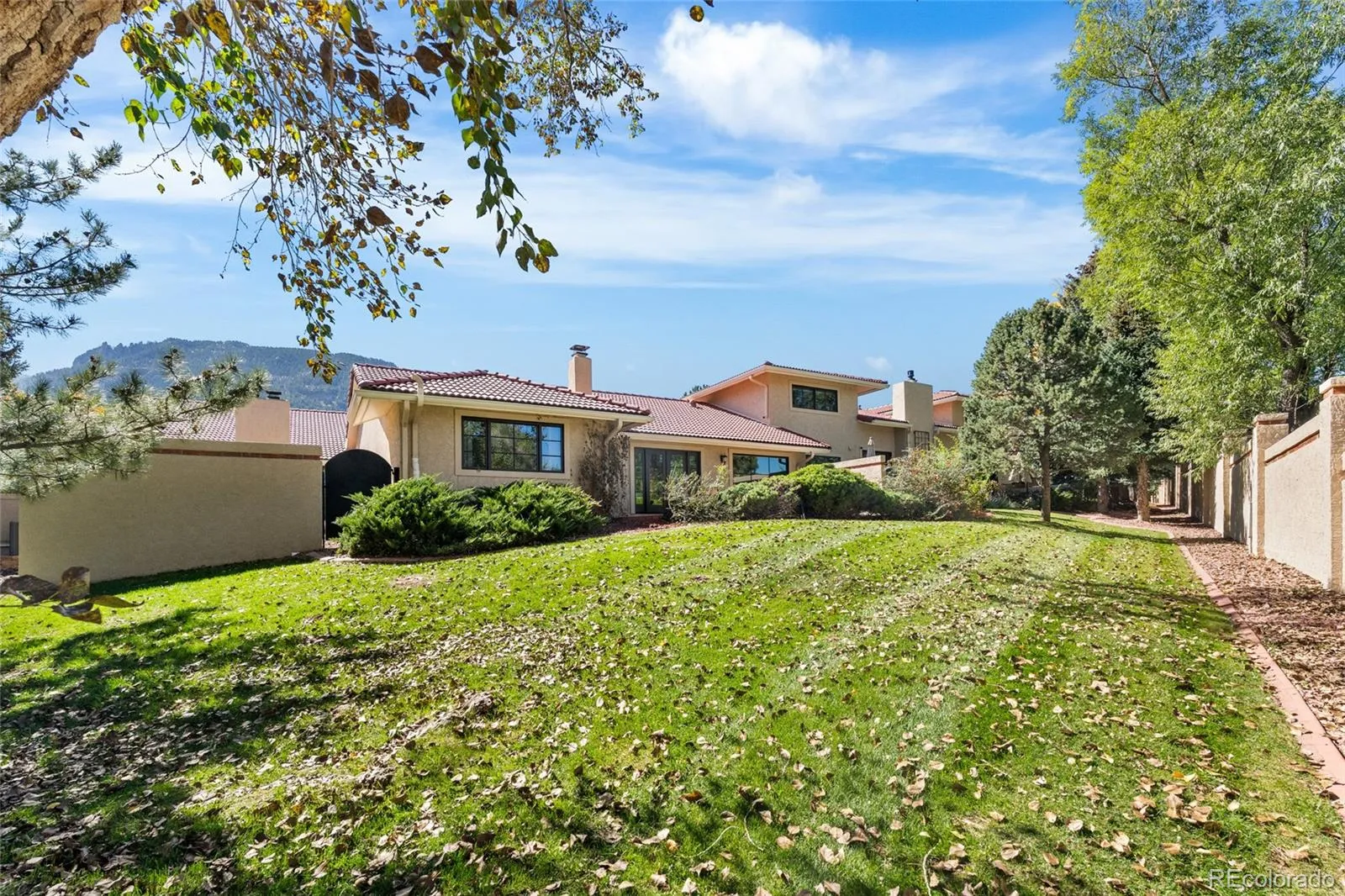 Tucked within the exclusive Broadmoor Heights gated community, this ranch-style townhome embodies timeless Colorado sophistication. Perfectly positioned to capture sweeping views of Cheyenne Mountain from the front and the Broadmoor Resort Golf Course from the back, the home is surrounded by natural beauty and quiet prestige. Step inside and experience effortless refinement, where vaulted ceilings with exposed beams and rich finishes create a sense of distinction and warmth. Every detail feels intentional, from the natural light that fills the space to the seamless blend of comfort and craftsmanship. The open main level flows with ease, offering an inviting setting for entertaining or relaxed daily living. The kitchen, dining, and living areas connect effortlessly. The primary suite provides a peaceful retreat with a private patio perfect for morning coffee or an evening glass of wine as the sun dips behind the mountains. A secondary bedroom suite and a flexible office complete the thoughtful main-level design. This versatile office space can easily serve as a third bedroom on the main level or a hobby room, offering the ease of genuine single-level living with thoughtful versatility. The lower level impresses with scale and possibility. A stylish wet bar and guest suite anchor the space, ideal for customizing into a recreation haven, art studio, fitness center, and/or home theater. Its openness and size is rare in many low-maintenance gated community homes. Every element of this home speaks to quiet elegance and ease, allowing you to fully enjoy the Broadmoor lifestyle- golf, dining, and resort amenities just moments away. Nestled at the private back of the community, this residence offers both peace of mind and the prestige of one of Colorado Springs’ most coveted addresses.