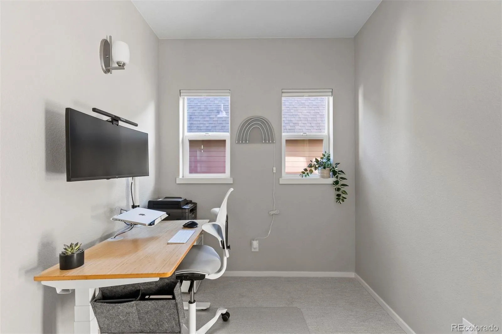 Additional features include central air conditioning, a tankless water heater, a whole house humidifier, an attached two car garage, and a private fenced yard that invites quiet mornings and relaxed weekends outdoors. Set within the sought after Midtown community with pocket parks, trails, and walkable favorites such as Bruz Beers and Early Bird, this location offers a connected Denver lifestyle.