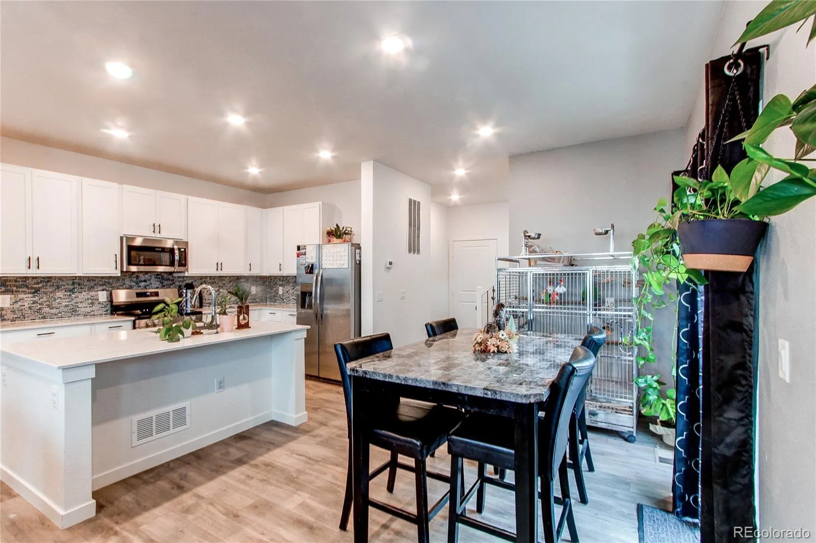 Welcome home! You will love this like new 2 story 3 bedroom 3 bathroom in Bennett Village! An abundance of natural light invites you in to experience this open floor plans living space kitchen and half bath complete with 9ft ceilings. Your new kitchen has all you desire eat at island with quartz counter tops, stainless steel appliances and a large dining space. Upstairs you will find two guest rooms, a full bathroom, laundry closet and the master bedroom you have been searching for, its large, feels private, and has the ensuite with walk in closet. The fenced side yard allows space for you to entertain, play with the kids or to let the dog run. One block form the community park and within walking distance to Bennett rec center. Assumable 4.99% FHA loan available! Schedule your showing today!