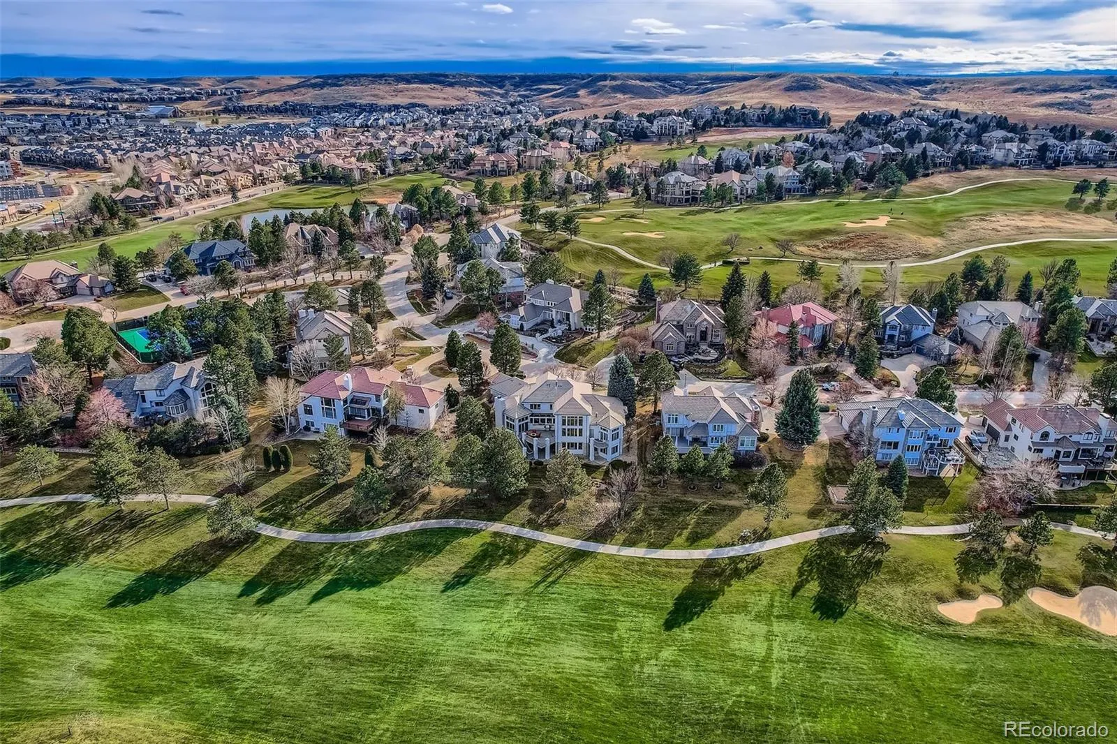 Experience elevated luxury in coveted gated Heritage Estates, perched on the 11th fairway of the Lone Tree Golf Course with sweeping Rocky Mountain and city-light views. This pristine home features 4 bedrooms, 6 bathrooms, and 4 fireplaces. The main-floor primary suite is a true retreat, with a gas fireplace, generous sitting area, and private deck overlooking mountains, golf course, and cityscape. The spa-inspired ensuite bath offers dual vanities and a large custom walk-in closet. The bright, open kitchen boasts expansive counters, pull-out cabinetry, accent lighting, and breathtaking views, flowing seamlessly to the family room with its gas fireplace, lighted display shelving, and deck access all perfect for entertaining or relaxing.