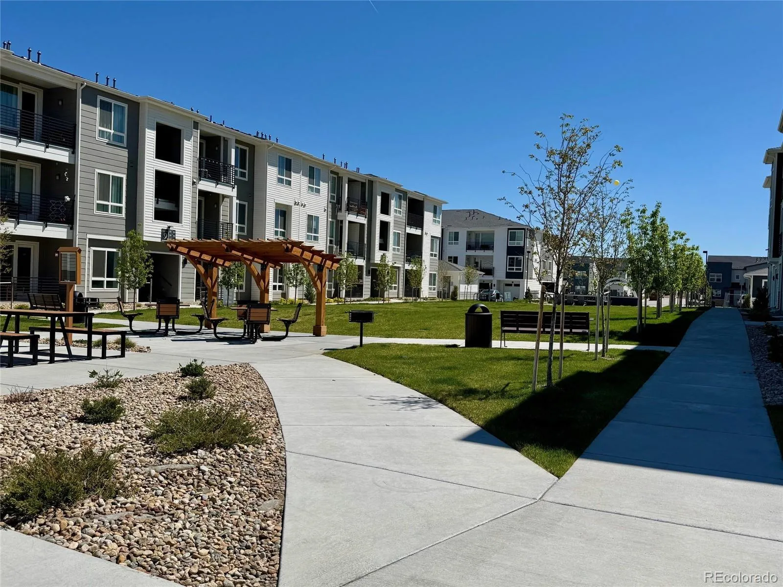 QUICK MOVE-IN! RARE OPPORTUNITY – GROUND FLOOR UNIT WITH NO STAIRS & MOUNTAIN VIEWS! BRAND-NEW Vyktorea I plan faces south for ample natural light and includes an extra-deep, attached 1-car garage with driveway parking! This unit features our sleek Colorado Complete package including beautiful quartz countertops, white soft-close cabinets, stainless steel appliances (including refrigerator), full sized front-loading washer and dryer, and high quality, waterproof LVP flooring throughout. Large kitchen island seats 4-5 and features oversized stainless steel sink and semi-professional Kohler faucet. Brushed nickel hardware and fixtures add to the contemporary feel. Oversized subway tile in both baths, lighted mirror and large soaking tub in the primary bath. This unit is move-in ready and includes window blinds, air conditioning, Navien tankless water hearter, Kwikset Smartcode deadbolt and more. Enjoy easy access to light rail with Pena station less than a mile away. We’re also close to GVR Recreation Center and GVR Golf Club, as well as new restaurants, new brew pub, new K-8 school, and so much more! Easy access to E-470, I-70 and DIA. Ask about our amazing incentives and loan options today! Visit www.lokalhomes.com for more information. Buyer shall be responsible for verifying property taxes as there is currently no available tax information for the units at the assessor’s website.