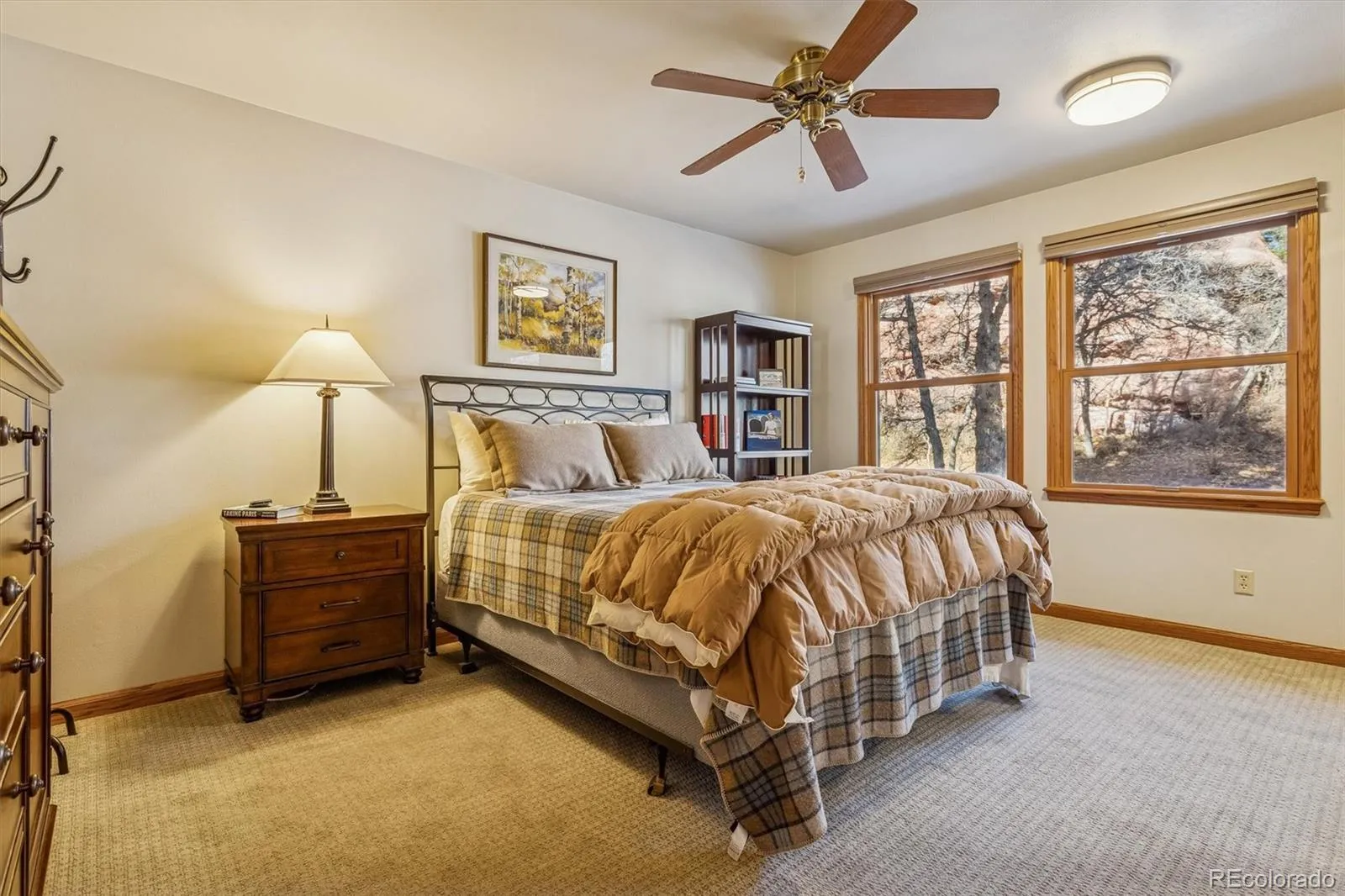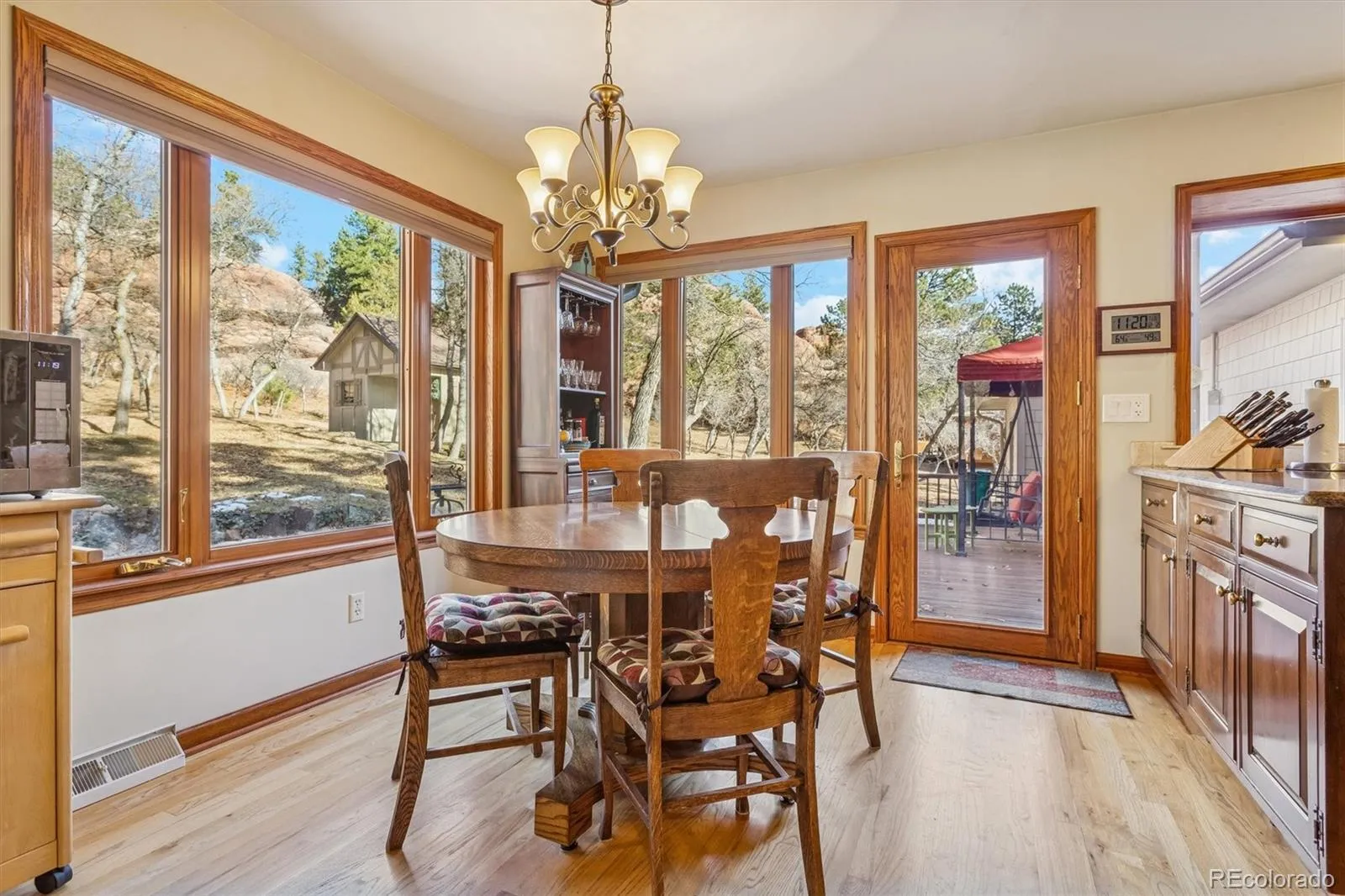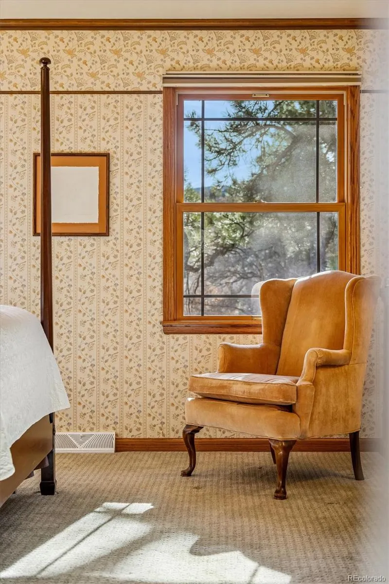 Welcome to your dream home in Perry Park! Nestled on nearly an acre of pristine Colorado land, this serene retreat is surrounded by majestic trees, dramatic rock formations, and sweeping mountain views. It even features a rock outcropping right outside your back door! Inside, the inviting living room exudes warmth, featuring a built-in nook with storage and abundant windows that fill the space with Colorado sunshine. The adjacent dining room flows onto a wraparound covered deck, ideal for summer gatherings, alfresco dinners, or quiet afternoons enjoying the peaceful surroundings. The family room boasts a cozy gas fireplace, perfect for curling up with a favorite book. The heart of the home, the eat-in kitchen, is a chef’s delight—equipped with stainless steel appliances, cherry cabinets, granite countertops, a stylish tile backsplash, and a spacious pantry. Just off the kitchen, the formal dining room offers plenty of space for hosting memorable dinners. Completing the main floor are a convenient half bath and a well-appointed laundry room. Upstairs, the spacious primary suite is a private retreat. The updated ensuite showcases dual vanities, granite counters, a walk-in tiled shower, illuminated mirrors, and a generous walk-in closet, all with stunning views of the backyard rock outcropping. Three additional bedrooms share a full bath with a soaking tub and walk-in shower. The expansive basement is versatile, perfect for movie nights or hosting guests. It features a wet bar and kitchenette, a 3/4 bathroom with a tiled shower, and a bonus room that could serve as a nonconforming bedroom, home office, or creative space. This Perry Park gem offers the perfect balance of tranquility, luxury, and connection to nature—experience one of Colorado’s most peaceful retreats and schedule your showing today!