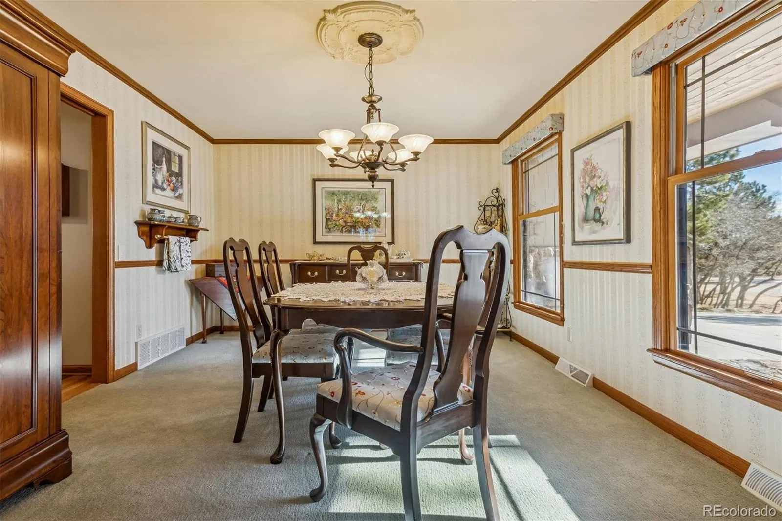 Welcome to your dream home in Perry Park! Nestled on nearly an acre of pristine Colorado land, this serene retreat is surrounded by majestic trees, dramatic rock formations, and sweeping mountain views. It even features a rock outcropping right outside your back door! Inside, the inviting living room exudes warmth, featuring a built-in nook with storage and abundant windows that fill the space with Colorado sunshine. The adjacent dining room flows onto a wraparound covered deck, ideal for summer gatherings, alfresco dinners, or quiet afternoons enjoying the peaceful surroundings. The family room boasts a cozy gas fireplace, perfect for curling up with a favorite book. The heart of the home, the eat-in kitchen, is a chef’s delight—equipped with stainless steel appliances, cherry cabinets, granite countertops, a stylish tile backsplash, and a spacious pantry. Just off the kitchen, the formal dining room offers plenty of space for hosting memorable dinners. Completing the main floor are a convenient half bath and a well-appointed laundry room. Upstairs, the spacious primary suite is a private retreat. The updated ensuite showcases dual vanities, granite counters, a walk-in tiled shower, illuminated mirrors, and a generous walk-in closet, all with stunning views of the backyard rock outcropping. Three additional bedrooms share a full bath with a soaking tub and walk-in shower. The expansive basement is versatile, perfect for movie nights or hosting guests. It features a wet bar and kitchenette, a 3/4 bathroom with a tiled shower, and a bonus room that could serve as a nonconforming bedroom, home office, or creative space. This Perry Park gem offers the perfect balance of tranquility, luxury, and connection to nature—experience one of Colorado’s most peaceful retreats and schedule your showing today!