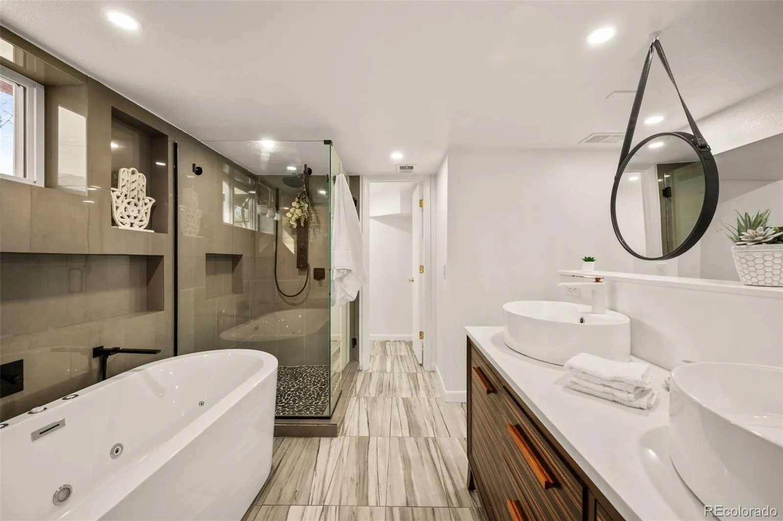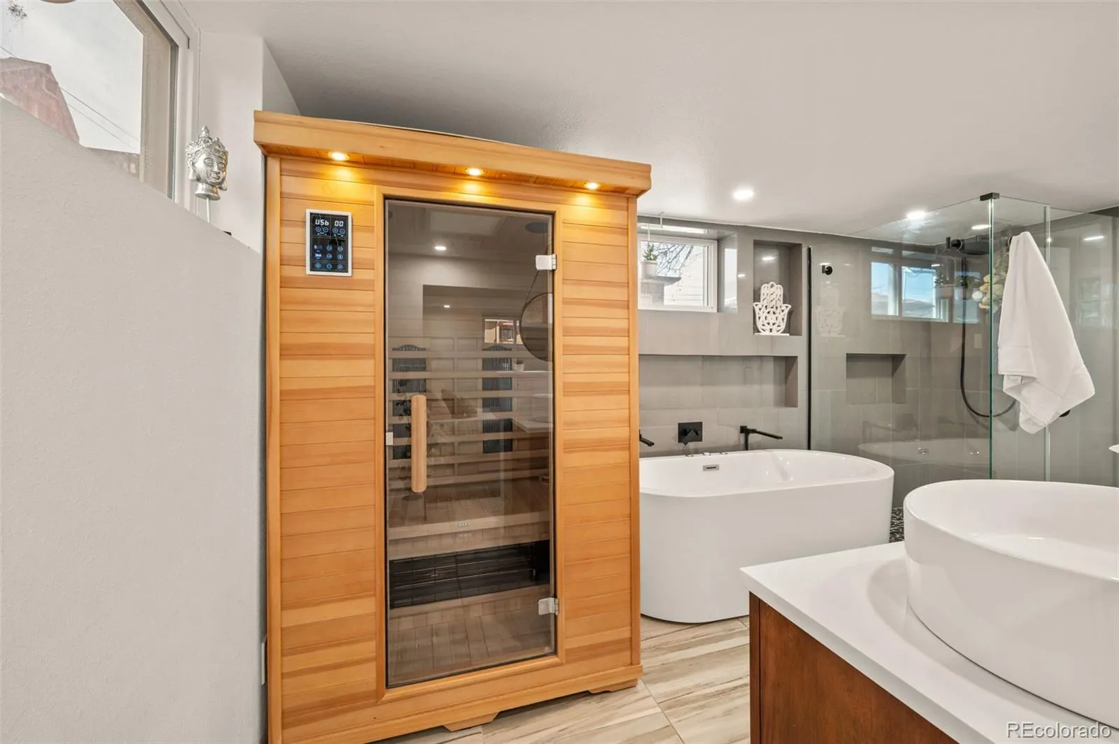 Retreat to the lower level and experience the true standout of the home: a luxurious “Zen Den” primary suite featuring a free-standing jetted soaking tub, an infrared sauna, and warm, tranquil finishes that create a spa-like escape. It’s the perfect place to reset, restore, and rise ready for a new day.