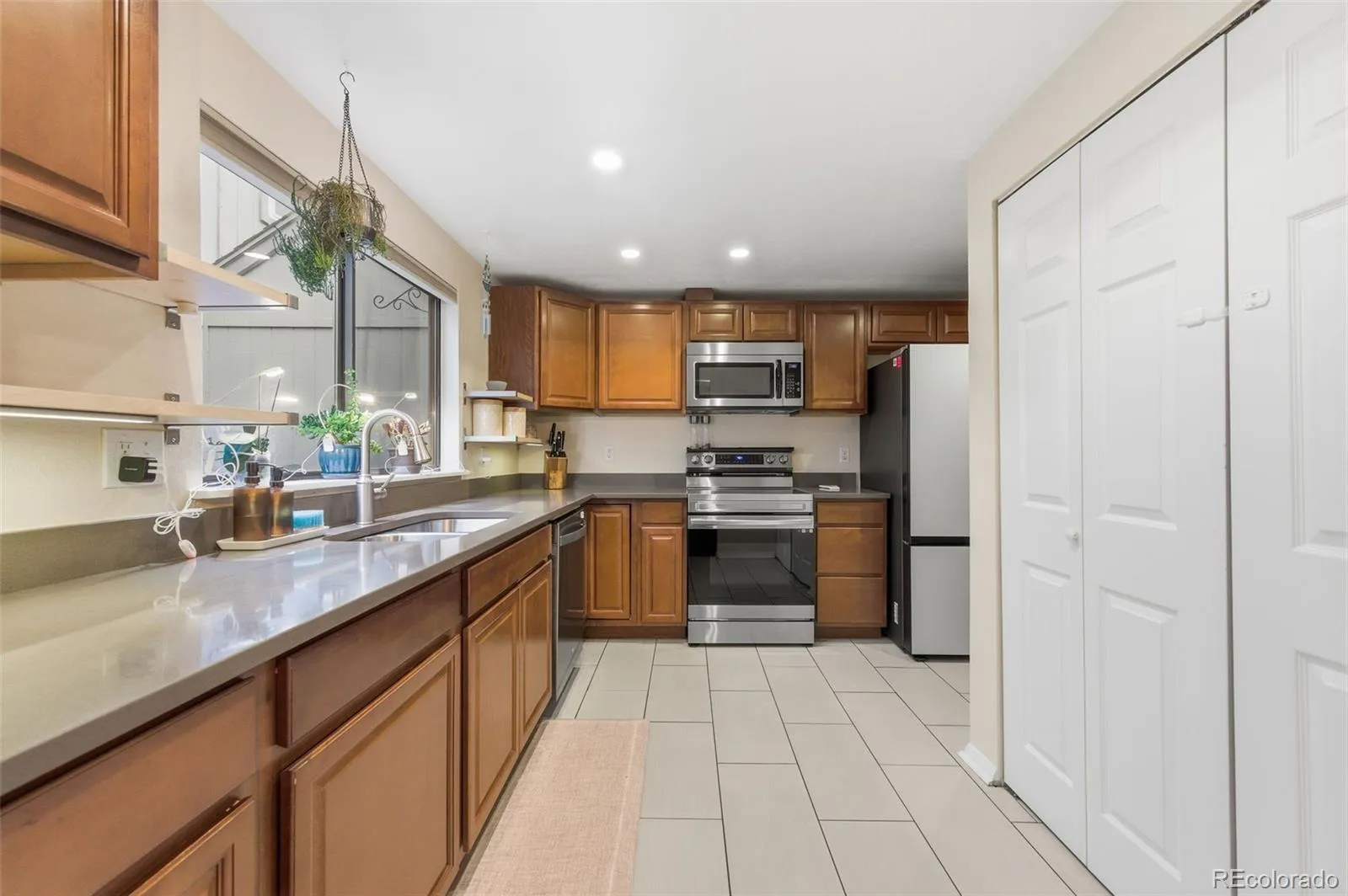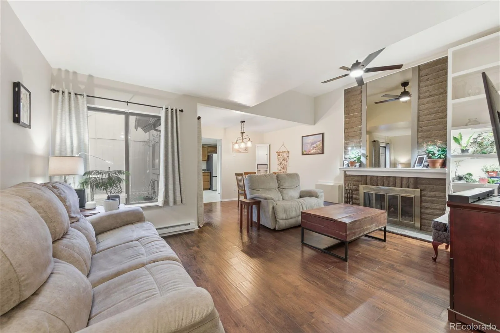 Welcome to this beautifully updated townhome in the highly desirable Heather Ridge South community. This spacious two-story residence features 3 bedrooms and 2 bathrooms across 1,282 square feet of thoughtfully designed living space. The main level showcases warm wood flooring, high ceilings, and an open living area centered around a cozy wood burning fireplace. The remodeled kitchen is equipped with quartz countertops, a cooktop, convection oven, and a full suite of modern appliances, with an adjacent in-unit laundry closet for added ease. Two main-level bedrooms provide flexible living options, while the private upstairs primary suite includes an en-suite three-quarter bath, with an additional loft space. Enjoy tranquil views of the golf course and a private patio perfect for relaxing or entertaining. The home also offers an attached 2-car garage and is situated within the Cherry Creek School District. Residents of Sausalito HOA enjoy access to a community pool, beautifully maintained grounds, and convenient proximity to light rail, parks, shopping, and major commuter routes. With thoughtful upgrades, smart-home features, and a prime Aurora location, this home is truly move-in ready.