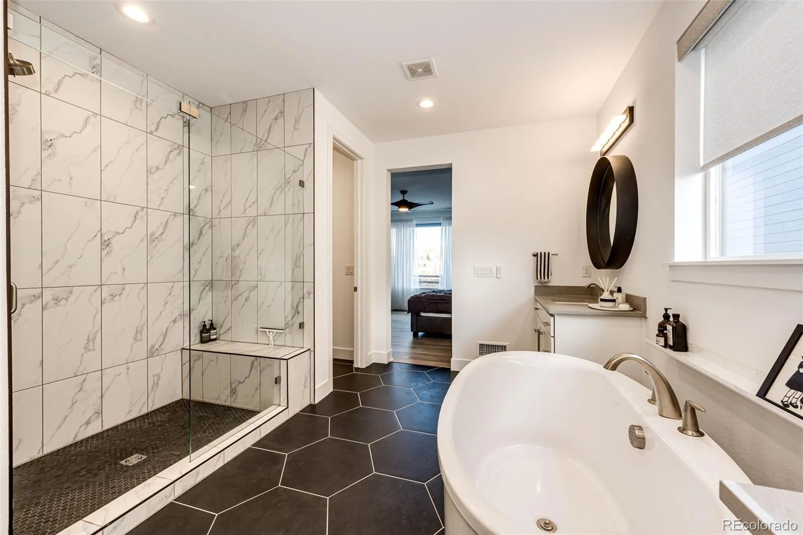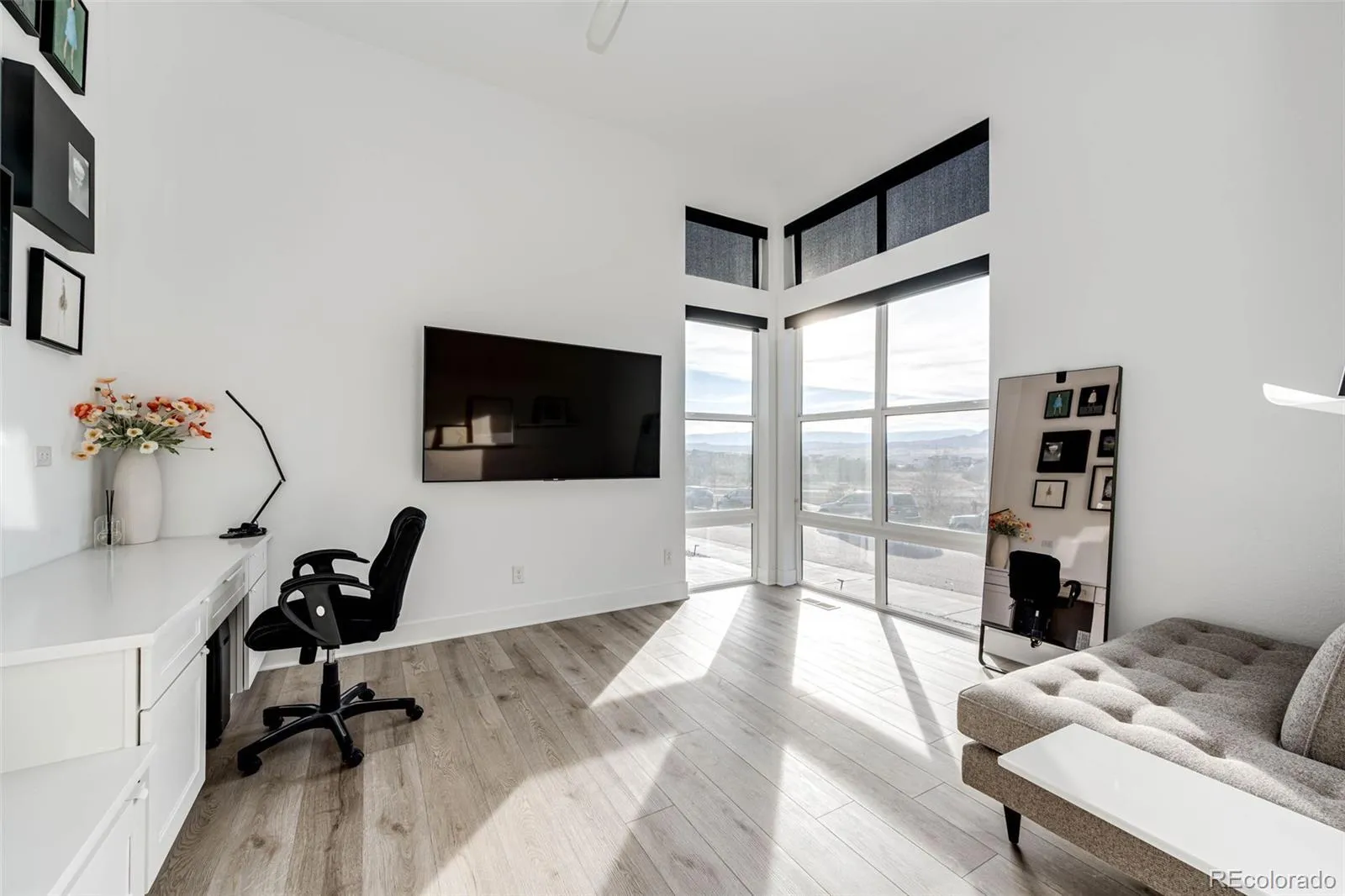The spacious main-floor primary suite features a beautifully appointed five-piece bath, custom finishes, a cozy fireplace, and generous natural light. The dramatic two-story great room is filled with expansive windows and anchored by a striking Cosmo fireplace with full-height tile chimney surround. The gourmet kitchen offers a 48” gas range, 48” side-by-side refrigerator, slab countertops, extensive luxury flooring, high-end tile selections, abundant cabinetry, and a large walk-in pantry—perfect for everyday living and entertaining. Enjoy the wild life and the Colorado Sunsets.