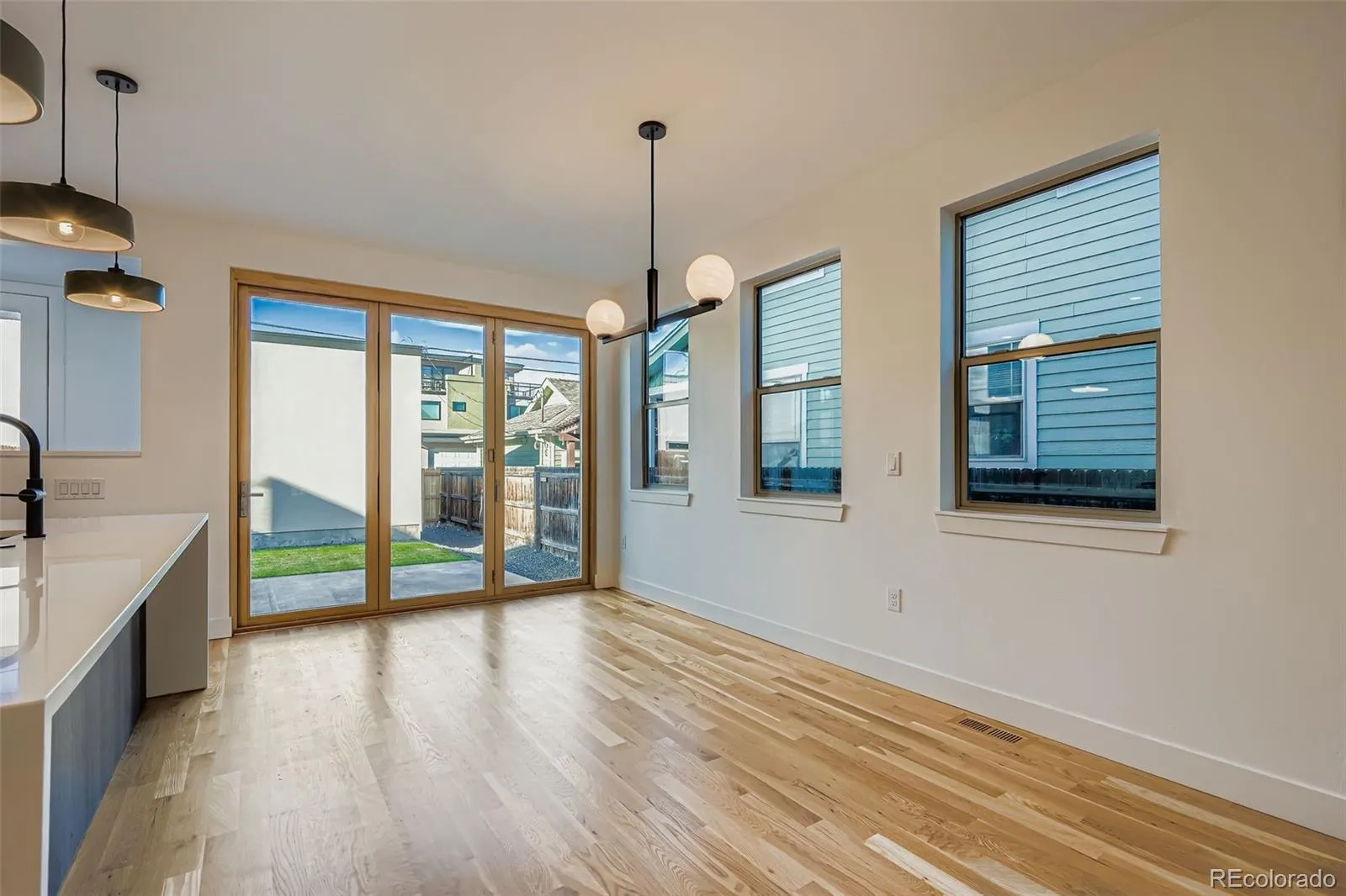 New construction. Discounted for a limited time! Location, indeed! Smart, modern floor plan with unparalleled living in this brand-new, 3-story Berkeley – Tennyson home. Thoughtful design and an open layout are enhanced by abundant natural light, maximizing efficient spaces without sacrificing privacy. The sleek, gourmet kitchen seamlessly blends with the dining, living, and outdoor courtyard areas, flowing effortlessly onto a private patio through an incredible 12′ accordion door! Perfect for integrated indoor-outdoor entertaining. This impressive home also features a dedicated front office, a spacious primary suite, two entertainment zones, a desirable rooftop deck overlooking the nearby park, a two-car garage with additional storage, and a convenient second-floor laundry room. High-efficiency features throughout: Electric heat pump, hybrid water heater, solar-ready, rated windows and structure. Located in a prime Tennyson location, you’re steps away from some of Denver’s most popular restaurants, coffee shops, and boutiques, with downtown Denver just a short drive away. Incredible neighborhood! New Build Warranty – 1 year workmanship, 2 year systems, and 10 year structural.