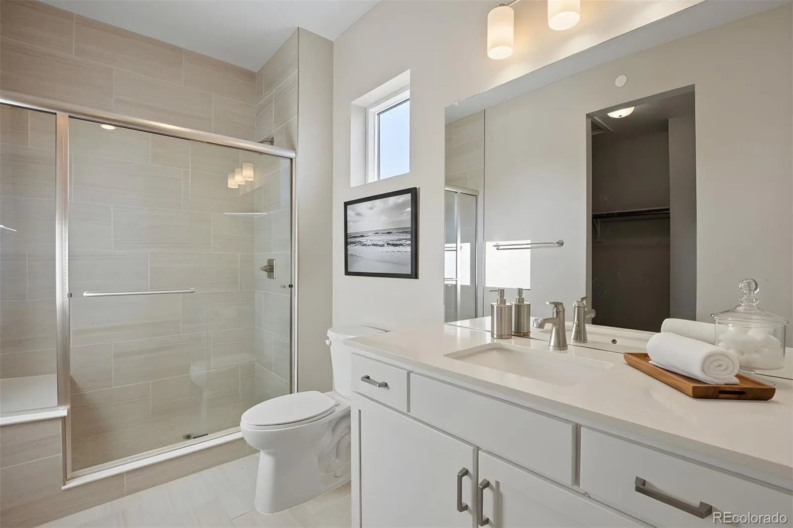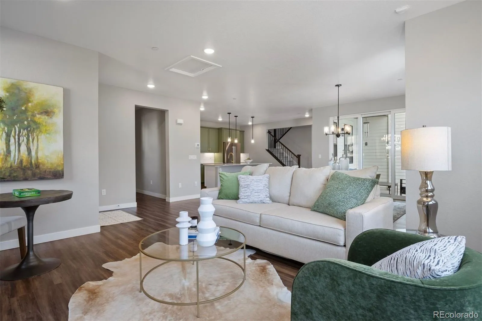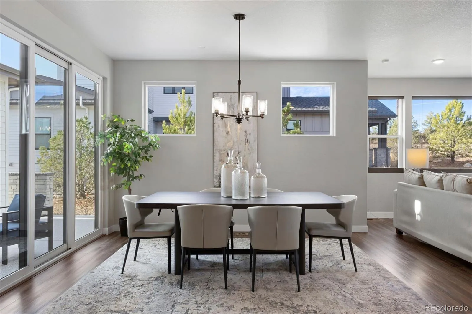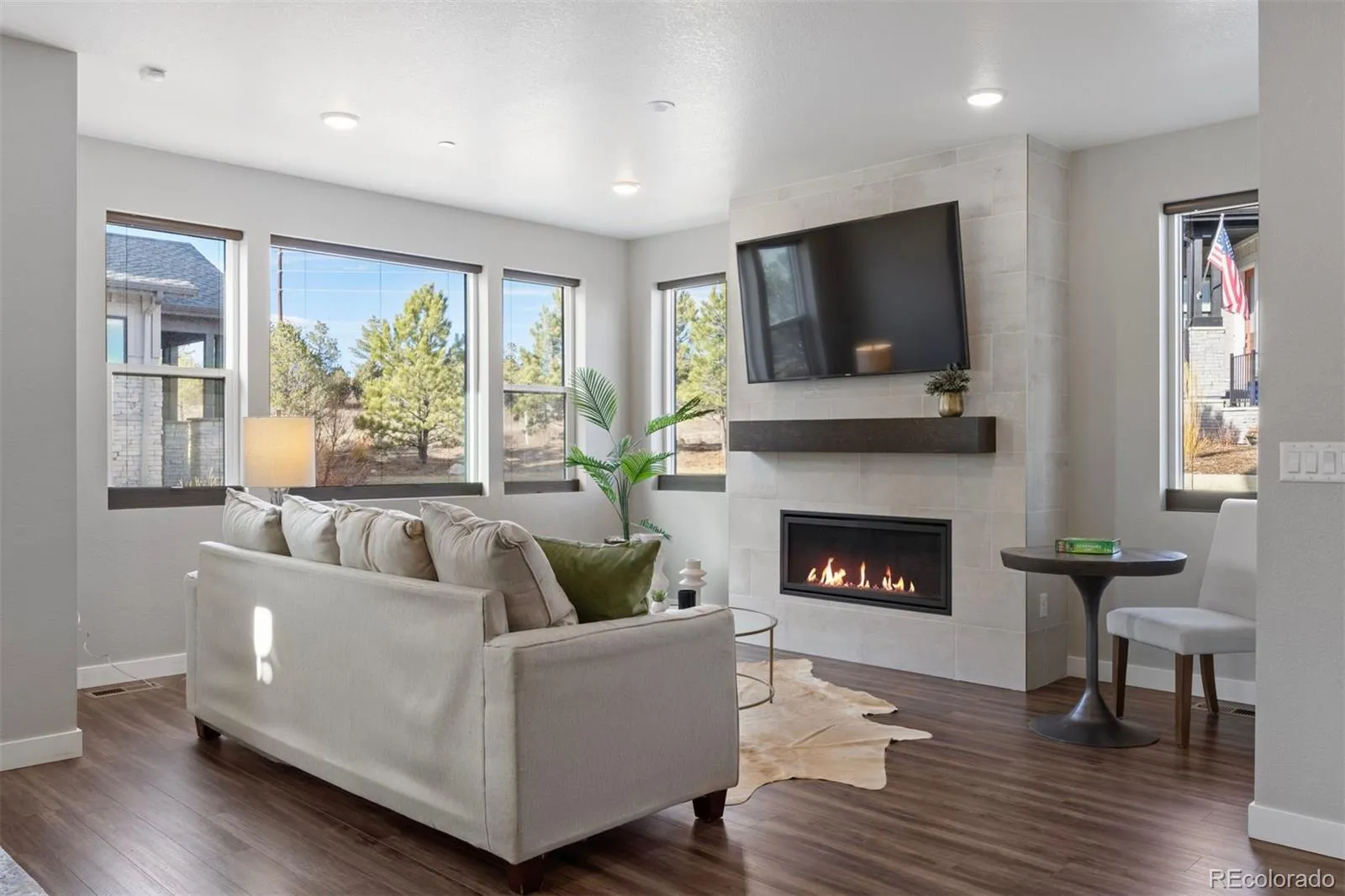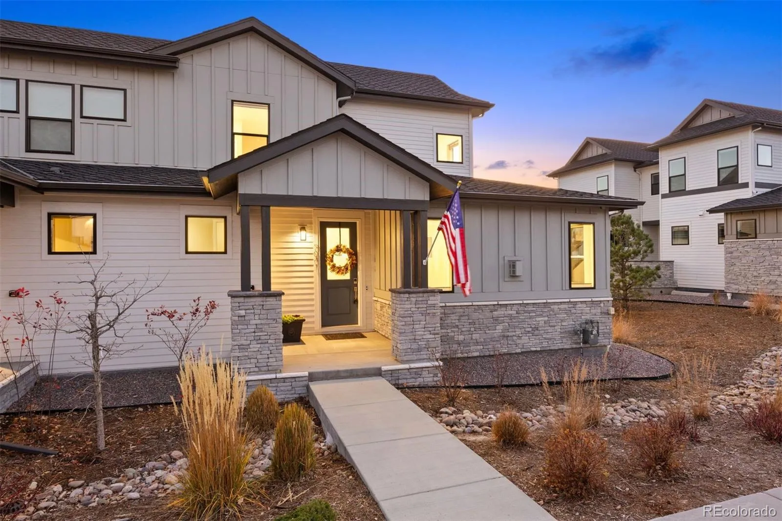 Perfectly positioned for effortless walkability to The Village at Castle Pines and surrounding amenities, this beautifully designed 3 bedroom | 4 bathroom residence offers sophisticated, updated finishes and a coveted open concept plan. The light-filled main level is the heart of the home, where the great room features engineered hardwood floors, a stone surround fireplace with wood mantel, and dual function privacy shades framing protected open space views often visited by neighborhood wildlife. The dining area seats 8+ with ease, and opens to a newly epoxied, partially covered patio with included outdoor furniture. The kitchen showcases professionally painted cabinets, quartz counters, soft-close drawers, subway tile backsplash, a 5-burner cooktop with hood, and a large pantry. The main floor primary suite offers peaceful views and a spacious bath with quartz counters, dual sinks, a generous walk-in shower, and large walk-in closet with built-ins. Thoughtful storage enhances daily living with a mudroom, oversized coat closet, and spacious main level laundry room with abundant cabinetry. Upstairs, a versatile loft easily converts to a fourth bedroom and complements two secondary bedrooms, both with walk-in closets. A stylish full bath and closet with built-in shelving complete the upper level. The unfinished basement offers future expansion potential, an opportunity to build equity, and features a freshly painted floor. Additional highlights include Ring security and Alexa-ready smart home capability. Miles of nature trails are steps away, creating a rare blend of convenience, recreation, and privacy with exceptional access to the Village Shops, neighborhood fitness center, pickleball and tennis courts, pools, and Gate 3 for quick and easy entry. This gorgeous home provides a path to experience low maintenance living at its finest, with all landscaping and snow removal professionally managed by the HOA, freeing you to enjoy the Colorado lifestyle you love.