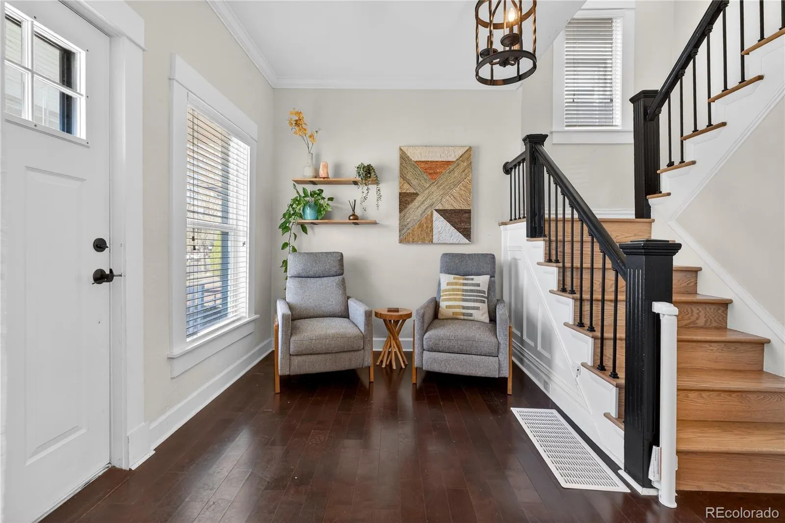 Discover this beautiful West Wash Park Victorian, a true gem that blends the charm and character of its historic roots with thoughtful modern updates. Ideally located near trendy South Broadway restaurants and shops, the beloved Wash Park, and everyday conveniences, this home offers exceptional walkability—including a quick 6-minute stroll to light rail and easy access to groceries, dining, and more. A large entryway provides a warm and welcoming introduction to the home. From here, the open living and dining rooms flow together, united by gorgeous hardwood floors, exposed brick, and a cozy fireplace. The modern kitchen features abundant Shaker cabinetry, with even more storage in the adjacent laundry room that leads directly to the backyard. Upstairs, you’ll find three generously sized bedrooms—each offering the rare advantage of big closets uncommon for the era. The primary suite includes its own en-suite bath and excellent storage. A newly finished basement adds versatile living space with a comfortable family room, dedicated home office, and substantial storage options. Outdoor living shines in the private, spacious backyard with a large stamped concrete patio and a gas line ready for your grill or firepit—perfect for relaxing or entertaining. The property also includes a 2-car detached garage plus ample space to park up to three additional vehicles or an RV. With mountain views, a recently replaced water heater (2021), updated flooring upstairs and on the stairway (2020), and quick access to I-25, this timeless Victorian offers both modern comfort and unbeatable location in one of Denver’s most desirable neighborhoods. Buyer/Buyer’s agent is responsible for verifying all information, measurements and schools.