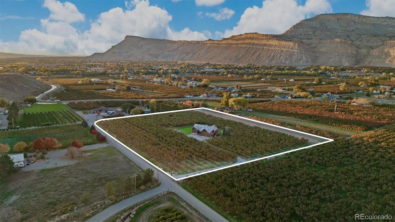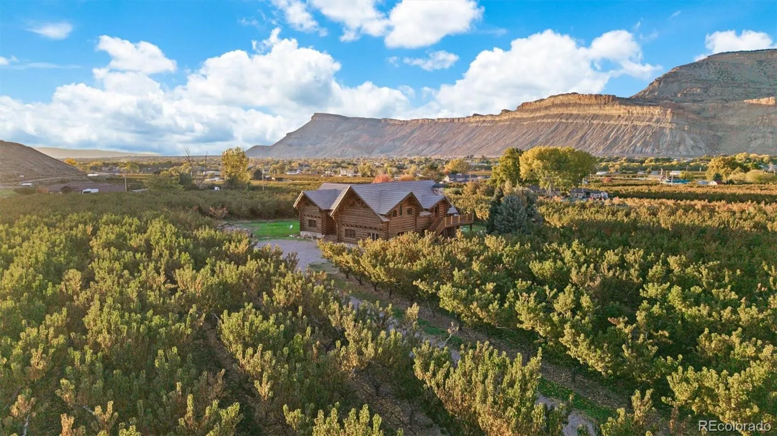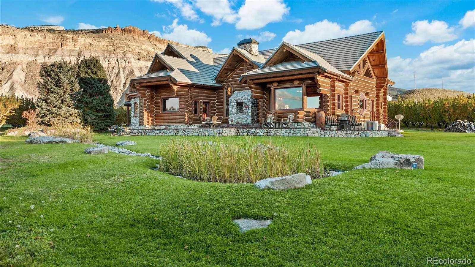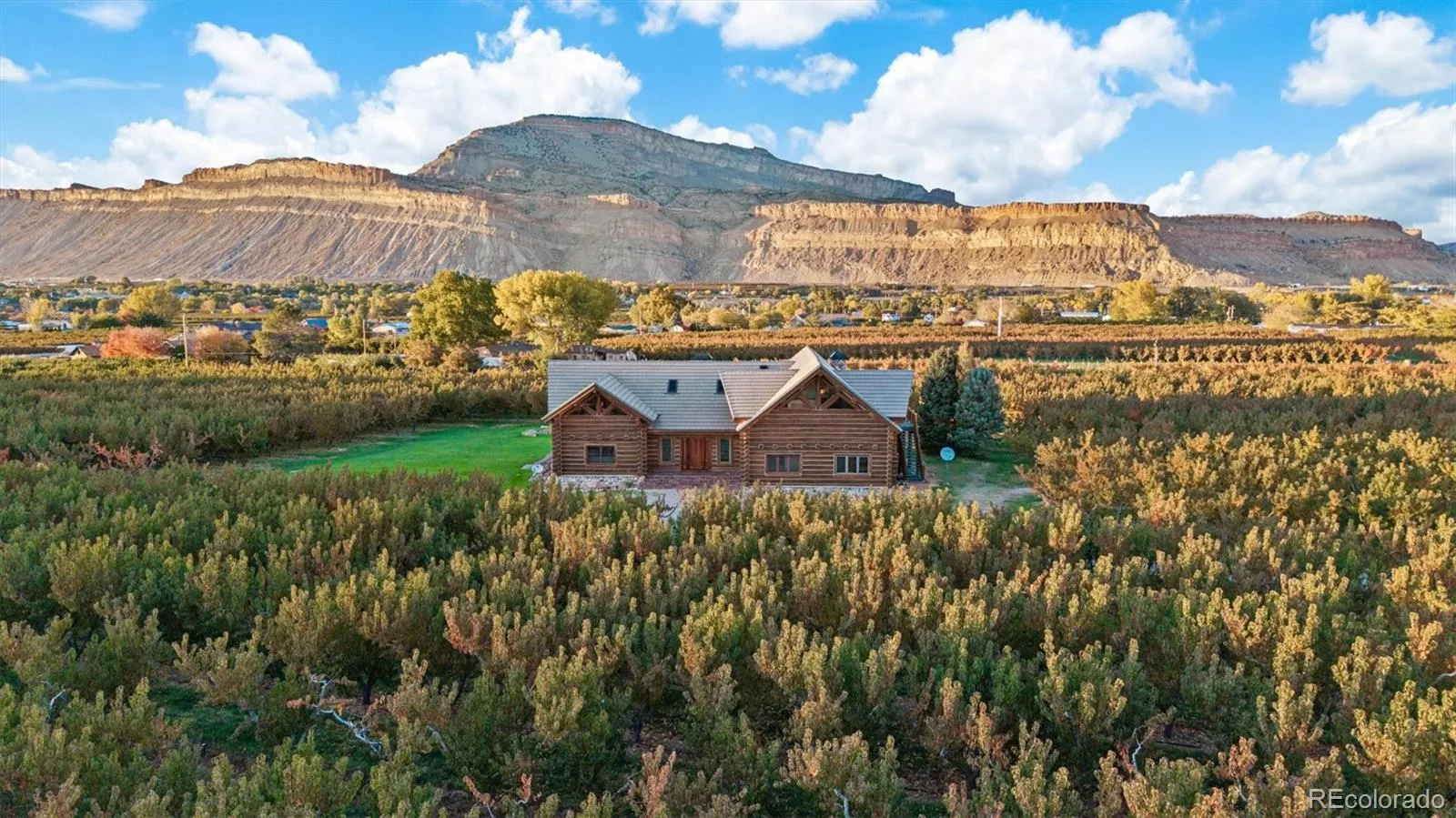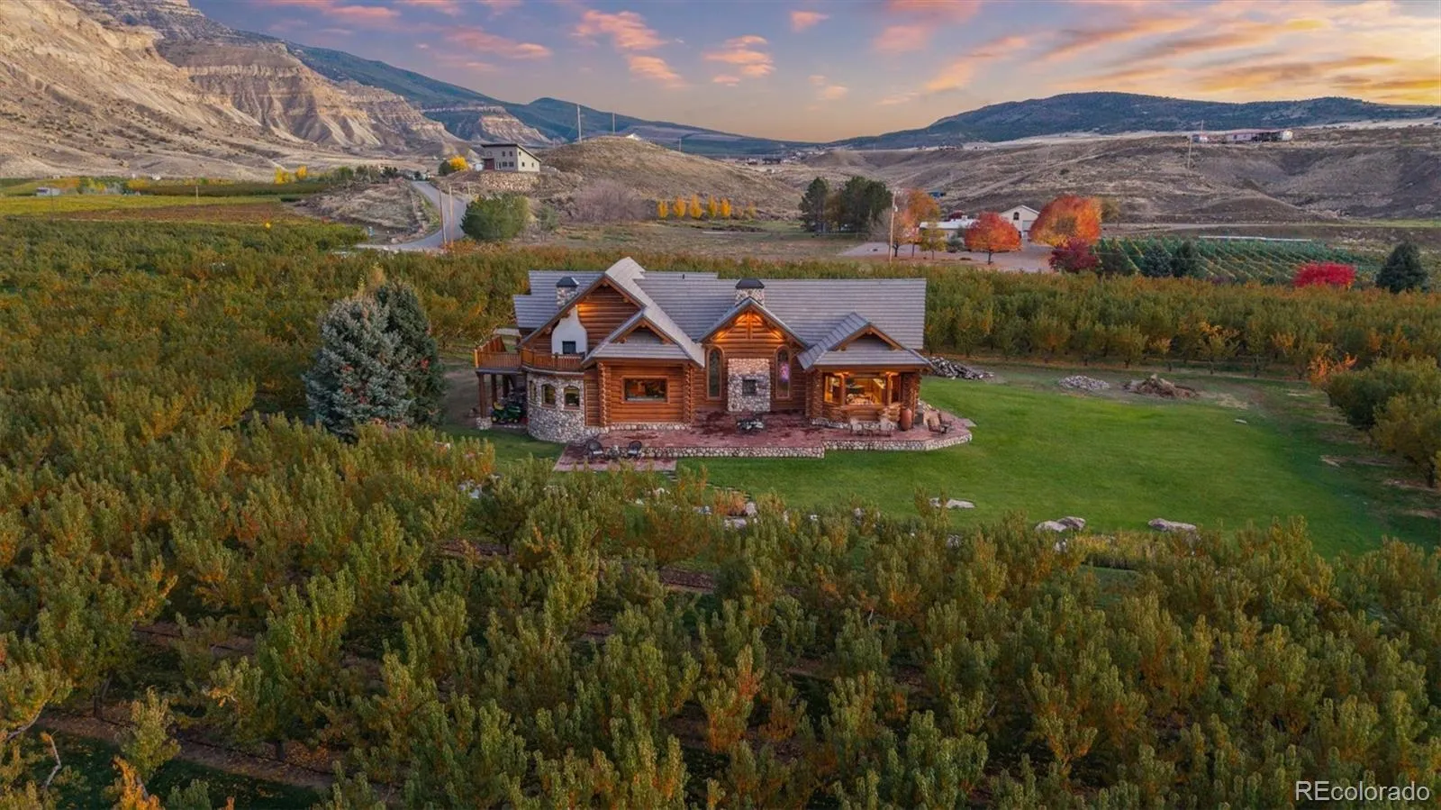 Imagine waking to breathtaking vistas of the Grand Mesa, Book Cliffs, and Palisade’s vineyards from your own 7.5-acre, professionally managed peach orchard. This past year, the orchard grossed approximately $160,000, delivering the homeowners $38,000 in truly passive income, with no out-of-pocket costs or work required, and irrigation water included in the property taxes, there’s no extra overhead. This custom log home, crafted from 12–16” hand-peeled logs, blends rustic artistry with wine-country serenity in the heart of the Vineland microclimate. Sunlight pours throughout over ash and walnut hardwoods, knotty pine ceilings, and antique stained-glass windows, highlighting a dramatic wood-burning Roaring Fork River rock fireplace that anchors the main living space. Multiple main-level living areas include a second primary suite, two guest rooms, and dual offices. A craftsman-built spiral staircase leads to the upper primary suite, a private retreat with antique doors, a gas fireplace, a spa-like bath, and a brand-new Trex deck with an exterior fireplace. An exposed loft overlooks the dining room and orchard, perfect for a TV lounge, creative studio, or quiet reading nook. Wraparound decks with volcanic granite, custom copper accents, and an outdoor river-rock fireplace invite year-round enjoyment of the orchard, ponds, and mountains. The property features two serene ponds connected by a flowing stream and waterfall, creating a private, tranquil retreat that feels worlds away. With no HOA and room for future additions, this home is both sanctuary and canvas, offering a lifestyle steeped in Palisade’s orchards, wineries, farm-to-table culture, and warm small-town charm. This is more than a home; it’s an immersive retreat in Colorado’s most enchanting agricultural valley. A must see!