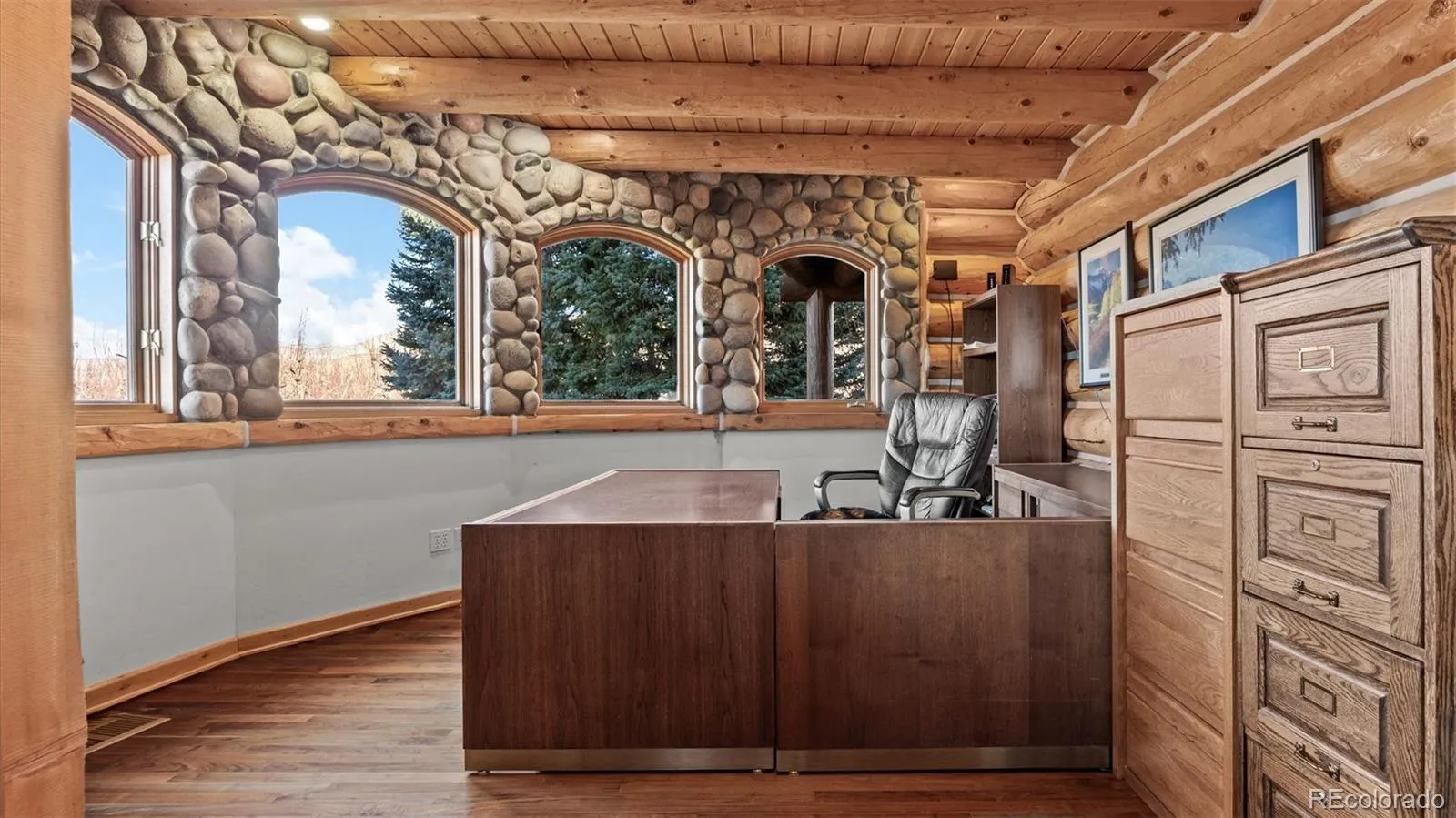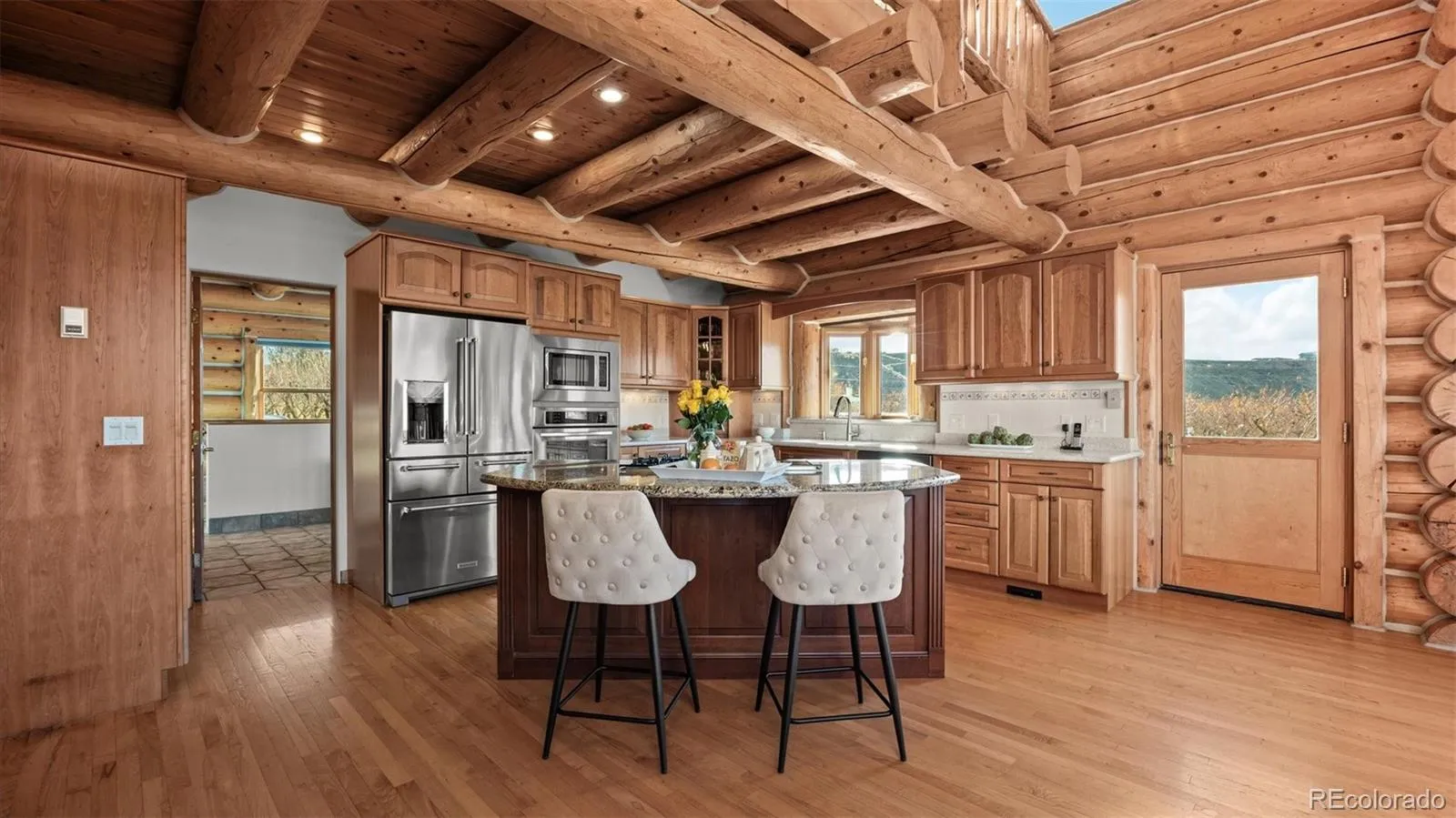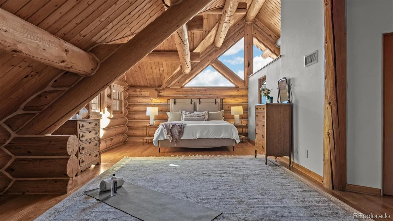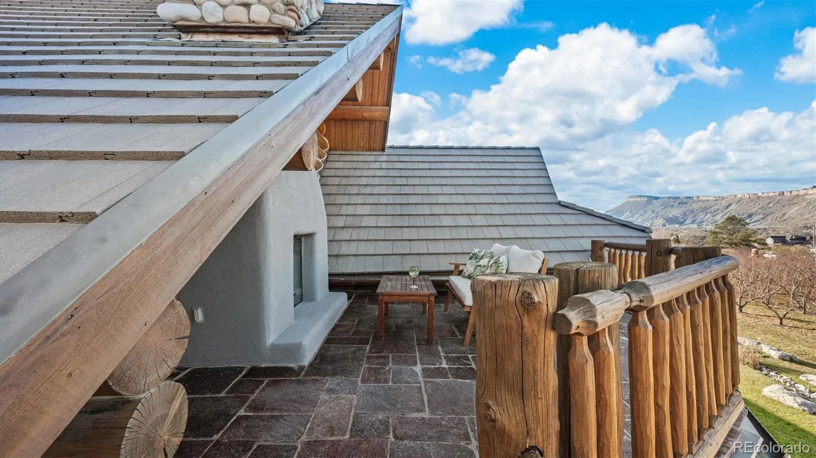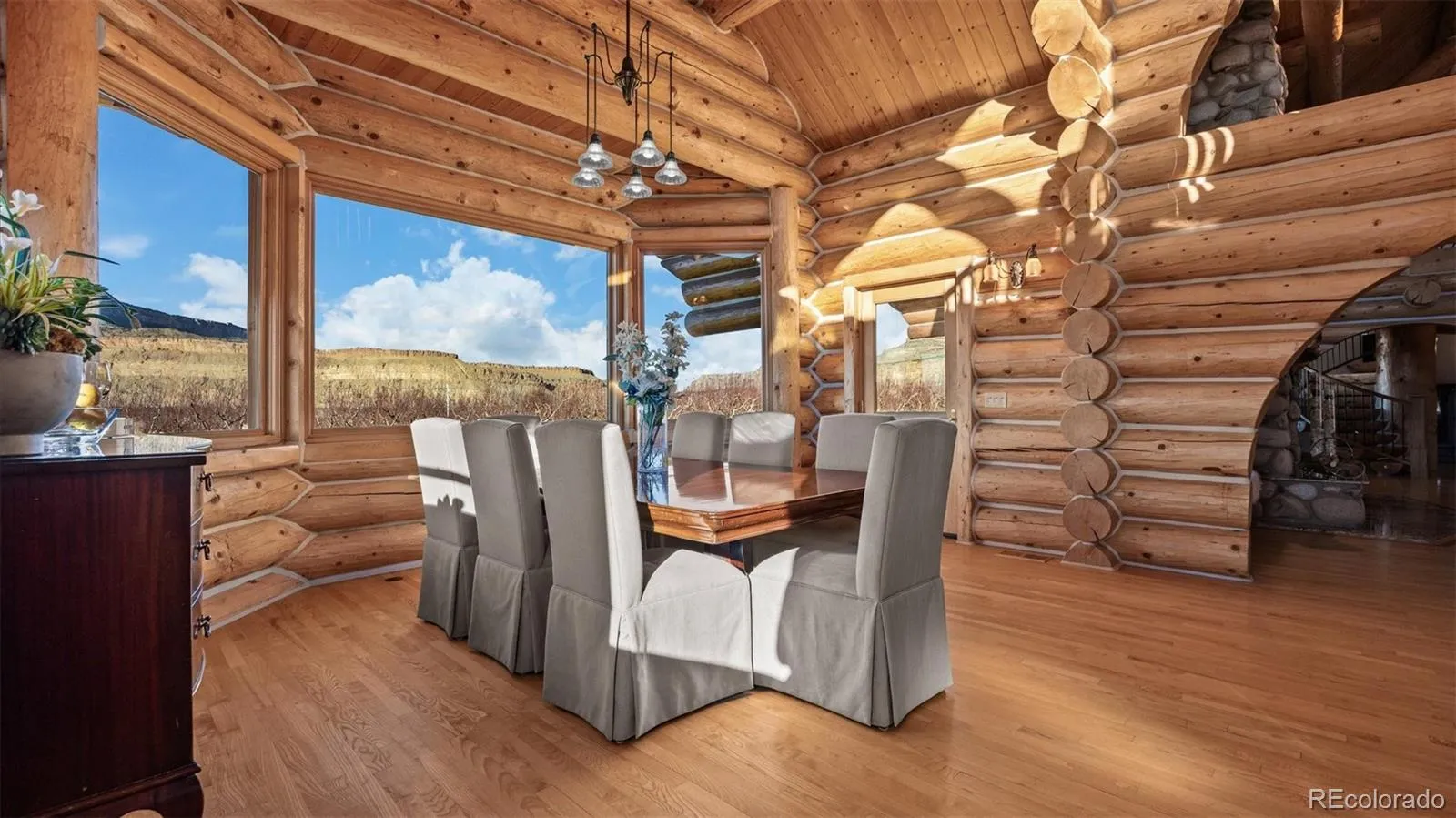 Imagine waking to breathtaking vistas of the Grand Mesa, Book Cliffs, and Palisade’s vineyards from your own 7.5-acre, professionally managed peach orchard. This past year, the orchard grossed approximately $160,000, delivering the homeowners $38,000 in truly passive income, with no out-of-pocket costs or work required, and irrigation water included in the property taxes, there’s no extra overhead. This custom log home, crafted from 12–16” hand-peeled logs, blends rustic artistry with wine-country serenity in the heart of the Vineland microclimate. Sunlight pours throughout over ash and walnut hardwoods, knotty pine ceilings, and antique stained-glass windows, highlighting a dramatic wood-burning Roaring Fork River rock fireplace that anchors the main living space. Multiple main-level living areas include a second primary suite, two guest rooms, and dual offices. A craftsman-built spiral staircase leads to the upper primary suite, a private retreat with antique doors, a gas fireplace, a spa-like bath, and a brand-new Trex deck with an exterior fireplace. An exposed loft overlooks the dining room and orchard, perfect for a TV lounge, creative studio, or quiet reading nook. Wraparound decks with volcanic granite, custom copper accents, and an outdoor river-rock fireplace invite year-round enjoyment of the orchard, ponds, and mountains. The property features two serene ponds connected by a flowing stream and waterfall, creating a private, tranquil retreat that feels worlds away. With no HOA and room for future additions, this home is both sanctuary and canvas, offering a lifestyle steeped in Palisade’s orchards, wineries, farm-to-table culture, and warm small-town charm. This is more than a home; it’s an immersive retreat in Colorado’s most enchanting agricultural valley. A must see!