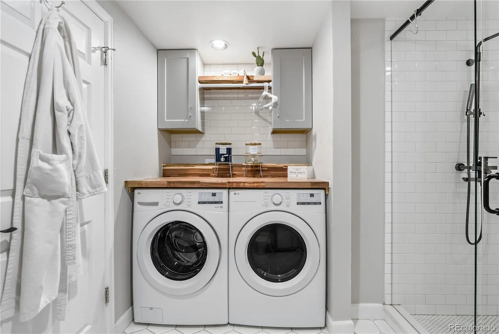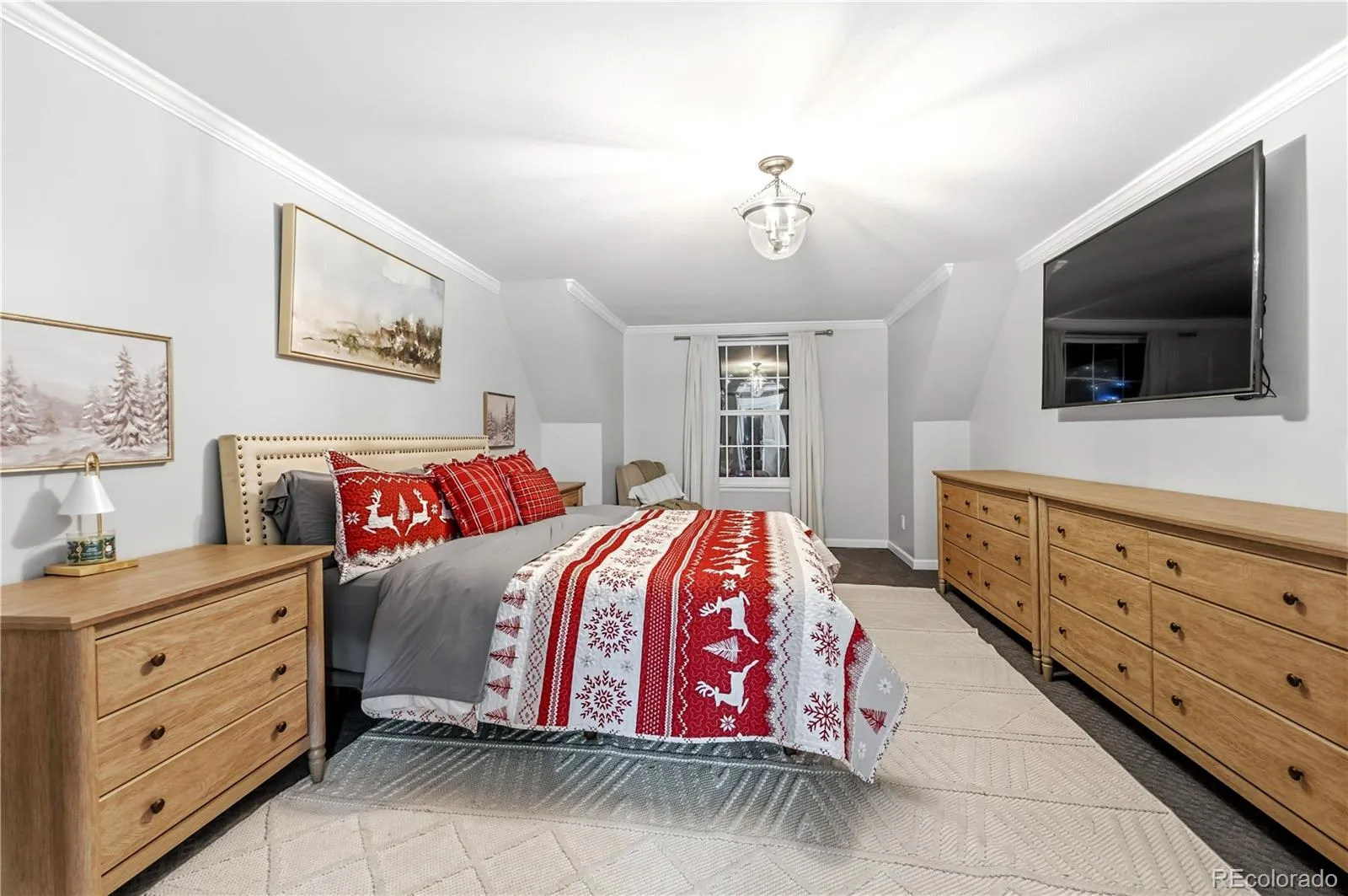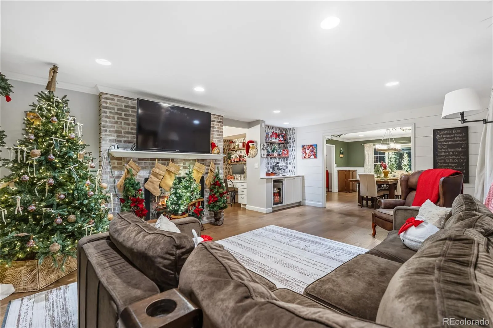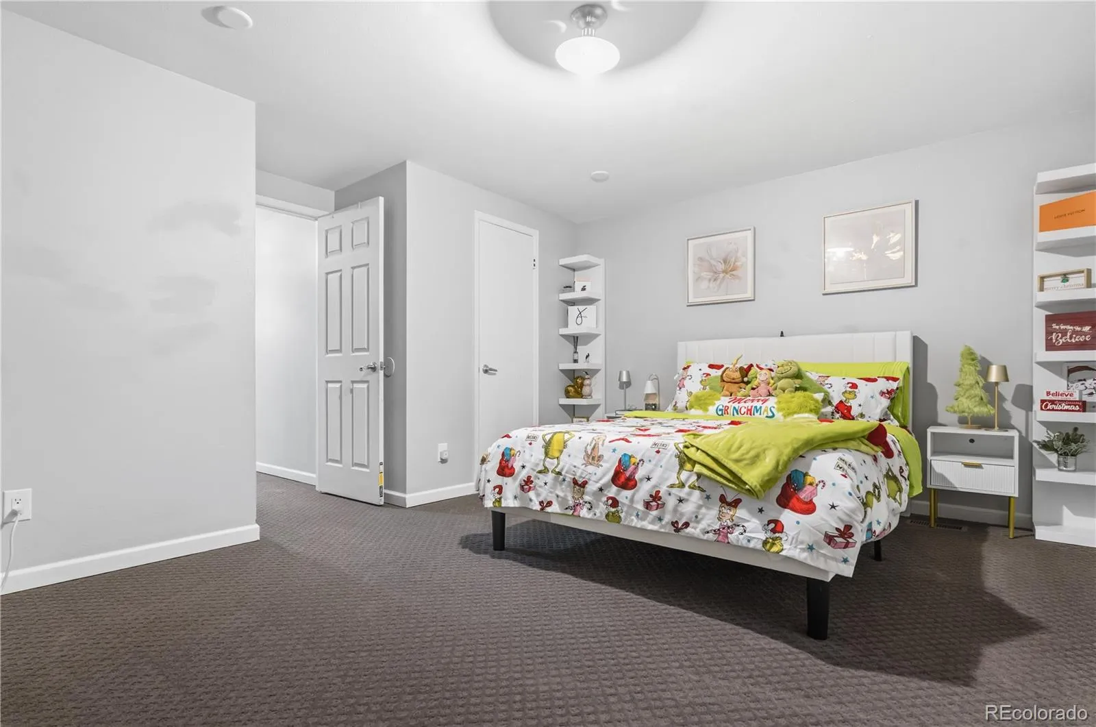 The finished basement offers a large media room with built-ins, guest bedroom with walk-in closet, and ample storage—ideal for movie nights or relaxation.