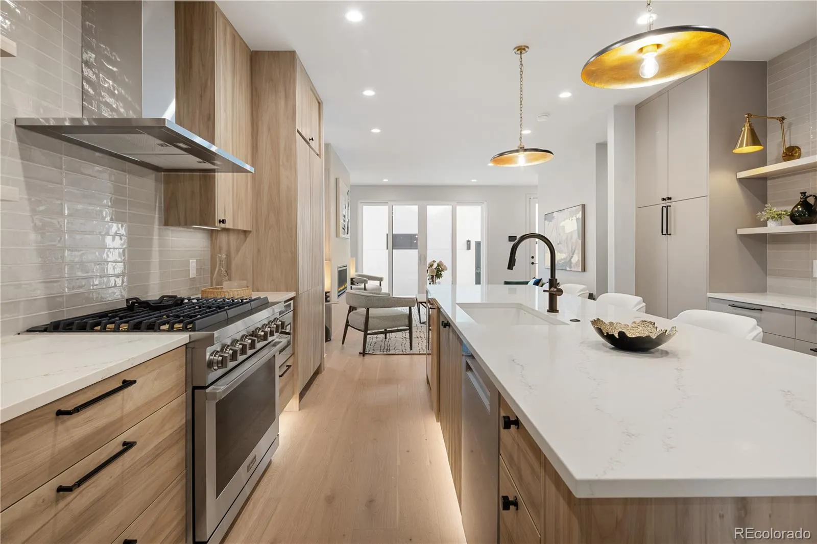 living. Main level features include a formal dining room, chefs kitchen with coffee bar, luxury appliances including 2 dishwashers, ample cabinet space and storage, living room with gas fireplace and great natural light, rear sliding doors perfect for indoor/outdoor entertaining. On the second level sit 2 spacious bedroom suites with en suite bathrooms, and large walk-in closets. The third level boasts of a wet bar, bonus room, powder room, and access to the west facing roof top deck. The finished basement includes a family room and a guest suite with its own full bathroom. 2 car detached garage. Located just 2 blocks from all that Tennyson St has to offer! This is the last unit remaining and is ready for quick closing, possession and move in! Schedule your showing today!