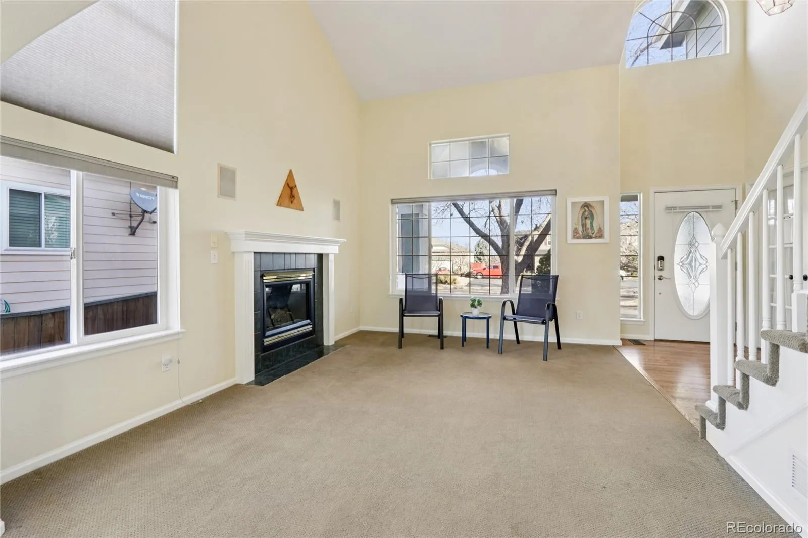 Welcome to this beautiful home in Longmont’s desirable Spring Valley neighborhood, where a charming covered front porch invites you inside. Step into the bright entrance foyer with soaring ceilings, flanked by a dedicated home office on one side and an elegant formal living room on the other—complete with dramatic ceilings and a cozy fireplace. The formal living room flows seamlessly into the dining room, creating an ideal spacious setting for entertaining.