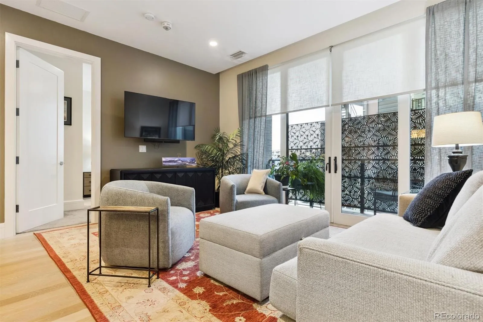 Unique opportunity to own a refined residence in the heart of Cherry Creek North, Denver’s most vibrant and prestigious neighborhood, combining timeless elegance, modern sophistication, and access to the city’s best dining, shopping, and cultural attractions. Inside, rich hardwood floors and luxury finishes create a warm yet contemporary atmosphere. Sunlight pours through expansive windows, enhancing the open-concept design and emphasizing the graceful flow between the gourmet kitchen, dining area, and living room. The kitchen is a true centerpiece, featuring quartz countertops, Bosch appliances, a 5-burner cooktop, microwave/convection oven, designer backsplash, and expansive peninsula for everyday living and entertaining. The living area transitions seamlessly to a balcony with a privacy screen, offering an outdoor retreat perfect for morning coffee. A flex-space provides versatility as an office, library, or guest quarters, while the primary suite serves as a sanctuary with ample room for a king-sized bed, a spa-inspired bath with soaking tub, glass-enclosed shower with bench, and expansive walk-in closet. A stylish 3/4 bath is ideal for guests and in unit laundry add convenience. Residents enjoy luxury amenities, highlighted by a magnificent rooftop terrace with spectacular views of Downtown Denver and Mountains, plunge pool, intimate fire pit lounges, gas grills, a well-equipped fitness center, underground parking w/EV charging, bike storage, and onsite management. Embrace the vibrant energy of Cherry Creek North, where tree-lined streets, cafes, and locally owned boutiques create a true sense of community. Special events such as the Cherry Creek Arts Festival, Summer Concert Series, and Holiday Market are right outside your door. With its blend of sophistication, comfort, and convenience, this residence represents low-maintenance luxury living at its finest. Schedule a showing today to experience all that this exceptional home and neighborhood have to offer.
