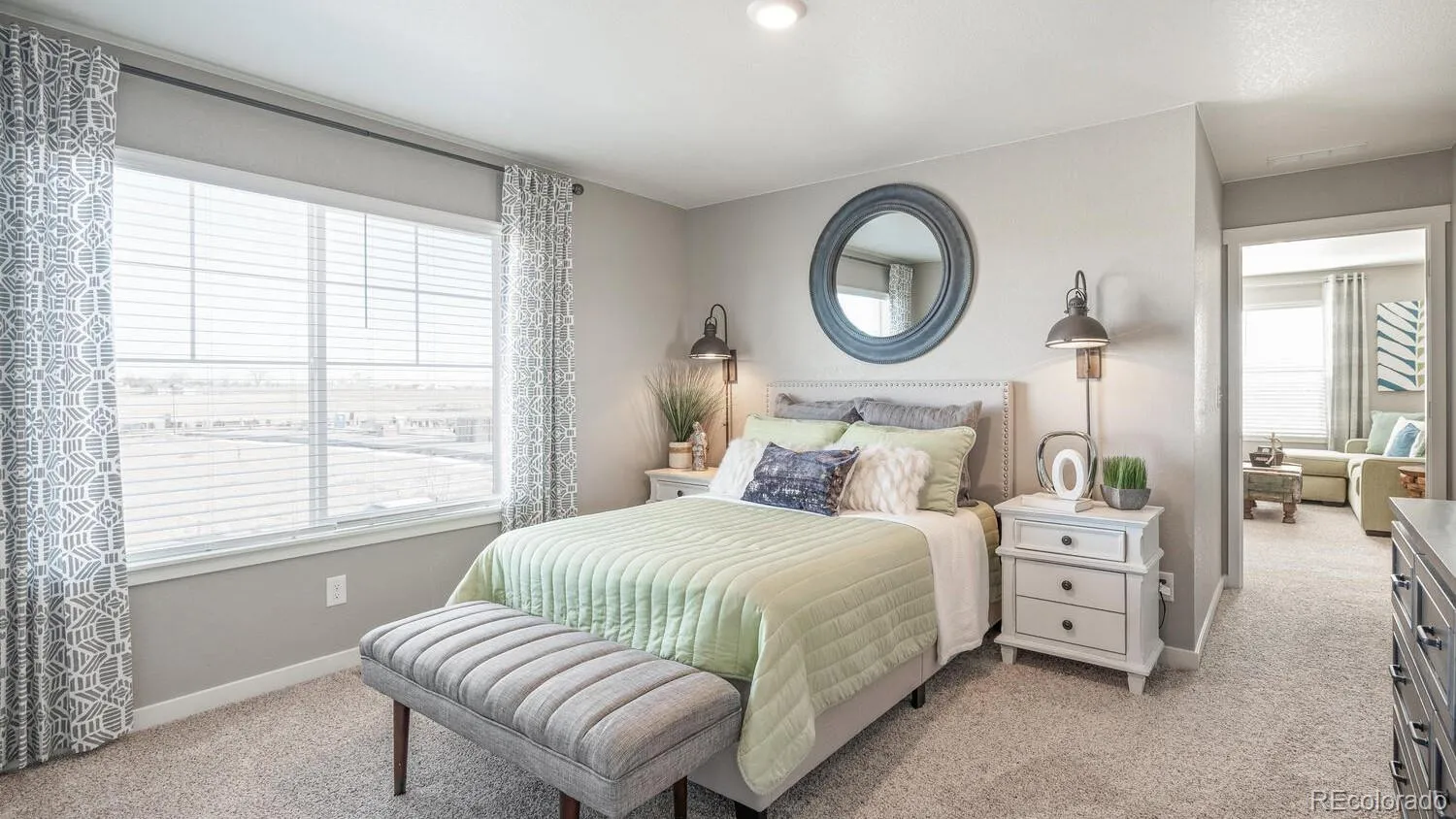 Welcome to this stunning two-story home. Upon entering, you’re greeted by an open-concept layout, ideal for modern living. The main level features a spacious bedroom and a full bath, providing convenience and flexibility. The stylish tile fireplace serves as a focal point in the living area, while the kitchen boasts sleek quartz counter tops, a large island, and a walk-in pantry. This home includes stainless steel appliances, including a gas range that will make cooking and entertaining a breeze. Hard surface flooring extends throughout most of the main level, adding a touch of elegance to the space. Newly updated designer finishes enhance the home’s contemporary style. Upstairs, the expansive primary suite offers a peaceful retreat with a generous walk-in closet and attached bath. A guest bedroom with an en-suite bath and a versatile loft space complete the second floor, providing ample room for relaxation and comfort. Enjoy the convenience of front and rear landscaping, and an oversized garage that offers plenty of storage space. The home also comes with a smart home package, providing modern technology at your fingertips. This exceptional community offers amenities, including a pool, playground, tennis and basketball courts, as well as recreation and baseball fields—perfect for an active lifestyle. Don’t miss out on this perfect combination of style, comfort, and convenience! Estimated delivery February 2026. ***Photos are not of actual home***