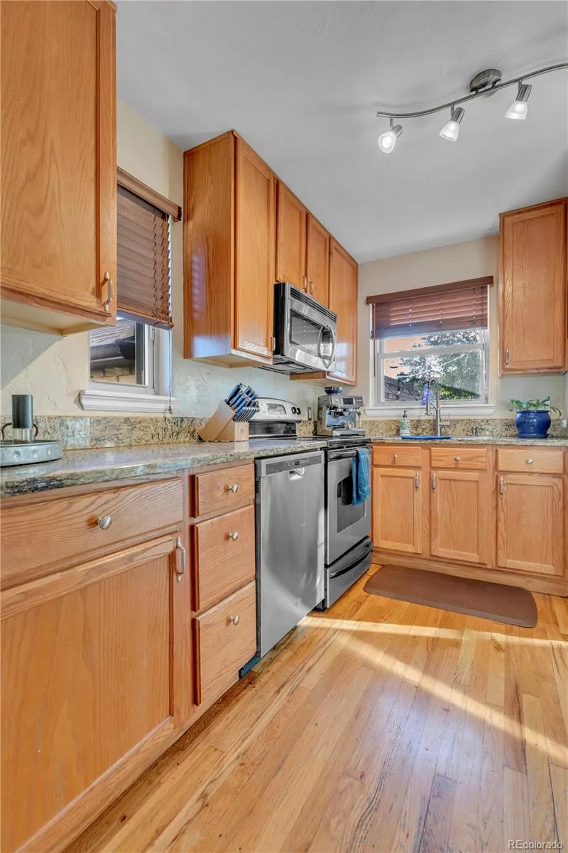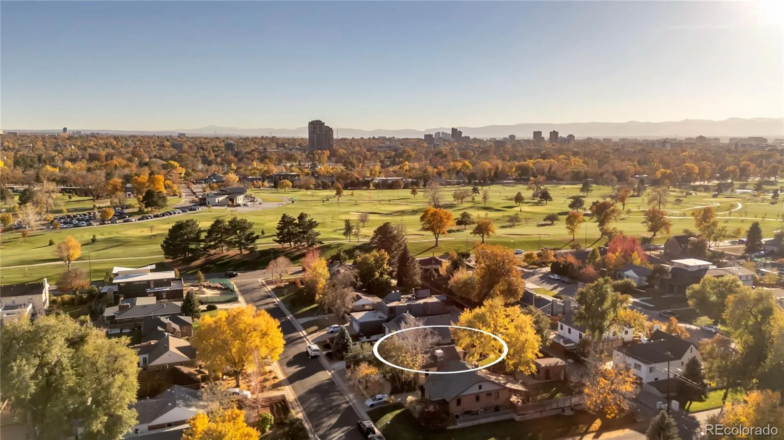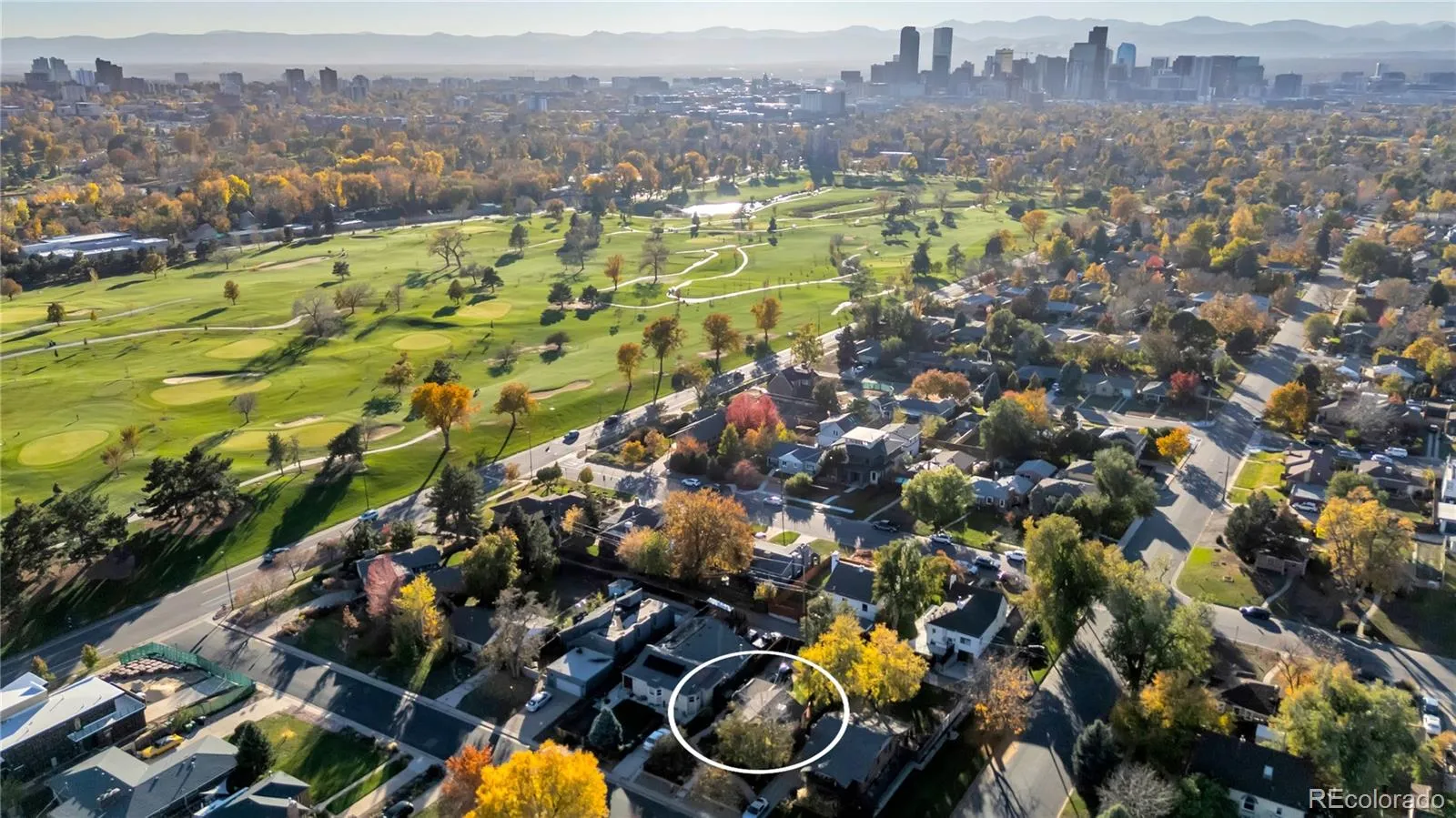 SUPERB LOCATION! A GOLFER’S DREAM, like a country club without the cost. Walk out your front door to recently renovated City Park Golf Course & Clubhouse where you’ll enjoy stunning views of the skyline & mountains from clubhouse and patio. The neighborhood is poised for growth with a brand new million dollar-plus house 3 doors away and others nearby either under construction or completed. This well-maintained bungalow blends classic character with modern charm. Elevated from the street, a xeriscaped yard features native grasses & year-round blooms leading to a private front porch. Walk through the contemporary entry door to arched doorways, cove ceilings, & beautiful hardwood floors. Sunlight fills the living room through east & south-facing windows. The main level has two lovely bedrooms (or a home office) each with closets sharing a full bath. The kitchen includes stainless steel appliances & granite tile counters. From the kitchen a few steps down leads to a basement that feels spacious with higher-than-typical ceilings ideal for relaxing/entertaining and a wet bar with mini-fridge & under-stair storage. The master suite has a walk-in shower & dual-sink vanity. The utility room includes a full-sized washer & dryer, a NEW WATER HEATER (2023) & NEW FURNACE (2025). A large private fenced backyard ideal for children and/or pets has a private flagstone patio. The single-car garage & separate outbuilding provide additional storage with room for 2 additional cars in the driveway. This INCREDIBLE LOCATION offers easy access to the Denver Museum of Nature & Science, Denver Zoo, & City Park Jazz. Cherry Creek North, Downtown, RiNo, and LoDo are minutes away & I-70 offers connections to DIA & Colorado’s mountain resorts. This lovely home blends historic charm, thoughtful updates, & exceptional living in one of Denver’s most vibrant neighborhoods. Zoning allows for an 840 sq. ft. ADU (buyers should verify specs with the City of Denver).