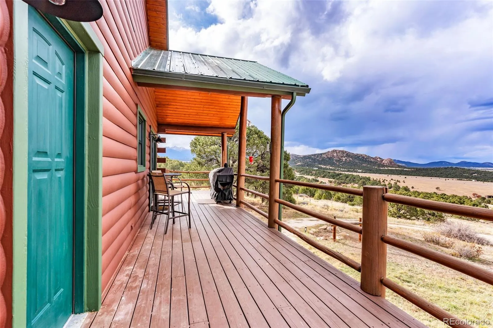 Tucked at the base of Mitchell Mountain, this extraordinary custom log home offers an unparalleled serenity. Located within the prestigious Bull Domingo Ranch subdivision, loved for its equestrian lifestyle, vast BLM access, and proximity to DeWeese Reservoir, this property embodies refined rustic living at its finest. Spanning 35 private acres & 3,026 square feet of handcrafted log construction, this residence showcases three bedrooms and three baths designed with timeless craftsmanship and exceptional attention to detail. The open-concept great room impresses with dramatic vaulted ceilings, rich oak hardwood floors, and expansive windows that frame panoramic mountain views. A beautiful log staircase leads to a lofted suite featuring a spa-inspired bath with a jacuzzi tub and a private deck where you can take in sweeping vistas of the mountains. Vaulted tongue-and-groove ceilings and natural wood textures create a warm, inviting ambiance that blends comfort and elegance. This home is in pristine condition and priced below market value for a quick sale. The sellers have recently completed thoughtful upgrades, including all new kitchen appliances, new countertops, the addition of gas service to the kitchen, and a water filtration system. The exterior logs have been completely retreated, and a brand-new water heater has been installed, ensuring this exceptional property is move-in ready and meticulously maintained. Outdoors, discover your own private haven, complete with a detached three-car garage and workshop, along with charming country touches such as a chicken coop. With Mitchell Mountain as your backdrop, enjoy direct access to hiking trails and endless opportunities to explore nature in complete privacy. Perfectly positioned along maintained roads and just minutes from the picturesque town of Westcliffe, this exceptional mountain retreat offers a rare opportunity to experience elevated rustic luxury where tranquility, craftsmanship, and natural beauty converge.