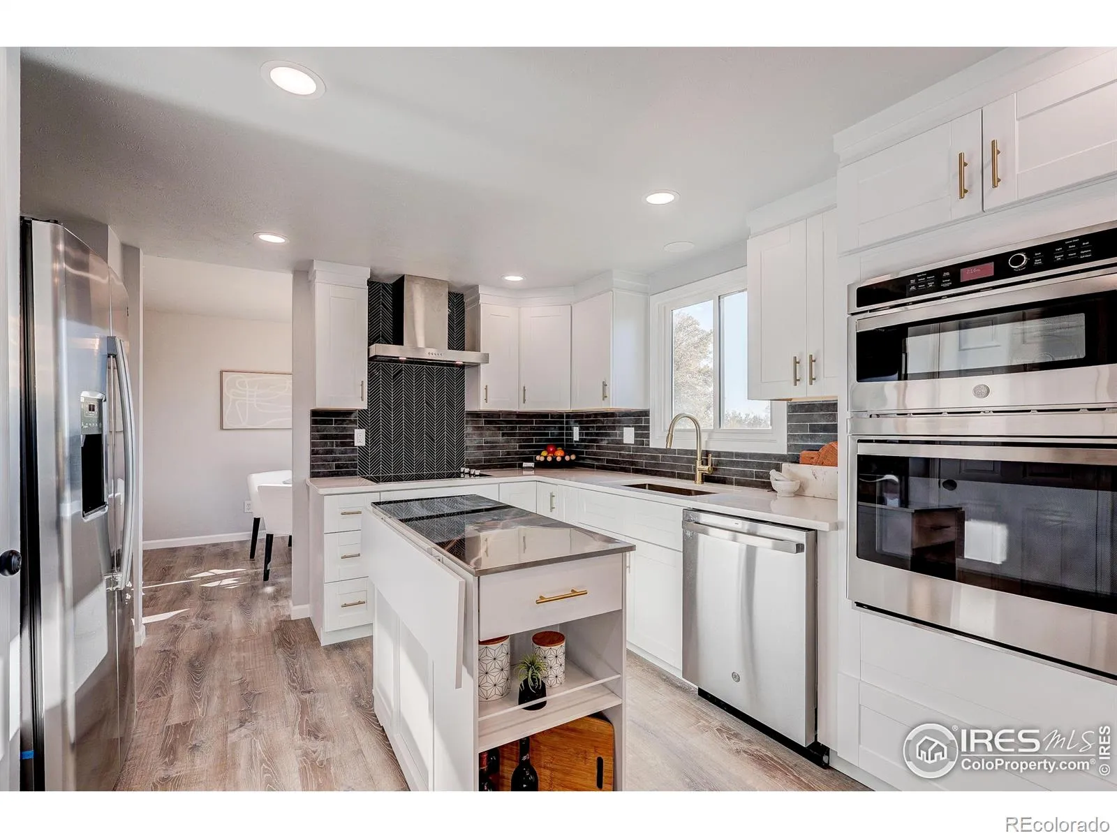 Every detail has been thoughtfully updated in this fully restored 4-bedroom, 4-bath, two-story home blending modern design with long-lasting comfort. The main level features new LVP flooring, fresh texture and paint, updated baseboards, new hardware, and all-new LED lighting. At the center of the home is a beautifully redesigned kitchen with soft-close white shaker cabinetry, quartz countertops, brushed-gold fixtures, and a matte-black herringbone backsplash. A new GE stainless steel appliance package includes a double wall oven with built-in microwave, radiant cooktop, and french-door refrigerator. The upper level offers two spacious bedrooms with a fully renovated shared bath, plus a primary suite with a dream en-suite featuring a marble-top vanity, LED lighted mirror, dual-flush toilet, rain shower, frameless glass doors, and brushed-gold accents. Outdoor living is easy with a 20-bottle wine and beverage cooler for entertaining, a newly built Trex deck overlooking mountain views, and a refreshed gazebo ideal for Colorado evenings. The fully finished basement extends your living space with a 4th bedroom, a flexible media/bonus room, and an additional bathroom. Major improvements bring peace of mind, including a new roof (2024), hot water heater (2024), central A/C (2025), and a new garage concrete slab. With every surface renewed and every upgrade complete, this classic Shaw Heights home offers a hard-to-find combination of quality, convenience, and contemporary style-simply move in and enjoy.