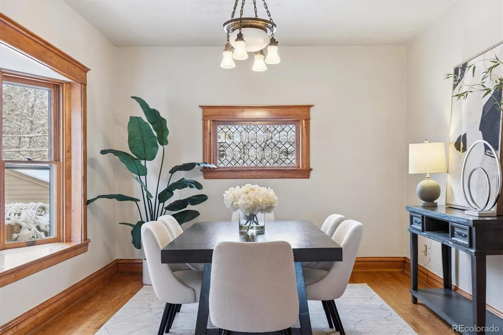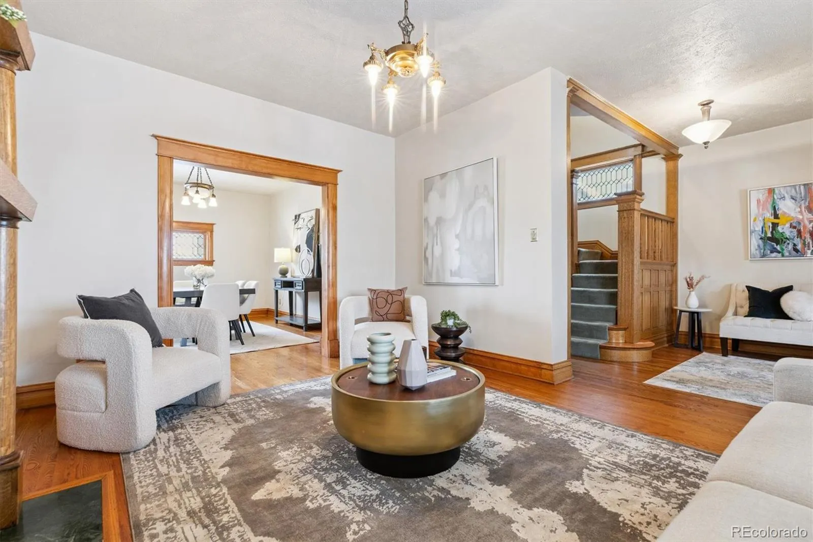 Timeless charm meets modern comfort in this beautiful historic Denver Square located in the heart of the Cheesman Park Neighborhood. From the moment you arrive, the home’s classic architecture, new exterior paint, and lush professional landscaping set the tone for something truly special. Step inside to find a newly painted interior with original woodwork, beautifully maintained trim, and a warm, welcoming layout highlighted by a gorgeous fireplace with gas insert in the living room for cozy evenings. The bright, enclosed three-season front porch is the perfect spot for morning coffee, plant lovers, or year-round relaxation. The main level flows seamlessly from living to dining to kitchen, making everyday living feel connected and comfortable. Upstairs you’ll find three spacious bedrooms with great natural light. The partially finished basement offers flexibility – add a 4th bedroom, 3rd bathroom, gym, studio, or rec room with the existing layout and storage. You’ll love the large laundry room, complete with abundant storage, and appreciate recent upgrades including a newer furnace and AC system. Outside, the backyard is private and beautifully landscaped, with easy access to the detached 2-car garage. Location is the star: Just 2 blocks to Cheesman Park, walk to the Denver Botanic Gardens, King Soopers and neighborhood favorites like Potager, Table 6, and countless cafés and shops. Enjoy one of Denver’s most walkable, tree-lined streets with the best of the city right outside your door.