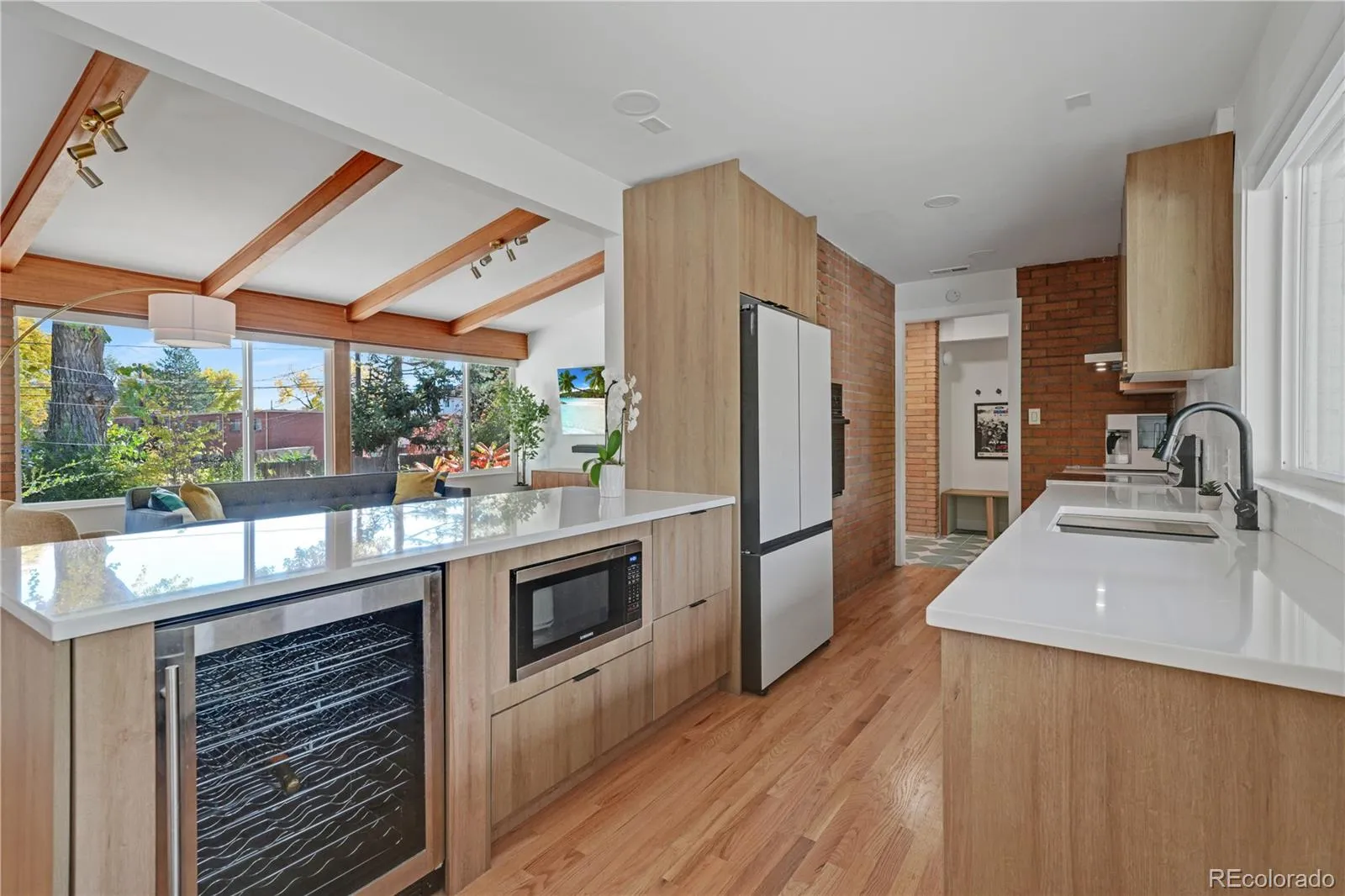 **Join us for an OPEN HOUSE on Saturday, Dec. 6th from 11:00 am –2:00 pm.** Welcome to this fabulous mid-century modern retreat that has recently been renovated and is situated on a .36-acre park-like lot. From the moment you arrive, the curb appeal shines—tree-lined streets, clean architecture, and warm modern vibes. Step inside the inviting entry that sets the tone for the home’s blend of character and comfort. The great room impresses with vaulted-beam ceilings, hardwood floors, a stunning original brick accent wall, and a full wall of windows that flood the space with natural light and frame the lush backyard. The kitchen offers timeless modern design, abundant cabinetry, generous counter space, and a unique bread warmer that could be transformed into a charming brick pizza oven. The large island flows into a dining space wrapped in windows—perfect for gatherings. The main-floor primary suite feels like a modern sanctuary with a renovated bath featuring heated floors, oversized walk-in shower, dual sinks, and an expansive custom closet. An additional bedroom (or ideal office) and a full bath with terrazzo flooring complete the main level. The naturally bright lower level includes a spacious family room with a wood-burning fireplace, two additional bedrooms, and a ¾ bath. Outside, the 1/3-acre fully fenced lot feels like your own private park with professionally maintained landscaping and a newer 6-foot cedar fence for privacy. Oversized two-car garage featuring a 220V hookup for EVs. Additional recent upgrades include: a newer roof, newer windows, blown-in insulation in the attic and crawl space and high-efficiency LED lighting. This isn’t just a home—it’s a lifestyle. Live close to parks and local favorites like Mint & Serif Coffee, with the light rail to Union Station and Highway 6 just minutes away for mountain escapes. 3-D Tour Link: https://my.matterport.com/show/?m=FUEDDG5vEFX&mls=1