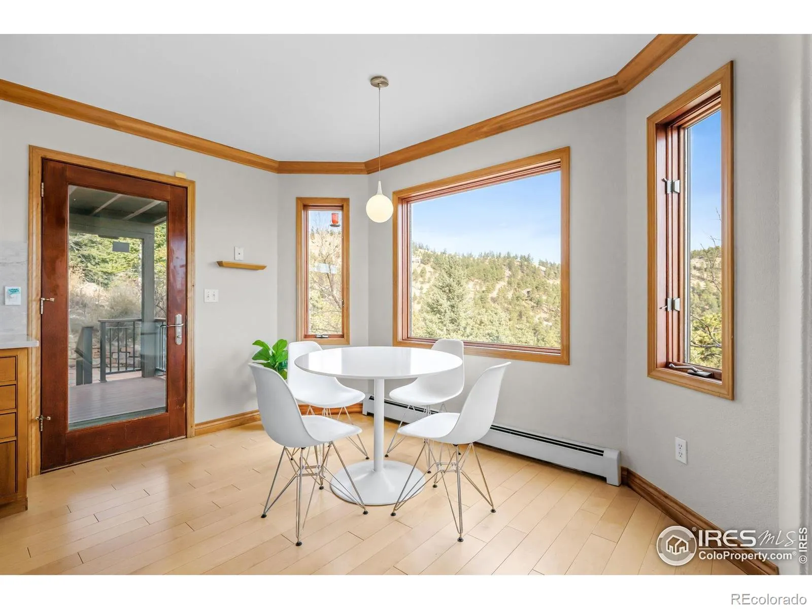 Just eight minutes from Broadway Street, in a secure, gated community, 1448 Carriage Hills Drive soaks up sun across the entirety of its 22 acres. Multi-level, wrap-around decks, windows and eastern exposure guarantees maximum natural lighting no matter the season. 1448 Carriage creates a rare balance between secluded mountain living and urban accessibility. The gated community keeps the privately maintained roads in pristine condition for any winter storms while the at-home garden and ability to own horses ensures the possibility of living off the land. After entering through the attached three-car garage that doubles as a workshop, the main level unfolds to wrap-around windows that guarantee every bit of sunlight from the south-eastern exposure is captured. The kitchen has top of the line appliances with a Sub-zero fridge a Wolf cook top, and a brand-new Kitchen Aid built-in double oven. Up a floor you will find the primary bedroom with a steam shower in the primary bath, radiant floor heating and a view that can’t be ignored with two private patios. Mini splits provide cooling within the home. Outside, a private garden space (that is critter protected) ensures you can sleep at night knowing your garden is safe. 1448 Carriage is Boulder County Wildfire Partners Certified and has Starlink meaning it is move in ready tomorrow.