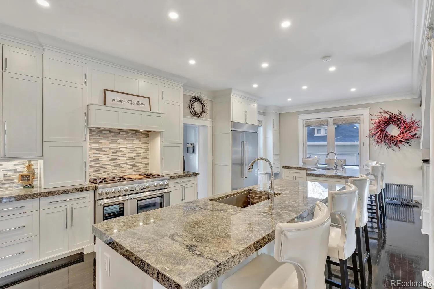Denver’s Crown Jewel on the Parkway — A Historic Estate Reimagined for Modern Luxury! Nestled along the iconic, tree-lined 17th Avenue Parkway, an elegant extension of City Park itself, 4101 E 17th Avenue Parkway stands as one of Denver’s most magnificent and historically significant estates. This 3-story Colonial Revival mansion, with 6 bedrooms and 9 bathrooms, was owned by Thomas B. Croke, a Colorado statesman & philanthropist. Owning this home is a rare chance to hold a true piece of Denver’s story in the heart of South Park Hill, one of Denver’s premier neighborhoods. Meticulously restored throughout, the residence blends early-20th-century craftsmanship with modern luxury. Year-round sunlight floods the entire south-facing residence, showcasing period details and modern updates. A chef ’s-caliber kitchen built for entertaining boasts 2 large islands, 3 sinks, 48-inch appliances, and 2 dishwashers. The elegant flow of the main level, multiple family and entertaining rooms, and the speakeasy-style martini bar on the garden level create an atmosphere where hosting is effortless. The home accommodates intimate dinners or large celebrations with ease, indoors or out. Upstairs, the luxurious primary suite offers a fireplace, wet bar, and a private balcony overlooking the 17th Avenue Parkway greenbelt. Additional suites span the second and third floors, while the 2,100 sq-ft garden-level basement with its own entrance provides ideal nanny quarters, multigenerational living, or premium rental potential. Perched on nearly 12,000 sq ft of lushly landscaped grounds, the estate has been redesigned for gatherings of every scale. A large paver patio and adjacent drive-thru garage provide ample space for grand outdoor gatherings. Steps from City Park, Denver Zoo, the Museum of Nature & Science, fine dining, and minutes to Downtown; this is where history, beauty, and modern urban living converge. You’re not just buying a home — you’re becoming a steward of Denver’s heritage.