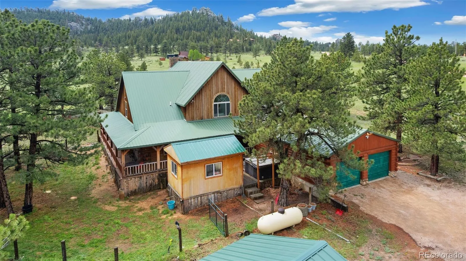 Experience the perfect blend of craftsmanship and natural beauty in this exceptional 4-bedroom, 3-bath custom log home nestled on 3.52 acres in the heart of Glacier View Meadows. Constructed with rare sinker cypress logs sourced from Mississippi trees, this 3,037 sq ft residence offers a unique and timeless appeal. Step inside to discover soaring cathedral ceilings and tongue-and-groove beamed ceilings that enhance the spacious living areas. The impressive great room features a handcrafted mantel and carved staircase timbers, adding to the home’s rustic charm. The spacious kitchen and dining area, adorned with timber ceilings, provide the perfect setting for gatherings. The master suite boasts a luxurious 5-piece bath and dual walk-in closets, offering a private retreat. A loft-style recreation room provides ample space to entertain. Enjoy the outdoors on the expansive wraparound deck, or relax in the hot tub under star-filled skies. The property also includes a heated 2-car garage, a shop/workout room, and a 20×24 pole barn, providing ample space for hobbies and storage. Located just 50 minutes from Fort Collins, this home offers easy access to hiking trails, fishing spots, and the amenities of Red Feather Lakes. The Glacier View Meadows HOA maintains roads, private community ponds, open spaces, and hiking trails, ensuring a well-kept and vibrant community. Don’t miss the opportunity to own this one-of-a-kind mountain retreat that seamlessly combines rustic elegance with modern comforts.