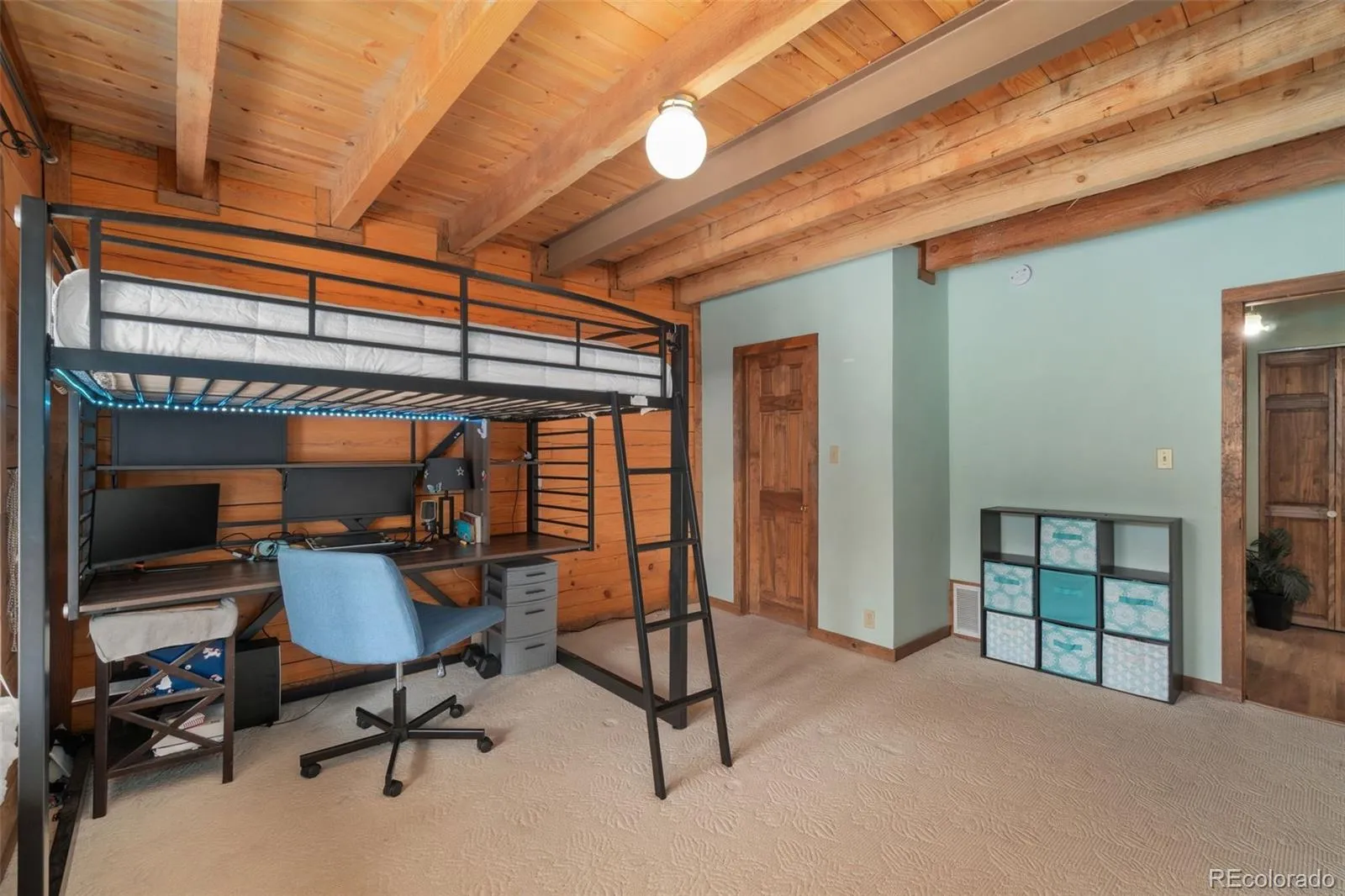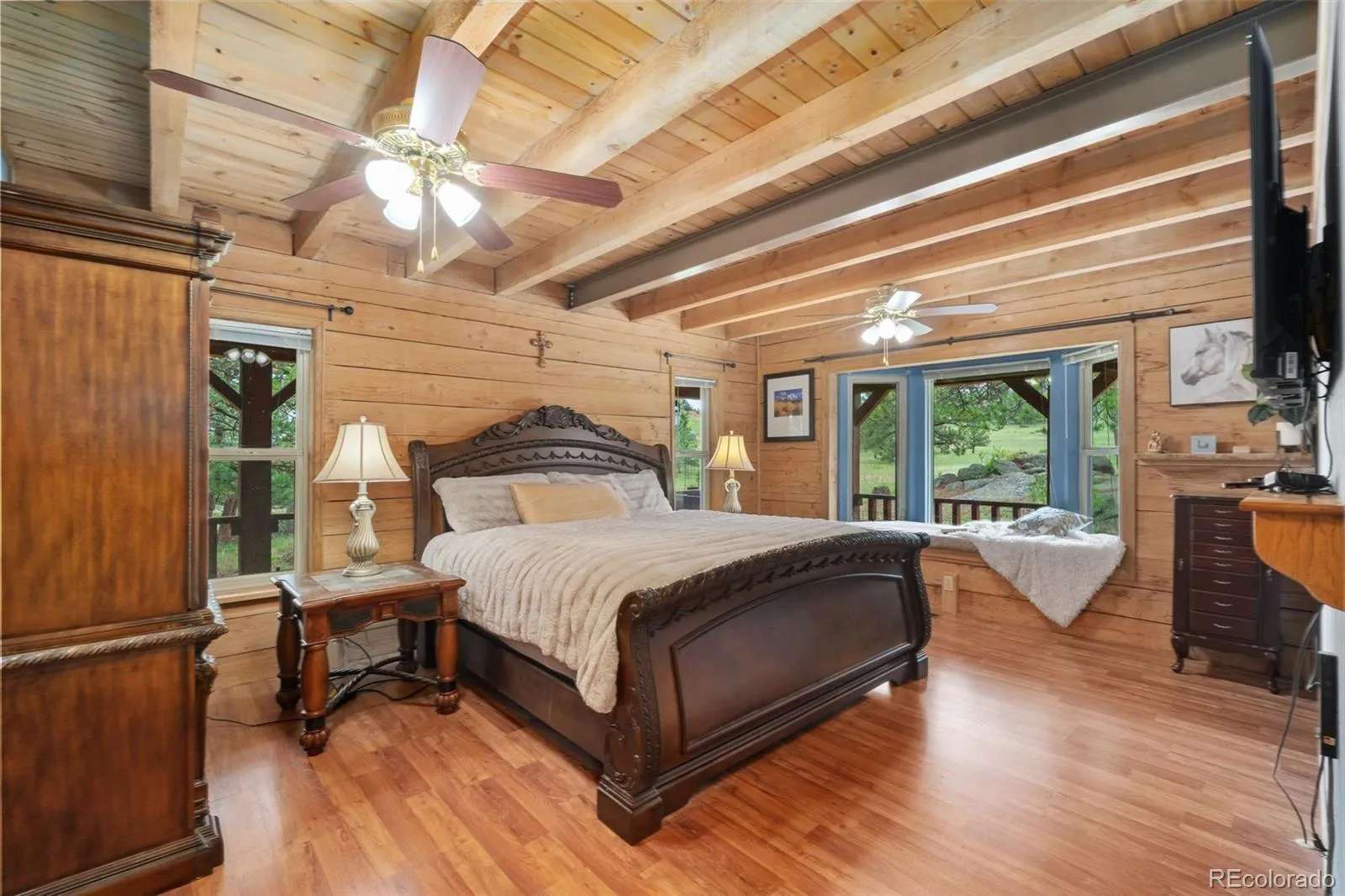 Experience the perfect blend of craftsmanship and natural beauty in this exceptional 4-bedroom, 3-bath custom log home nestled on 3.52 acres in the heart of Glacier View Meadows. Constructed with rare sinker cypress logs sourced from Mississippi trees, this 3,037 sq ft residence offers a unique and timeless appeal. Step inside to discover soaring cathedral ceilings and tongue-and-groove beamed ceilings that enhance the spacious living areas. The impressive great room features a handcrafted mantel and carved staircase timbers, adding to the home’s rustic charm. The spacious kitchen and dining area, adorned with timber ceilings, provide the perfect setting for gatherings. The master suite boasts a luxurious 5-piece bath and dual walk-in closets, offering a private retreat. A loft-style recreation room provides ample space to entertain. Enjoy the outdoors on the expansive wraparound deck, or relax in the hot tub under star-filled skies. The property also includes a heated 2-car garage, a shop/workout room, and a 20×24 pole barn, providing ample space for hobbies and storage. Located just 50 minutes from Fort Collins, this home offers easy access to hiking trails, fishing spots, and the amenities of Red Feather Lakes. The Glacier View Meadows HOA maintains roads, private community ponds, open spaces, and hiking trails, ensuring a well-kept and vibrant community. Don’t miss the opportunity to own this one-of-a-kind mountain retreat that seamlessly combines rustic elegance with modern comforts.