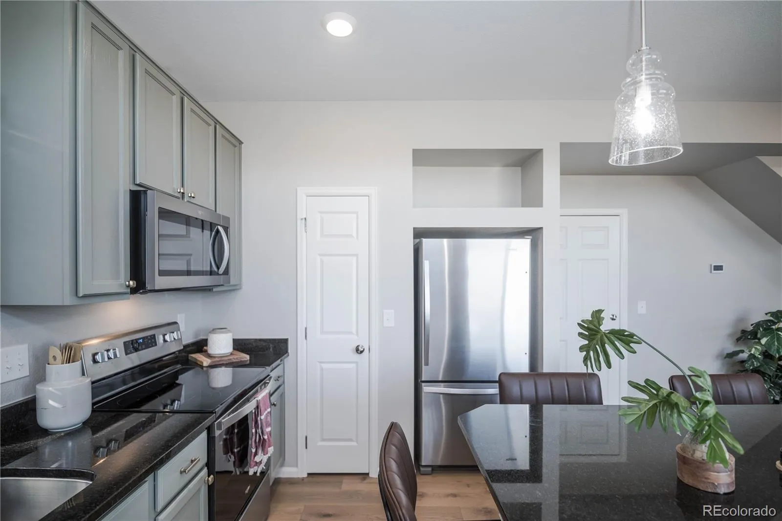 Step right into this delightful 2-bedroom, 3-bath charmer—freshly painted and feeling fabulous. The kitchen is ready for your culinary adventures with shiny granite countertops, stainless steel appliances, an eat-in nook perfect for pancake mornings, and a pantry that’s practically begging to be filled with Costco snacks. Out back, the low-maintenance turf yard means more relaxing, less mowing. Upstairs, you’ll find two bedrooms plus a laundry room that’s conveniently located—because hauling baskets up stairs is so last decade. The primary suite boasts a walk-in closet ready for your wardrobe dreams, while the second bedroom gets its own en-suite bath (no sharing required!). Top it all off with an attached two-car garage featuring durable epoxy floors—easy on the eyes and even easier to clean. Tucked in a quiet community with speedy access to DIA and I-70, it’s a commuter’s dream in a peaceful package. Come take a look—your next chapter might just start here!