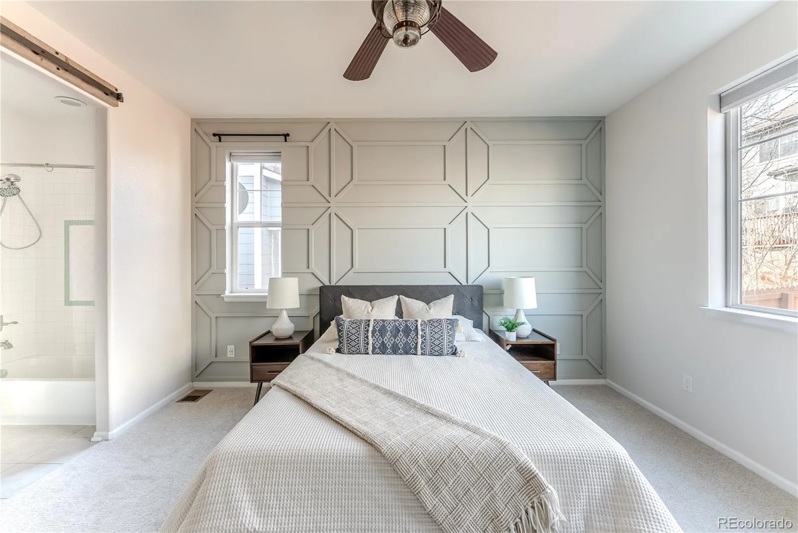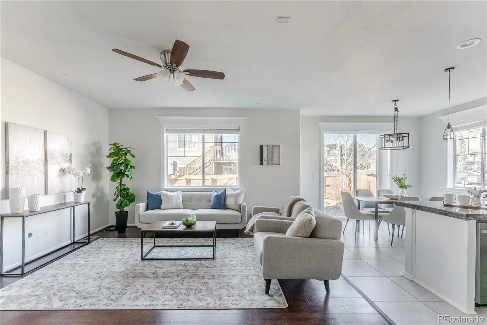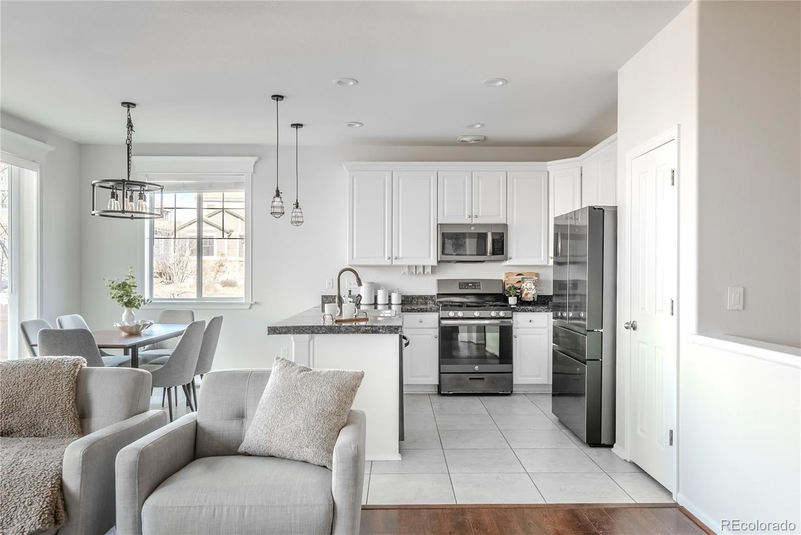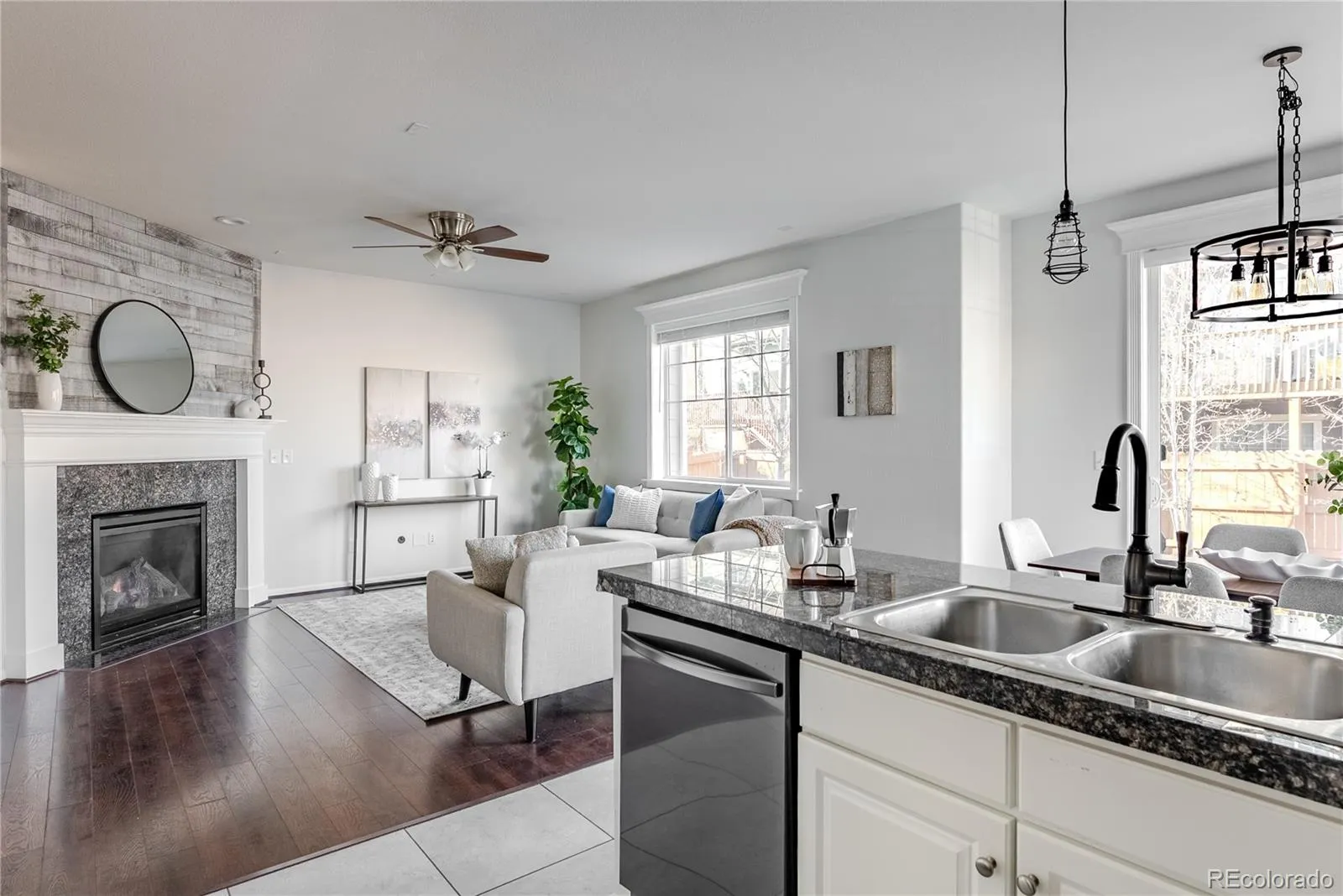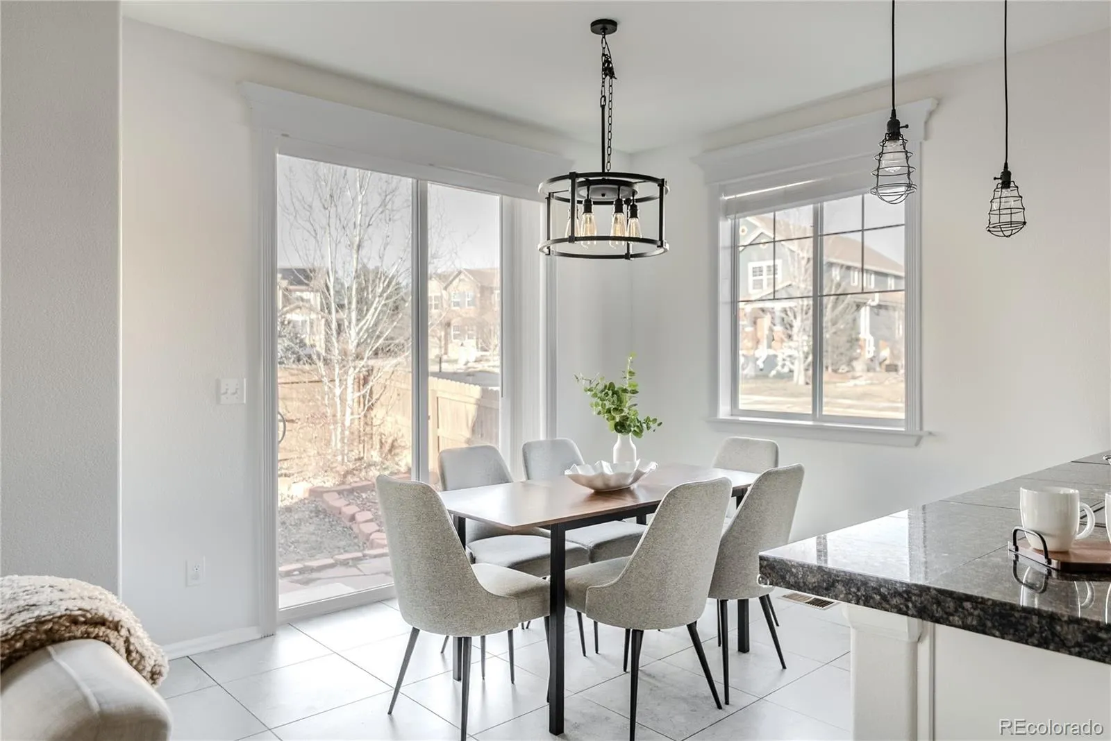 Beautifully refreshed, character filled and effortlessly livable, this Boulder County ranch blends style, warmth and everyday comfort in a way that instantly feels like home. Fresh interior paint, new carpet and curated upgrades elevate the home, creating a bright, inviting atmosphere from the moment you step inside. The kitchen sets the tone with white cabinetry, rich granite, stainless appliances and a generous peninsula that becomes the natural hub for morning coffee, homework sessions and lingering conversations. Sunlight fills the adjoining dining area framing peaceful views of the backyard and flowing seamlessly into the family room. Here, a focal gas fireplace, paneled accent wall and expansive windows create a gracious yet refined backdrop for movie nights, celebrations or quiet evenings by the fire. The primary suite is a true retreat, enhanced by a dramatic custom feature wall, luxurious ensuite with dual sinks and soaking tub and a spacious walk-in closet. Two additional main-level bedrooms offer flexibility for guests, family or an inspiring home office. The fully finished lower level expands the home’s livability with two more large bedrooms, a well-designed bath, and an expansive recreation area perfect for relaxing and entertaining. Its showpiece—a custom speakeasy-style bar—features reclaimed wood, brick accents, industrial lighting and a rolling library ladder, creating a moody, intimate setting where gatherings stretch late into the evening. Outside, the private fenced backyard invites summer grilling, stargazing or relaxed weekends at home. Ideally positioned in the heart of Erie, this home offers small-town charm with top-rated schools, parks, trails and friendly neighbors, plus walkability to the planned Erie Town Center and easy access to Historic Downtown Erie’s boutiques and acclaimed restaurants. Fully paid solar panels add meaningful monthly savings—rounding out a home that delivers comfort, character, and true Colorado lifestyle appeal.