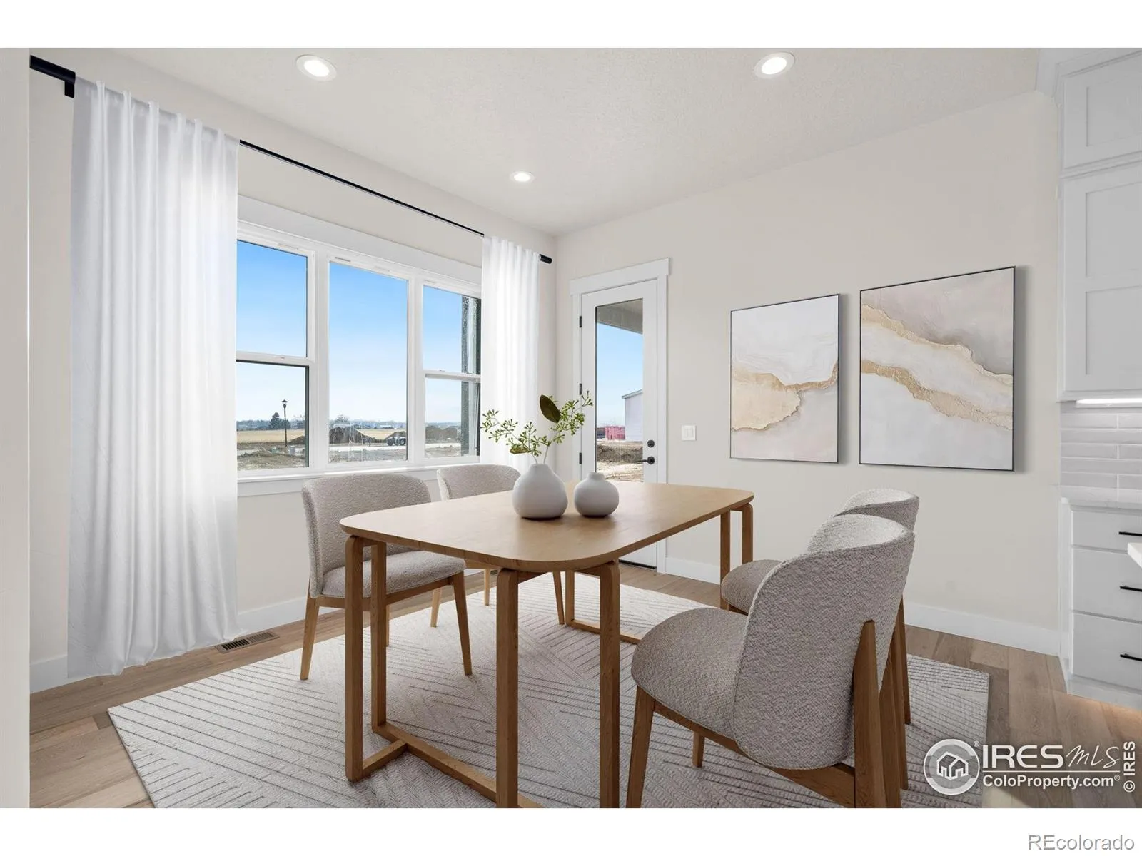 Open the door to The Remington by Pagel Contracting, a meticulously crafted ranch home in Berthoud’s premier neighborhood Harvest Ridge. Too many features to list, so set up that showing! You will love the 10′ ceilings and abundance of windows allowing that Colorado sunshine to light up the vast great room, kitchen and dining area. Arrange your decor to make the floor to ceiling tile LED fireplace surround the perfect focal point. Cook up a storm or have the meal catered, these custom kitchen cabinets go all the way to the ceiling making sure you have enough room for all your culinary wares. Recessed lighting/outlets and appliance placement provides a sleek design and allows a plethora of countertop workspace. While your favorite people are gathered around the HUGE quartz island, they can charge their devices from the super cool pop-up outlets. Don’t forget to look for the hidden pantry! Retreat to your suite adorned with custom batten accent wall. Primary bath has 3/4 shower with poured pan base and bench seating. Vanity toe kick motion sensor lighting, backlit mirrors and linen cabinet are some added features. With an additional 4 bedrooms (2 on the main floor and 2 in the basement) you will have room for everyone! Descend to the basement where you will find a customized wet bar and room for additional entertaining and several large storage areas. This home has been designed with your comfort in mind. High efficient heat pump and tankless water heater with recirc line, not to mention our superior quality building materials will keep those utility bills low. Smart LED lighting throughout the home can be managed on the wall or with a swipe on your device. Front and back yard landscaping is included so you begin to enjoy the Colorado outdoors and a view of the mountains from your covered patio. Let’s make this your home! Builder contract required. Lender Closing Cost Incentive if using Builder’s Preferred Lender. We have other homes and lots available.