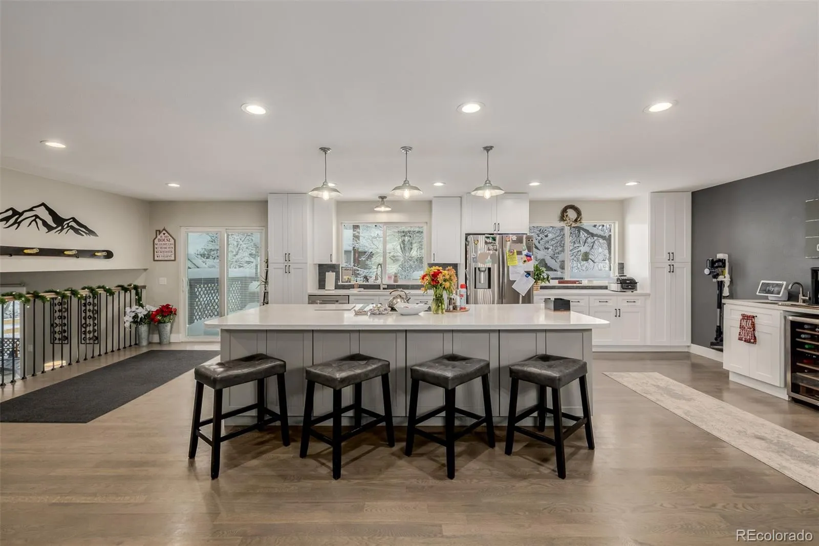 The updated kitchen is open and ideal for great cooking and entertaining, with multiple spaces for family and guests to gather.