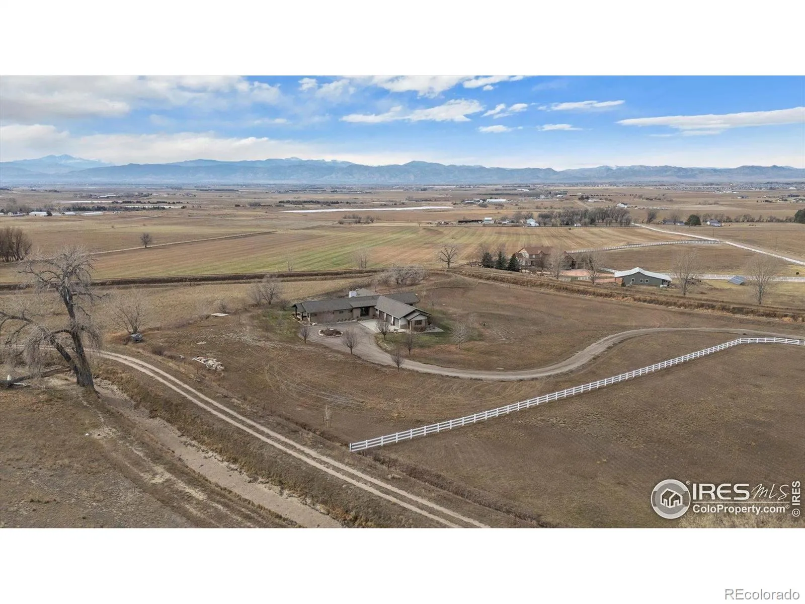 Experience exceptional Colorado living in this stunning custom ranch home set on 5 private acres with endless Front Range views. This 4-bedroom, 4-bath home offers 3,817 finished square feet and an open, contemporary layout designed for comfort and connection.The brick and stucco exterior hints at the quality inside. An inviting great room with gas fireplace flows easily to the dining room and gourmet kitchen. Natural white oak hardwood flooring spans the main level. The kitchen features a large island with seating, crushed-quartz countertops with space for a coffee bar, a Jenn-Air commercial-grade 6-burner gas range with stainless hood, Jenn-Air double ovens, Sharp drawer microwave, French door refrigerator, built-in beverage fridge, and a composition farm sink. A spacious walk-in pantry with functional shelving and baskets adds convenience. The main-floor laundry offers generous cabinetry and direct garage access.The primary ensuite showcases beautiful mountain views through perfectly placed windows. The 5-piece bath includes double quartz vanities, a soaking tub, and a large walk-in shower. Step directly from the suite to the private hot tub. A large walk-in closet connects seamlessly to both bedroom and bath. A secondary main-level ensuite bedroom sits on the opposite side of the home for added privacy.The daylight basement extends the living space with a large family room with gas fireplace, an additional ensuite guest bedroom, and a fourth bedroom with double walk-in closets. The oversized 1,172-sq-ft three-car garage provides ample room for vehicles, tools, and recreation gear.Outdoor living shines on the covered patio off the dining room, where you can enjoy dining, relaxation, and wide-open views. With 5 acres offering space and serenity just minutes from Fort Collins, this exceptional custom ranch home delivers luxury, privacy, and the true Colorado lifestyle.